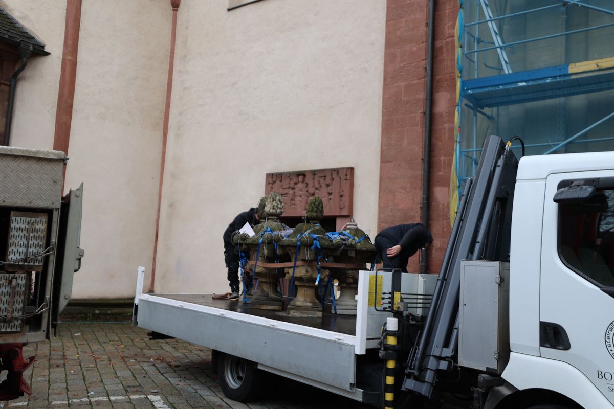 Die bislang durchgeführten Voruntersuchungen haben laut Architekt Burkhard Falkenberg vom Referat Bau des Bistums Würzburg gezeigt, dass der Skulpturenbestand der Schönbornkapelle starke Schäden aufweist. Für eine belastbare Kostenschätzung der konservatorischen und restauratorischen Arbeiten sei es daher erforderlich, die Skulpturen und alle bildplastischen Bauteile abzubauen und einzulagern. „Für die Zwischenlagerung wird das Depot der Kunstsammlungen des Bistums Würzburg genutzt“, erklärte er.