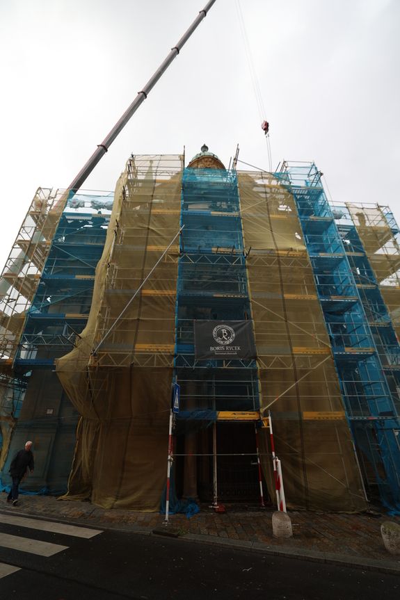 Die Skulpturen – neben den Vasen 15 bildplastische Elemente – sollen nach einer mindestens anderthalb Jahre dauernden erforderlichen Trocknung in einer Werkstatt restauriert und nach der Fassadenrenovierung wieder an ihrem ursprünglichen Ort eingebaut werden. „Eine Restaurierung vor Ort ist aufgrund des hohen Schädigungsgrads nicht möglich“, sagte Hendrik Romstedt vom Ingenieurbüro, das die Restaurierung begleitet. Ein exaktes Konzept für die Restaurierung werde in enger Zusammenarbeit mit dem Landesamt für Denkmalpflege erstellt.