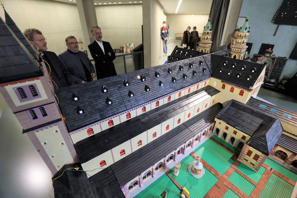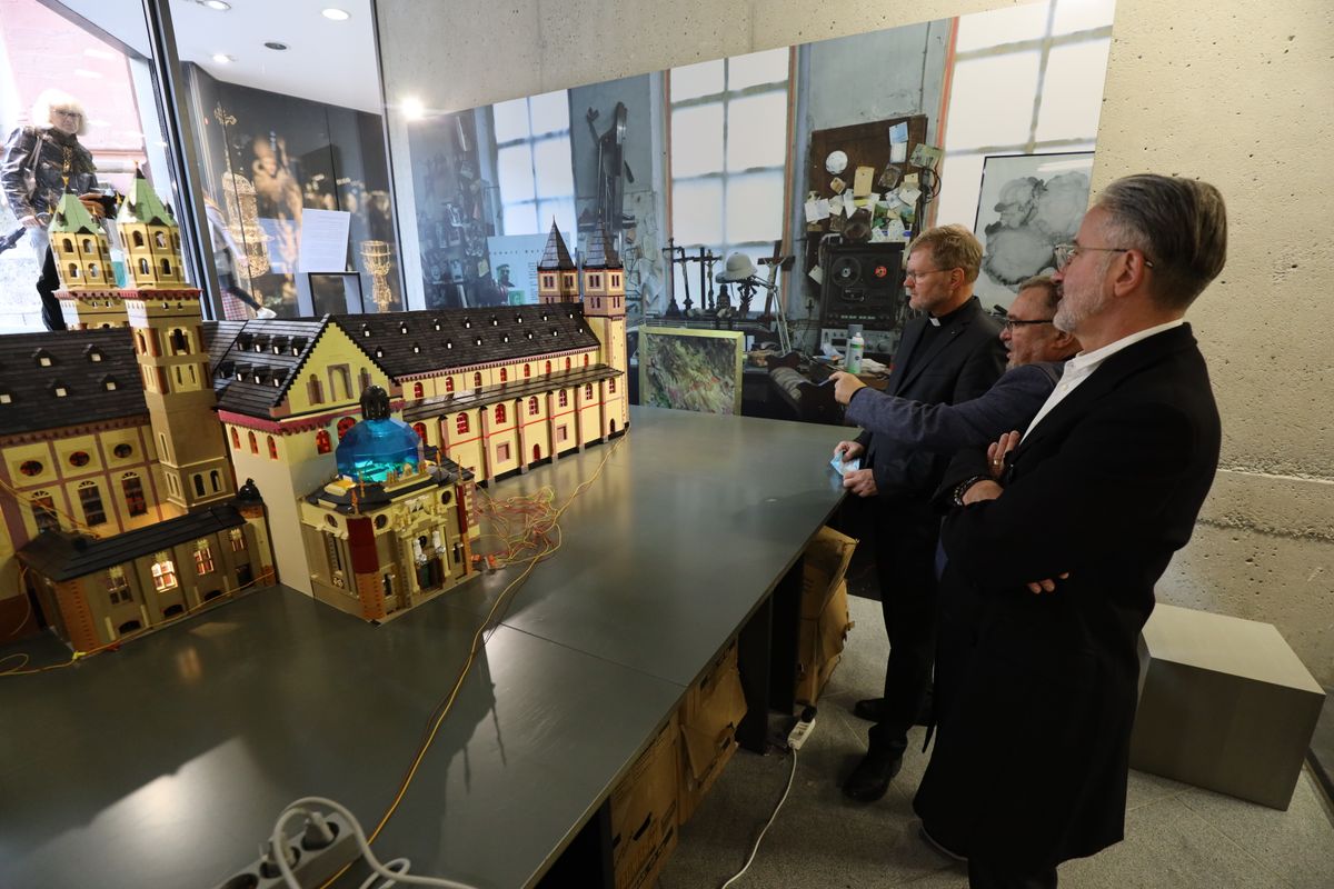 „Wir können nur erahnen, wie viel Einsatz in dem Projekt steckt“, würdigte Domdekan Dr. Jürgen Vorndran Dukats Werk. Er freue sich, dass der Lego-Dom in dem Monat der Öffentlichkeit gezeigt werde, in dem der Dom auf die Kirchweihe am 23. Oktober 1188 blicke. Die Fertigstellung des realen Kiliansdoms hat laut Vorndran 148 Jahre gedauert. Beim Modell ging das deutlich schneller: Dukat sagte, er habe ein Jahr lang sein Modell geplant und dann etwa ein dreiviertel Jahr fast täglich stundenlang an der Umsetzung gearbeitet. „Wie oft ich in dieser Zeit immer wieder nach Würzburg gefahren bin, um mir einzelne Details anzuschauen, habe ich nicht mitgezählt“, sagte der 73-Jährige aus Kitzingen.