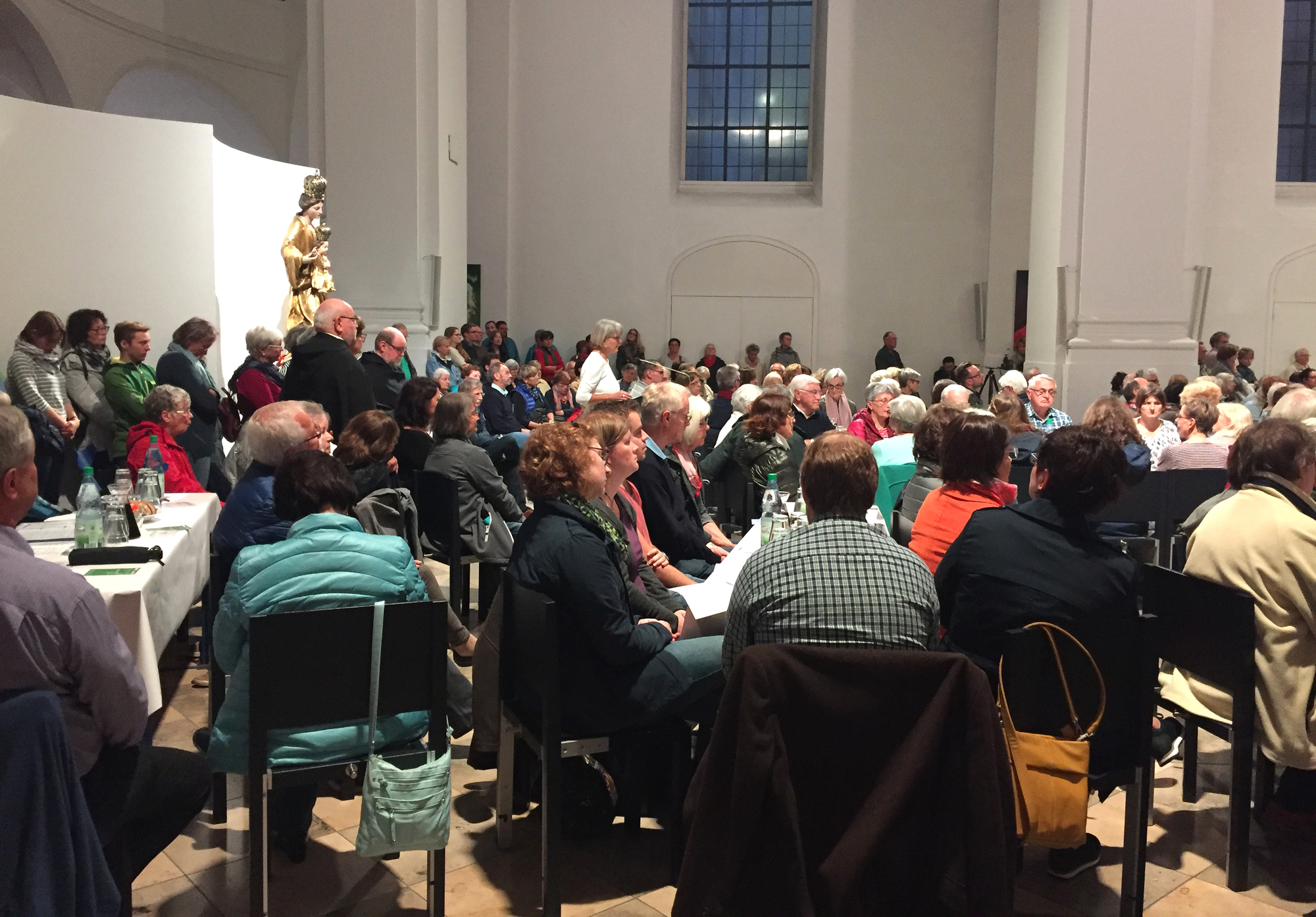 Der Auftakt zur Veranstaltung fand an drei verschiedenen Orten statt: mit ökumenischen Gottesdiensten in Sankt Stephan und der Augustinerkirche sowie einer orthodoxen Vesper im Neumünster. In Sankt Stephan feierten Stadtdekan Domkapitular Dr. Jürgen Vorndran und Dekanin Dr. Edda Weise mit den Gläubigen. Gestaltet wurde der Gottesdienst vom Chor „Voices“. Die Feier in der Augustinerkirche stand unter dem Motto „Ich will, dass du bist“. Ganz zentral dabei: das gemeinsame Essen. Dafür hatten die Ordensbrüder Tische und Stühle in den Kirchenraum gestellt. Die Vesper im Neumünster zelebrierte der russisch-orthodoxe Priester Vladimir Bayanov. Unterstützt wurde er vom Chor seiner Gemeinde.