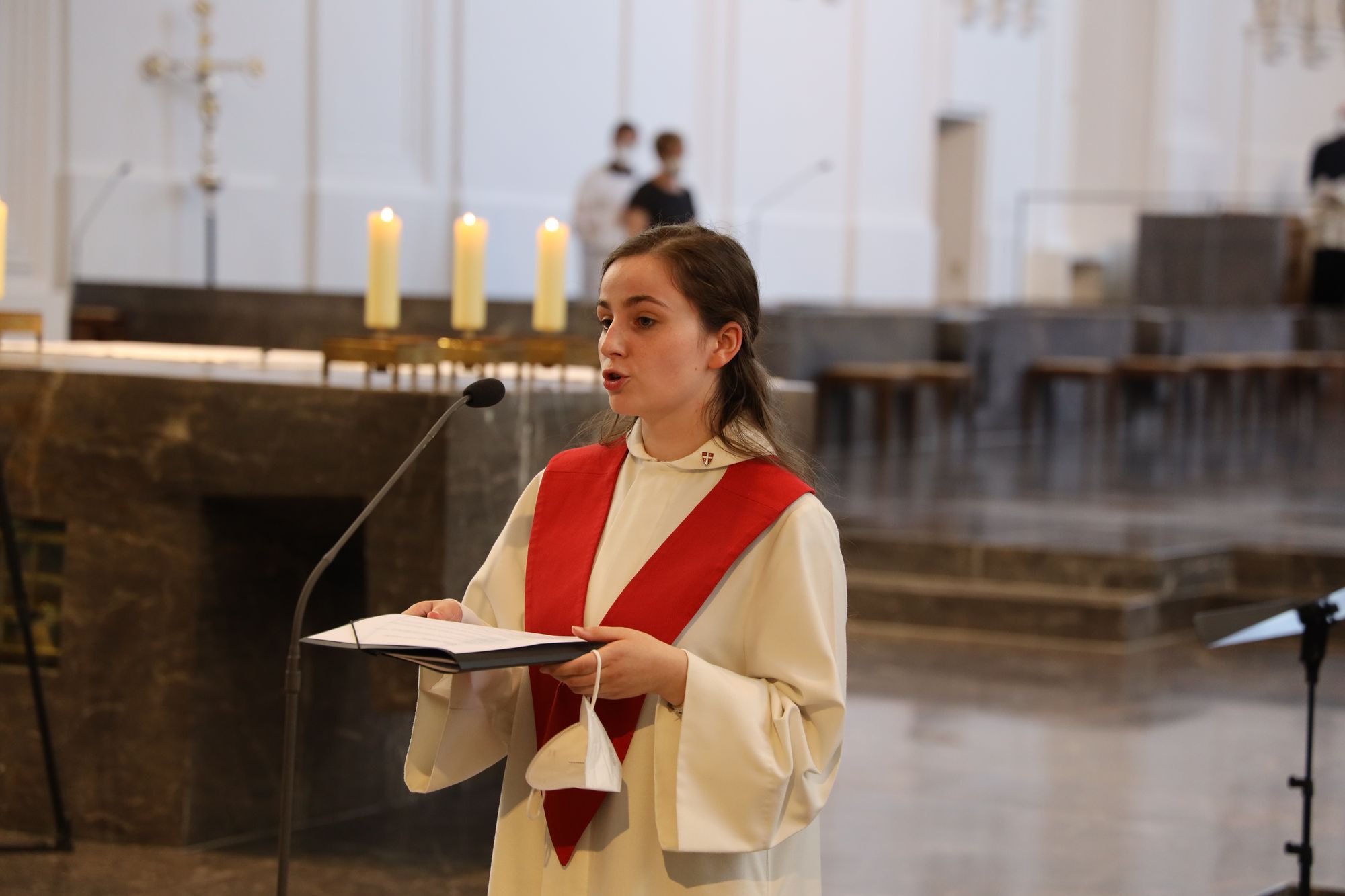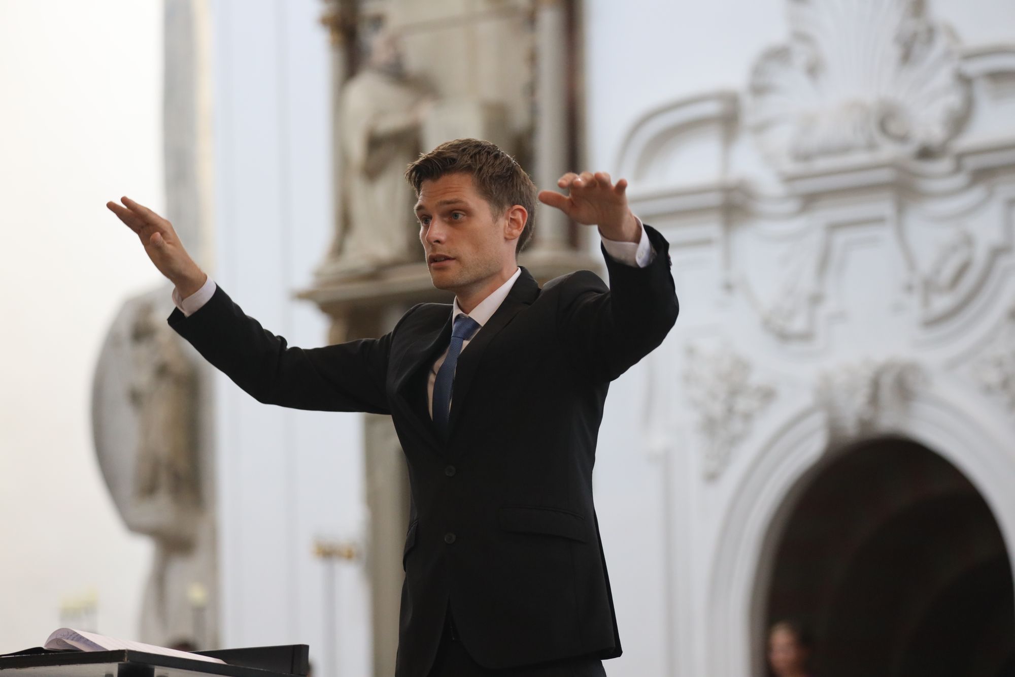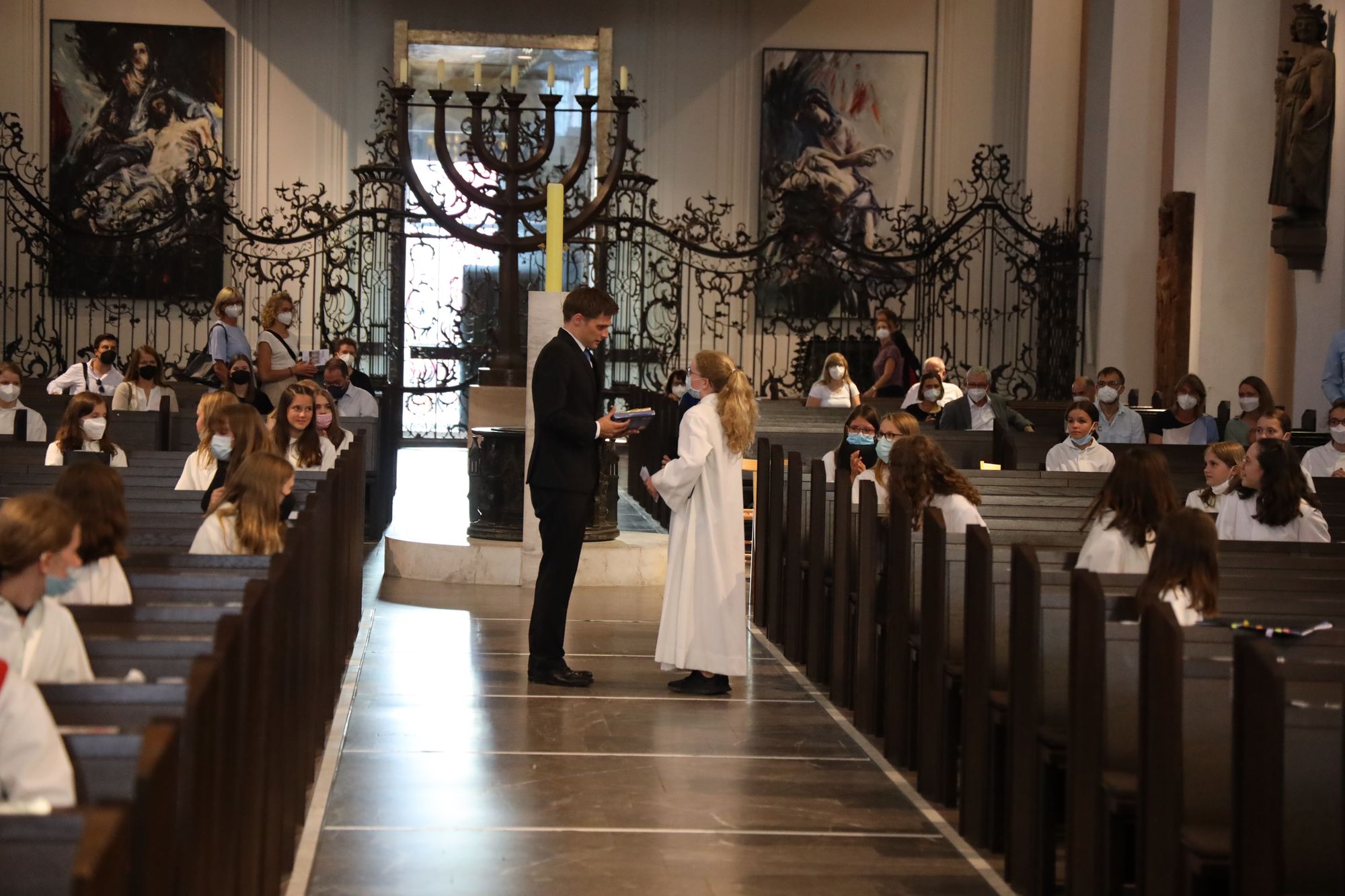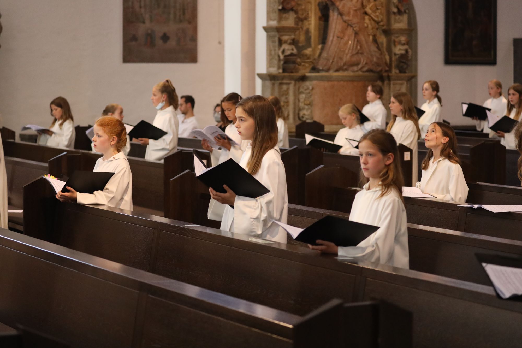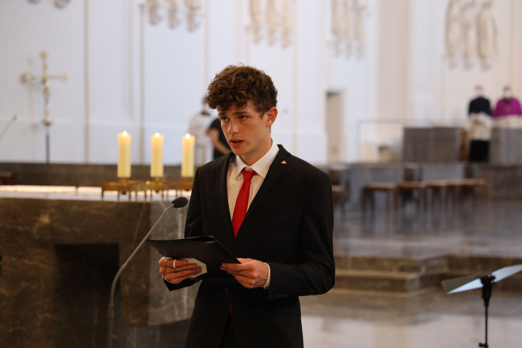 Würzburg (POW) Minutenlangen donnernden Applaus für den scheidenden Domkantor Alexander Rüth (35) hat es bei dessen Verabschiedung am Freitagabend, 23. Juli, bei einem Evensong im Würzburger Kiliansdom gegeben. Die eine oder andere Träne, die am Ende bei den Sängerinnen und Sängern von Domchor, Mädchenkantorei und Domsingknaben floss, zeigte, wie viel Wertschätzung Rüth sich in den vergangenen zehn Jahren in Würzburg erarbeitet hat. Zum 1. September 2021 wechselt er als Münsterchordirektor nach Konstanz am Bodensee. Dem Gottesdienst, der live im Internet übertragen wurde, stand Domdekan Generalvikar Dr. Jürgen Vorndran als Offiziant vor.