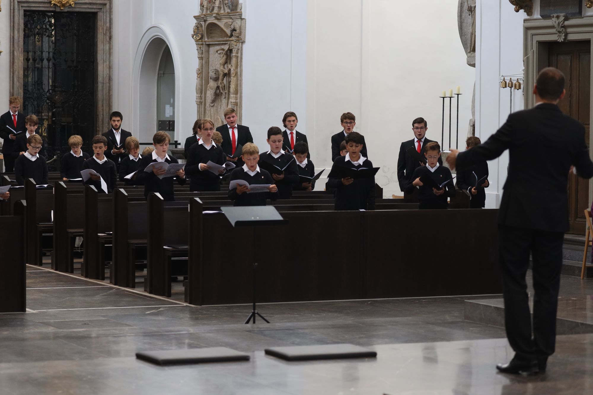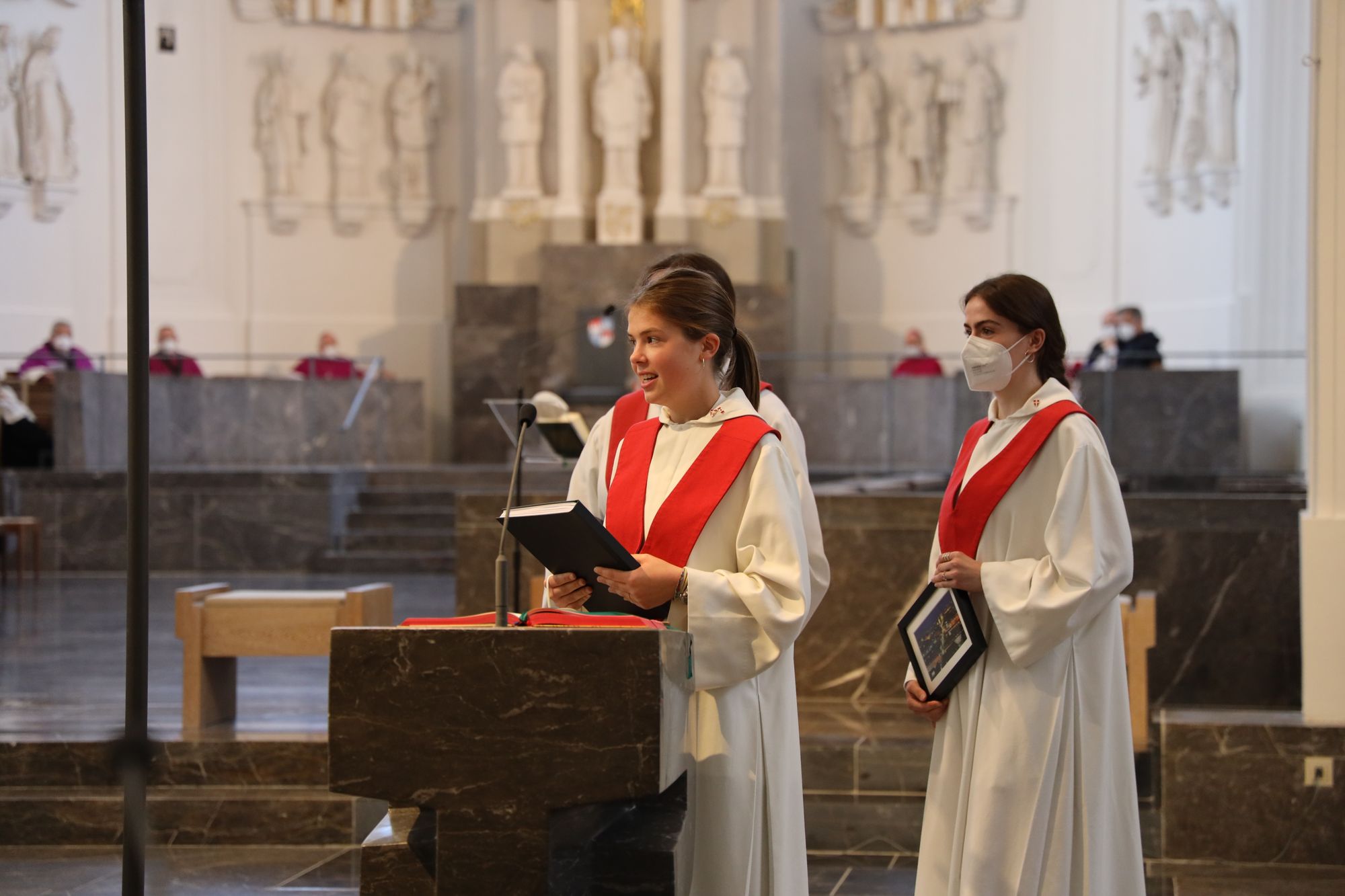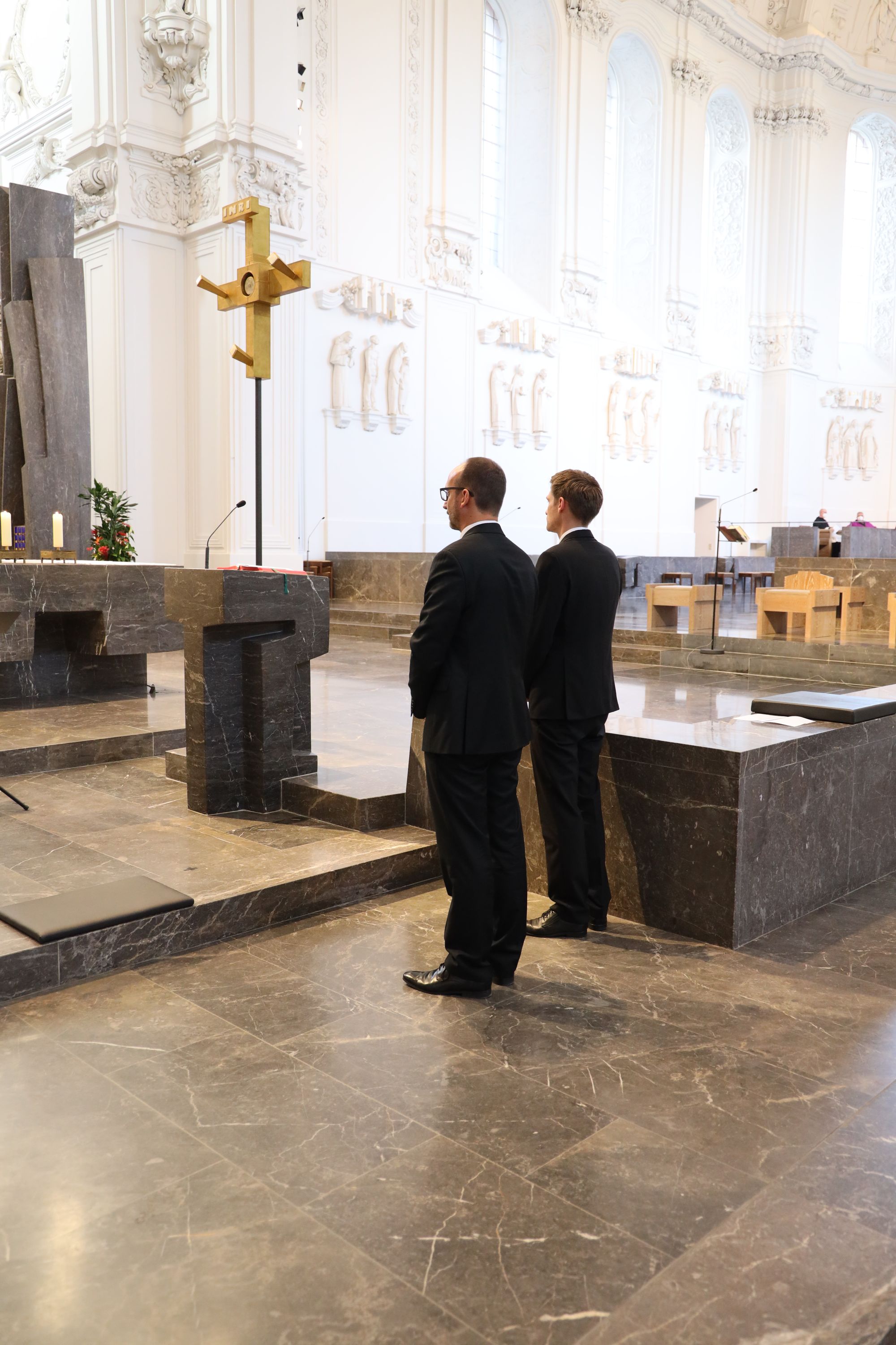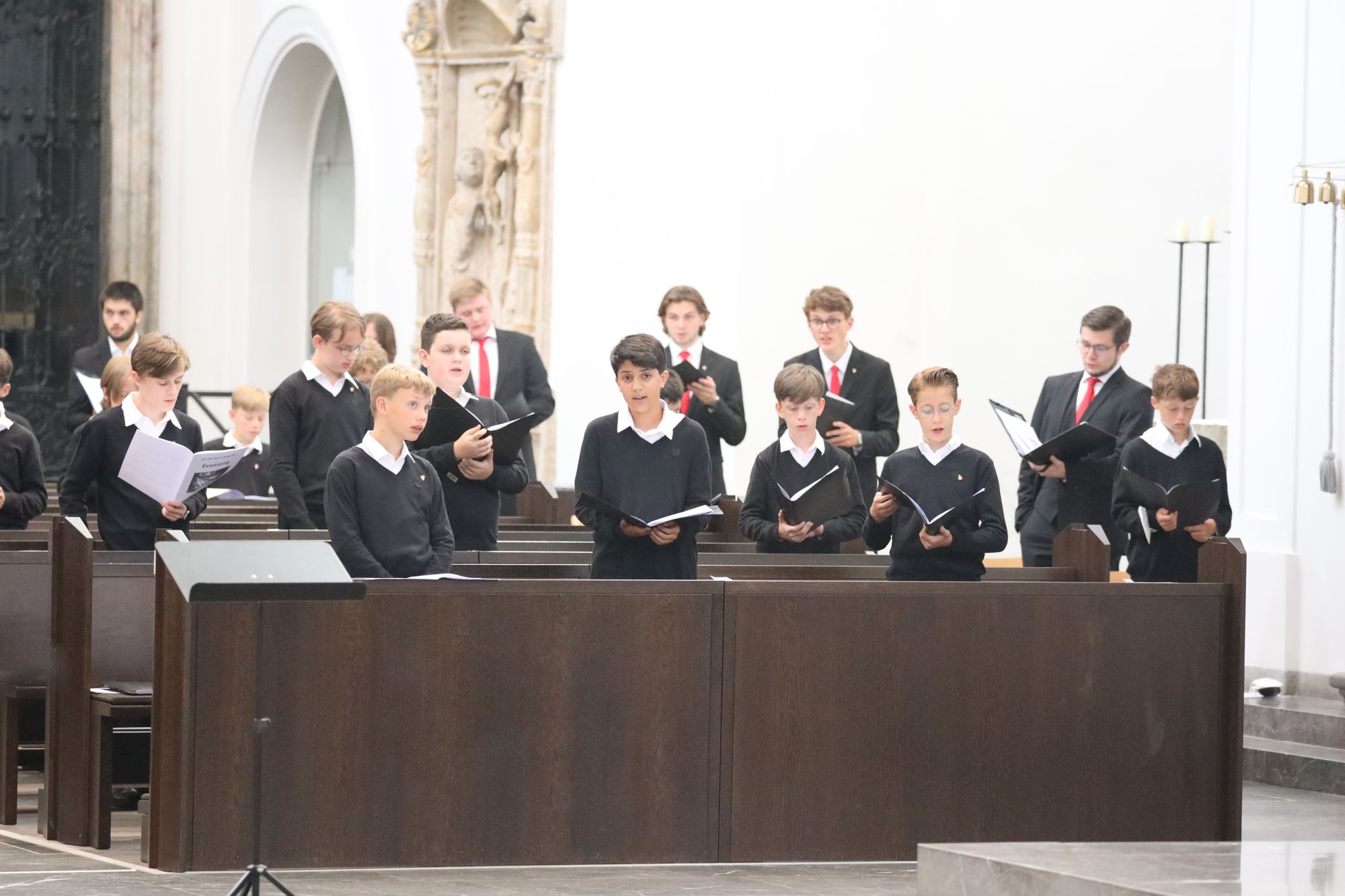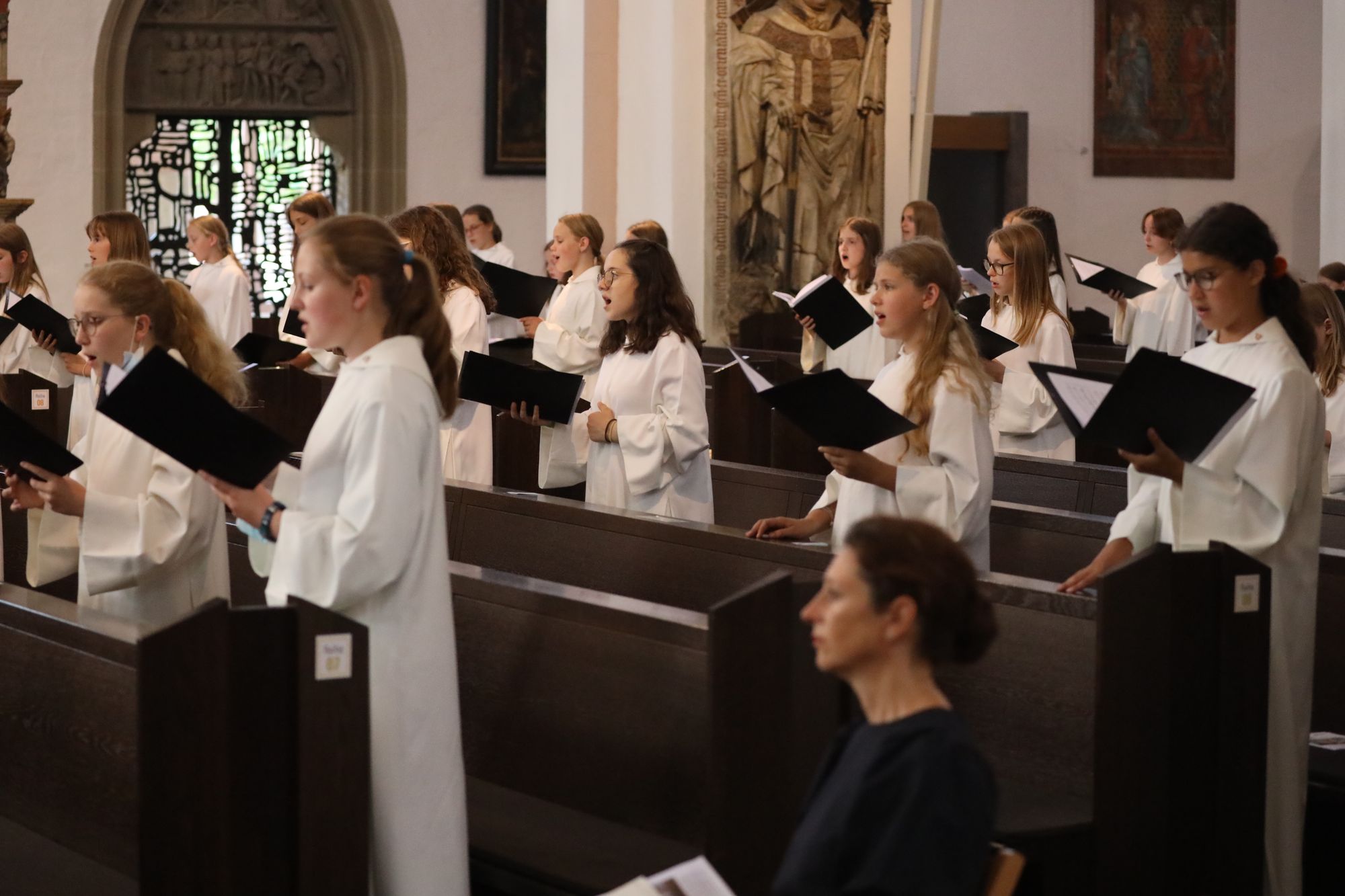 Rüth war von den Rückmeldungen sichtlich ergriffen. „Die Intensität des Moments zeigt mir, wie reich die zehn Jahre in Würzburg waren.“ Er dankte Bischof Jung und dem Domkapitel für das in ihn gesetzte Vertrauen und die Freiräume. Domkapellmeister Schmid habe ihn stets freundschaftlich unterstützt, Domorganist Professor Stefan Schmidt sei eine wichtige Konstante in seiner Würzburger Zeit gewesen. Allen, die mit ihrem Gesang oder im Hintergrund für die Dommusik aktiv sind, zollte Rüth seinen Dank und bat sie, diesen Einsatz weiter zu pflegen. An alle Entscheidungsträger des Bistums appellierte er, die Jugendarbeit der Dommusik allgemein als großen Schatz und insbesondere auch die Mädchenkantorei, für die er selbst besonders verantwortlich war, weiter zu fördern. „Ich werde immer Euer größter Fan bleiben“, sagte er zu den jugendlichen Sängerinnen.