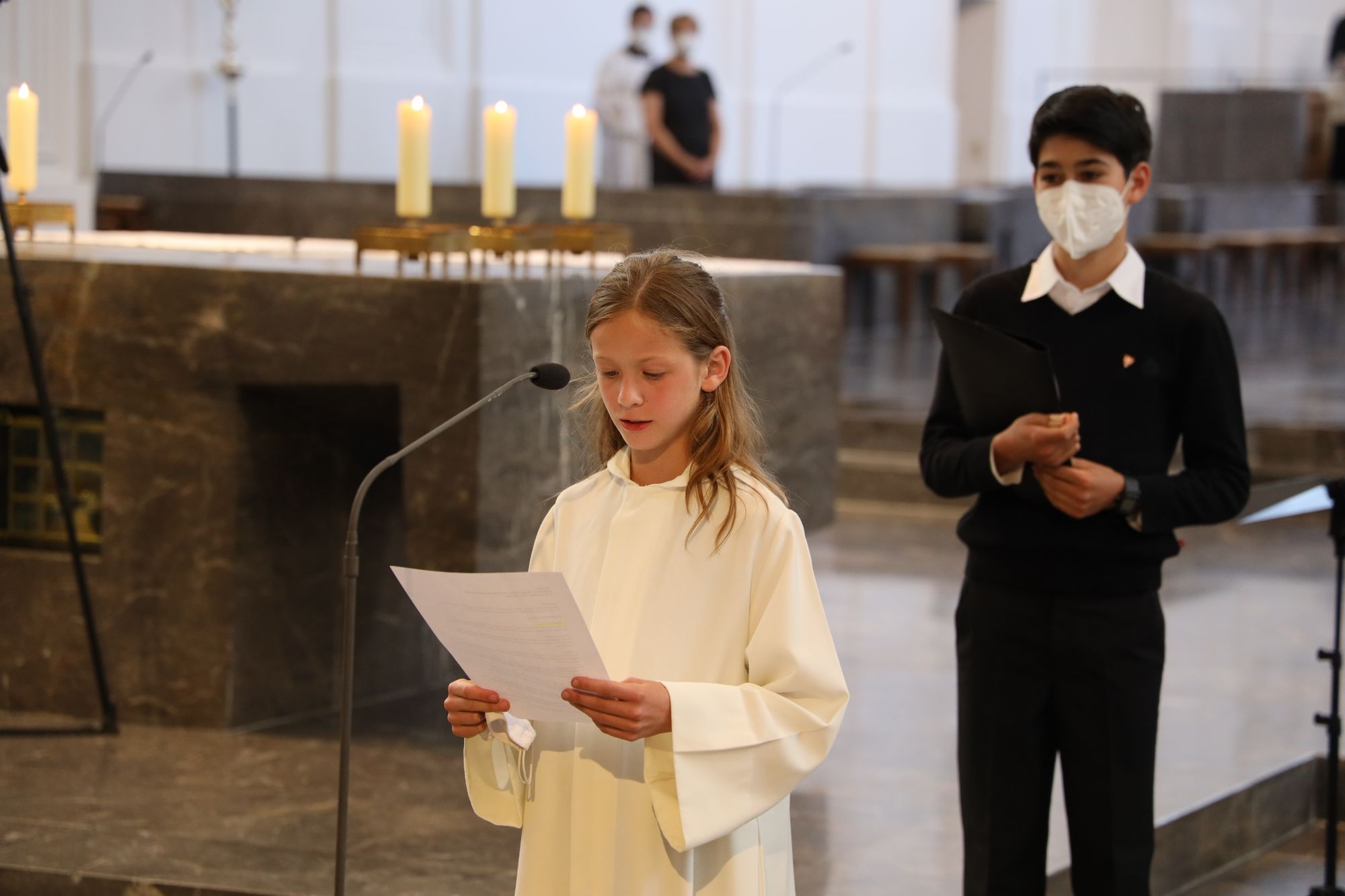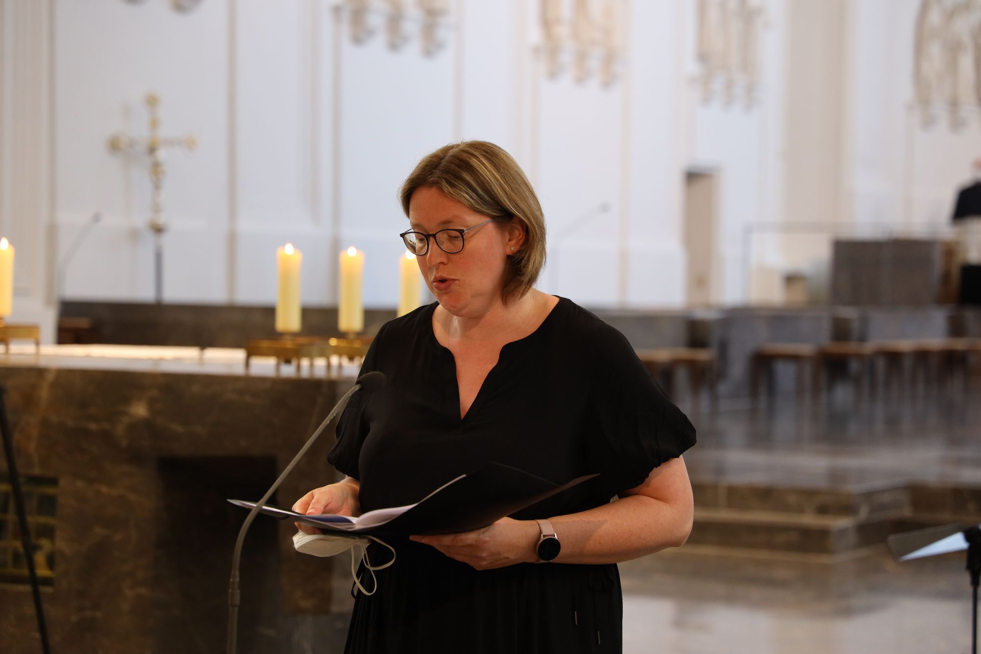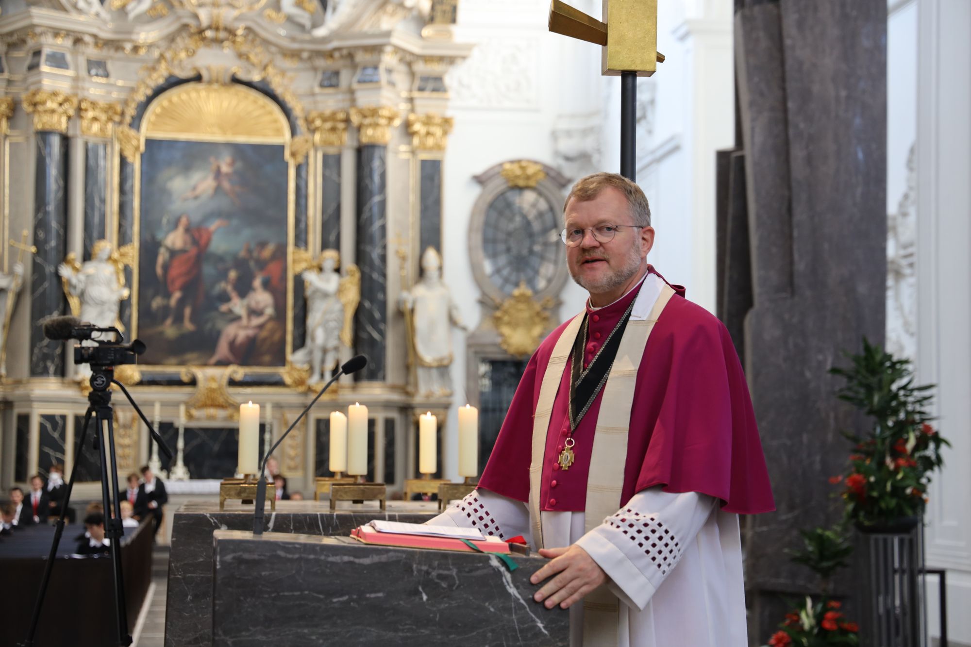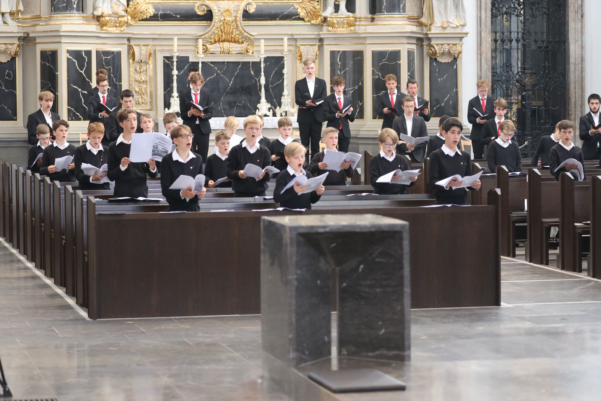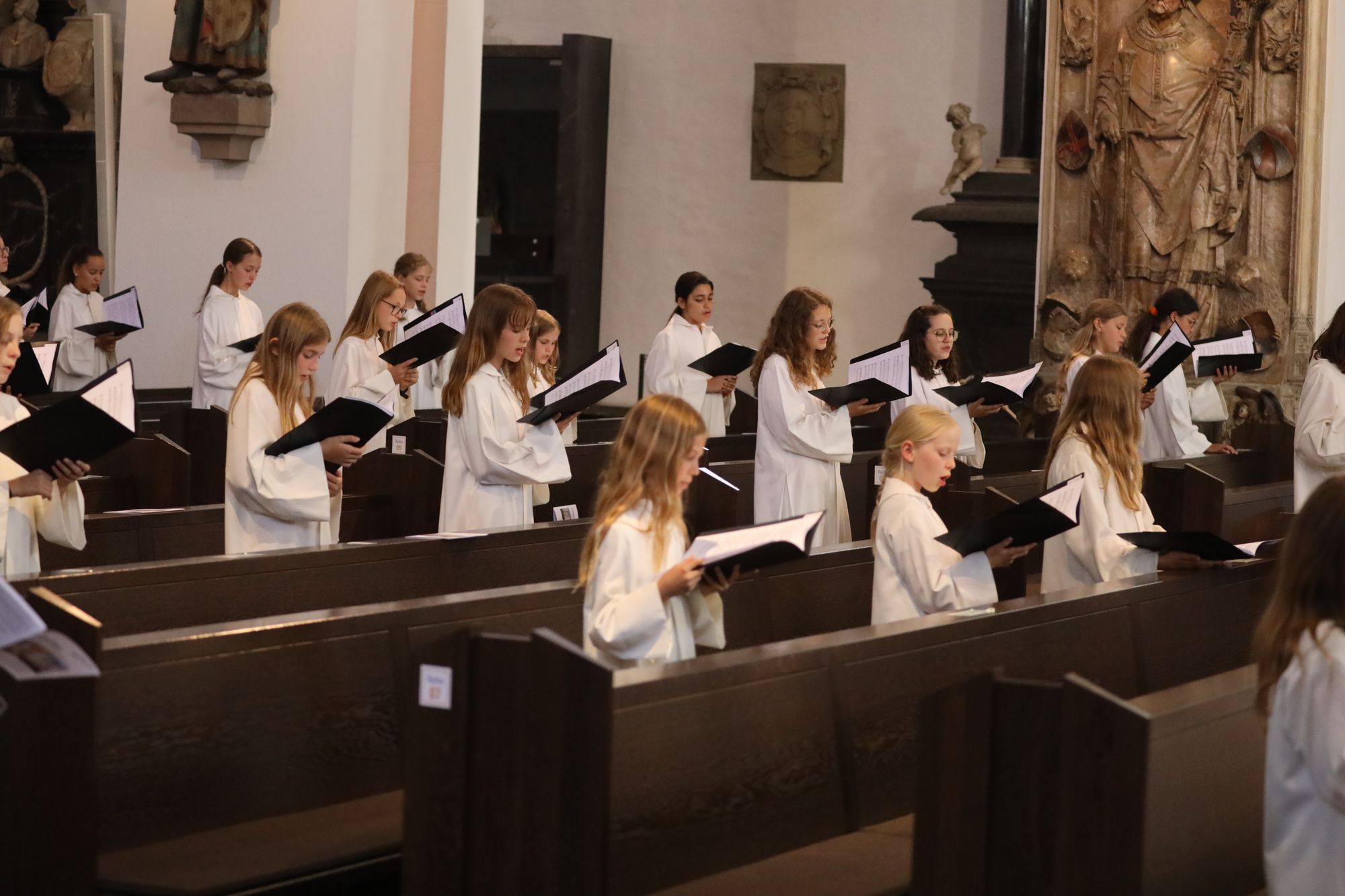 Rüth war von den Rückmeldungen sichtlich ergriffen. „Die Intensität des Moments zeigt mir, wie reich die zehn Jahre in Würzburg waren.“ Er dankte Bischof Jung und dem Domkapitel für das in ihn gesetzte Vertrauen und die Freiräume. Domkapellmeister Schmid habe ihn stets freundschaftlich unterstützt, Domorganist Professor Stefan Schmidt sei eine wichtige Konstante in seiner Würzburger Zeit gewesen. Allen, die mit ihrem Gesang oder im Hintergrund für die Dommusik aktiv sind, zollte Rüth seinen Dank und bat sie, diesen Einsatz weiter zu pflegen. An alle Entscheidungsträger des Bistums appellierte er, die Jugendarbeit der Dommusik allgemein als großen Schatz und insbesondere auch die Mädchenkantorei, für die er selbst besonders verantwortlich war, weiter zu fördern. „Ich werde immer Euer größter Fan bleiben“, sagte er zu den jugendlichen Sängerinnen.