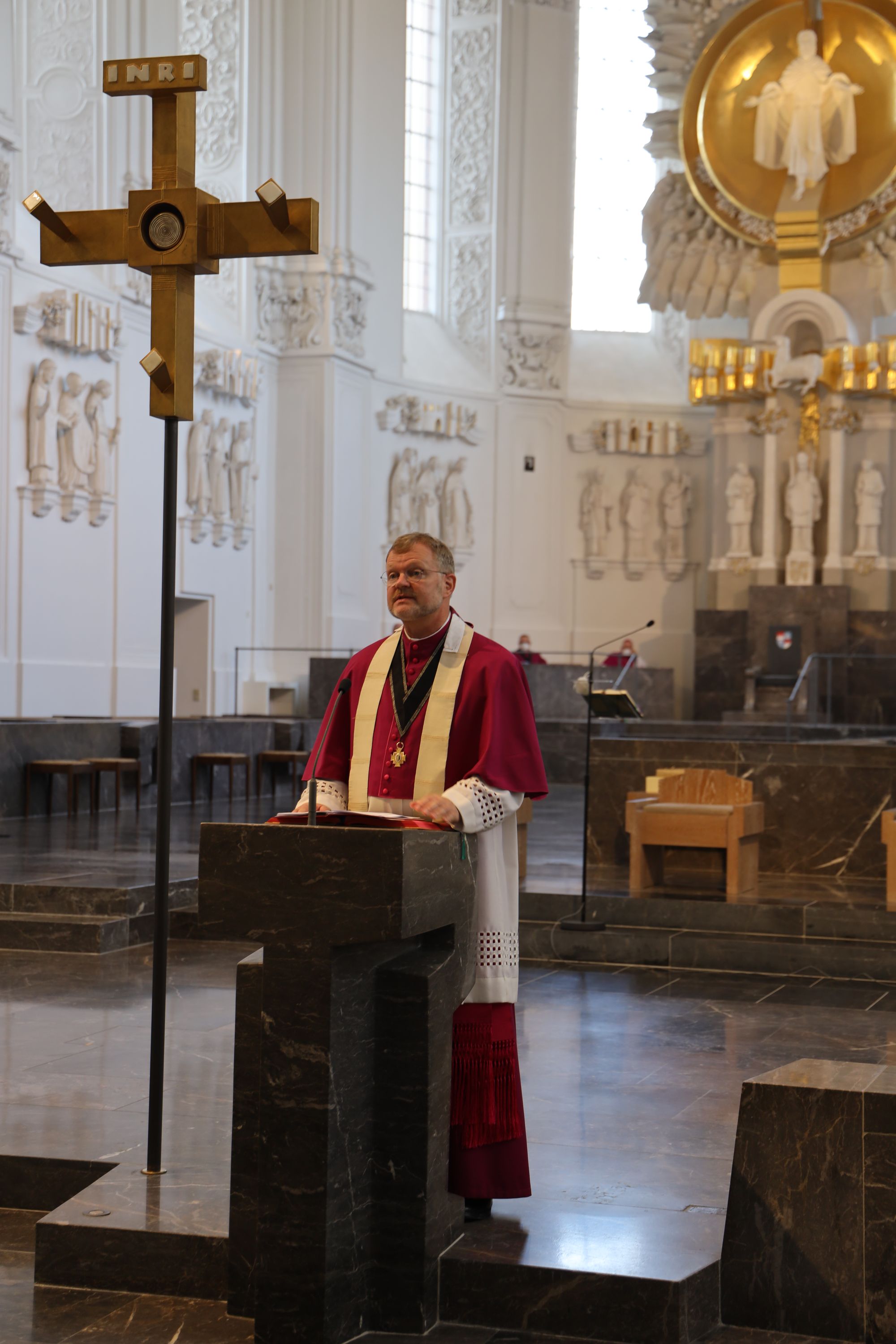 „Danke für zehn Jahre voller Kreativität, Spiritualität und Musikalität“, sagte der Domdekan. Rüth habe sich als Eigengewächs der Region Untermain schon in seiner ersten Ausbildungsphase zum Kirchenmusiker als Sänger, Chorleiter und Organist „auf hohem Niveau und aus Überzeugung“ engagiert. Unter Prälat Günter Putz, Vorndrans Vorgänger als Domdekan, sei Rüth dann als Domkantor nach Würzburg gekommen. „Musik auf sehr hohem Niveau und aus tiefster christlicher Überzeugung“ sei bis heute sein Markenzeichen. Zudem seien bei ihm „Menschen, Musik und Organisation in besten Händen“, attestierte Vorndran. Deswegen kamen auch Bischof Dr. Franz Jung, Weihbischof Ulrich Boom und das Domkapitel, um Rüth Danke zu sagen.