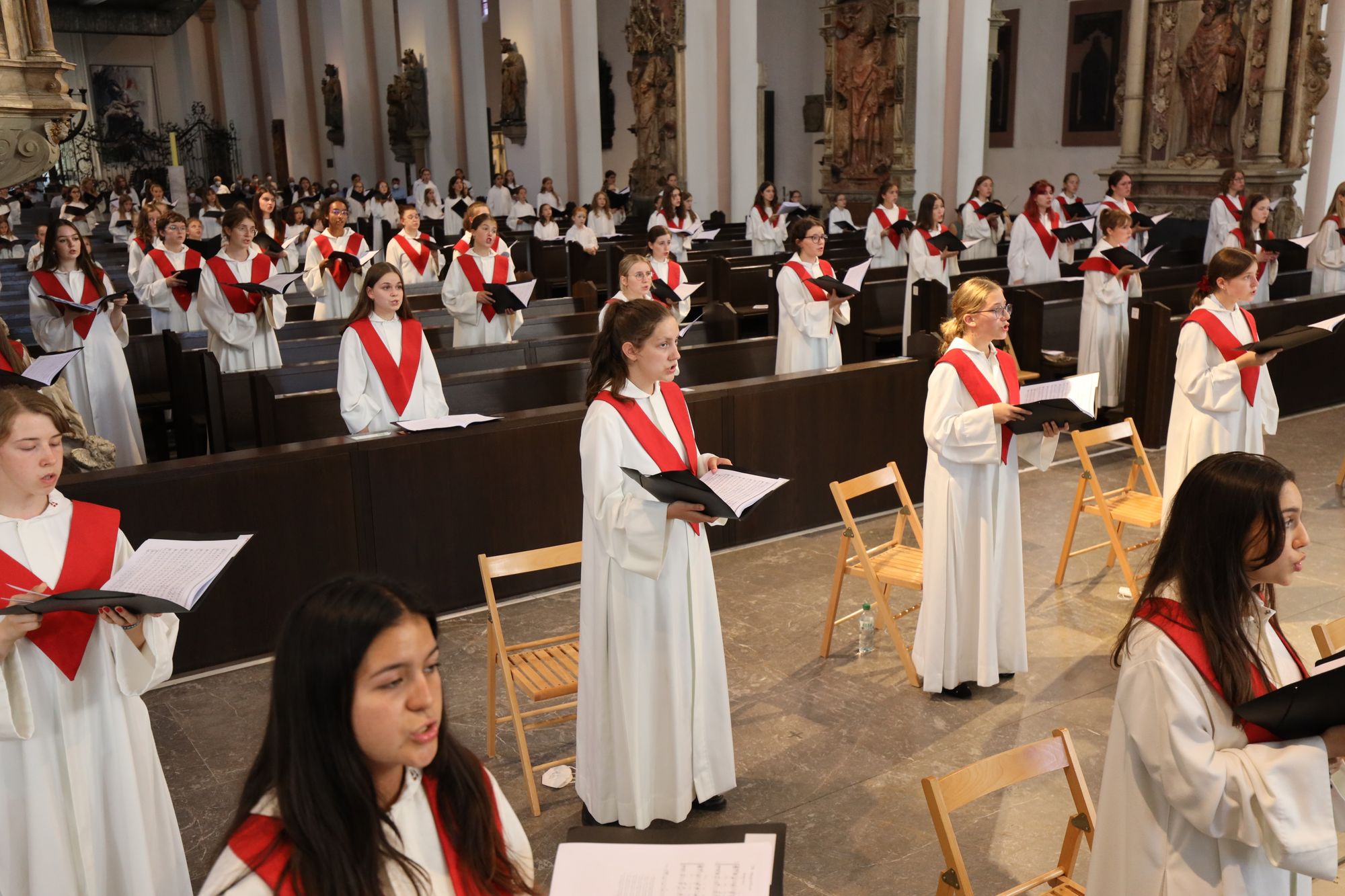 Domkapellmeister Professor Christian Schmid attestierte seinem Domkantor: „Dein Name steht für den guten Klang der Dommusik, den viele Menschen weit über die Bistumsgrenzen hinaus kennen. Du hast Maßstäbe gesetzt!“ So habe Rüth mit seinem pädagogischen Geschick wesentlich zur Etablierung der Chorklassen im ElisabethenHeim und dem Wirsberg-Gymnasium beigetragen und zudem mit seiner Arbeit eine Generation von Nachwuchssängerinnen und -sängern ausgebildet und geprägt. Davon gaben die persönlichen Dankesworte und Geschenke von Mädchenkantorei, Domsingknaben und Domchor eindrucksvoll Zeugnis. „Alex, Du wirst uns fehlen!“, formulierte eine Sprecherin des Domchors.