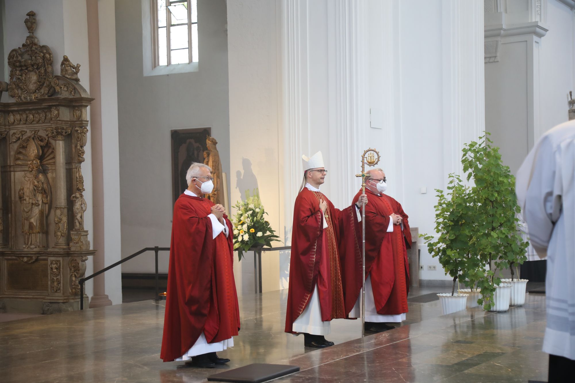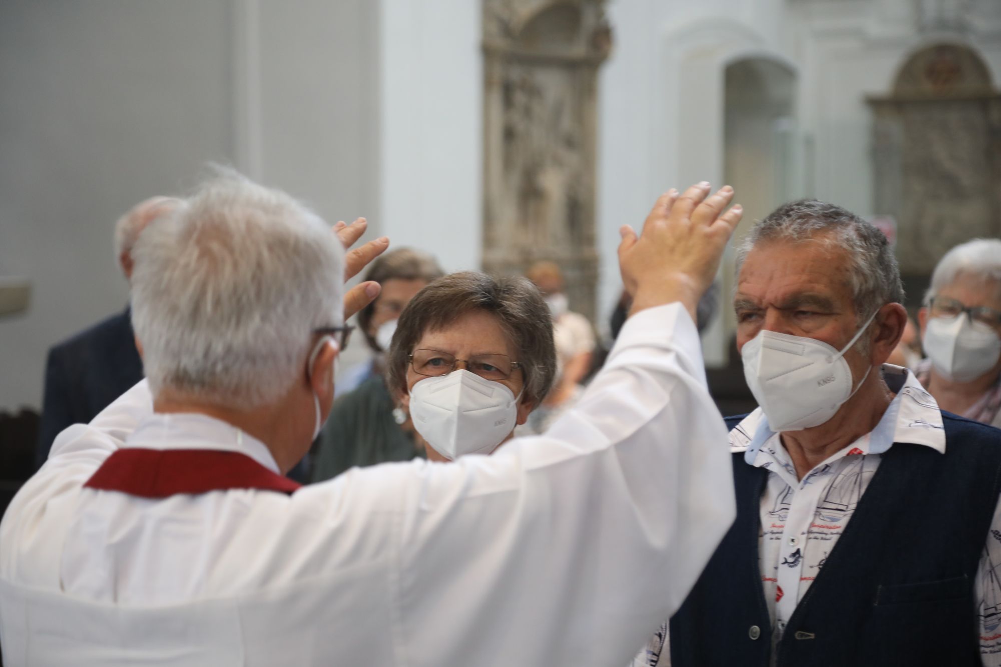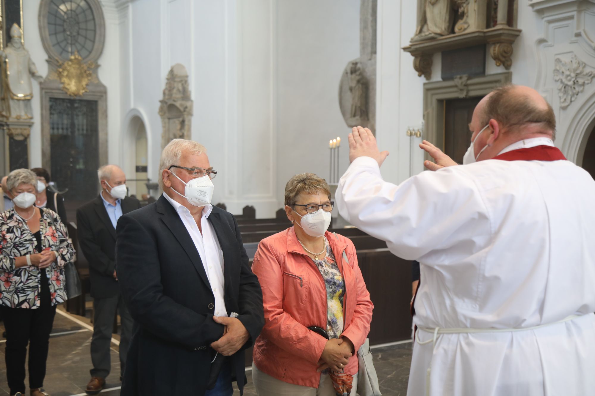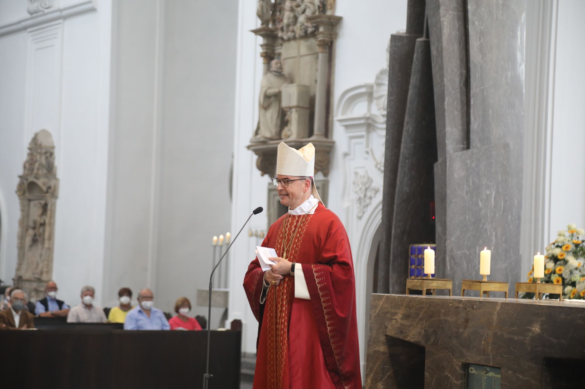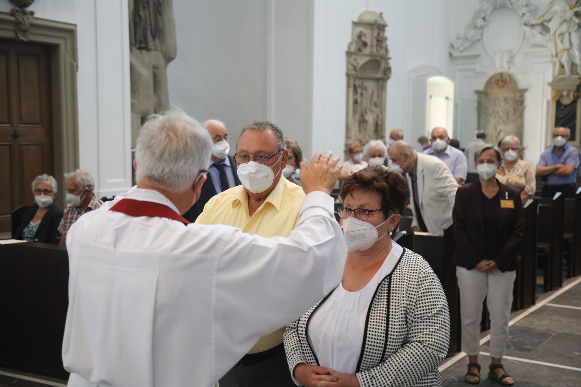 In der Predigt schuf Bischof Jung die Verbindung zwischen dem Evangelium zum Hochfest Peter und Paul und der Beziehung der Ehejubilare. Im Evangelium stelle Jesus die Vertrauensfrage: „Für wen haltet ihr mich?“ Es sei eine heikle Frage, jemanden direkt zu fragen: „Wer bin ich für dich?“ Eine oder einer von vielen oder doch etwas Besonderes? Das sei eine Frage, die sich alle Paare einmal gestellt hätten. Nach dem Gottesdienst ließen sich die Ehepartner von Bischof Jung und weiteren Priestern und Diakonen segnen. Die übliche Begegnung auf dem Kiliansplatz im Anschluss an den Gottesdienst musste aufgrund der Coronapandemie entfallen. Der Dankgottesdienst für Ehejubilare war der zehnte von insgesamt 18, die vor der diesjährigen Kiliani-Wallfahrtswoche unter den aktuellen Corona-Schutzmaßnahmen stattfinden.
