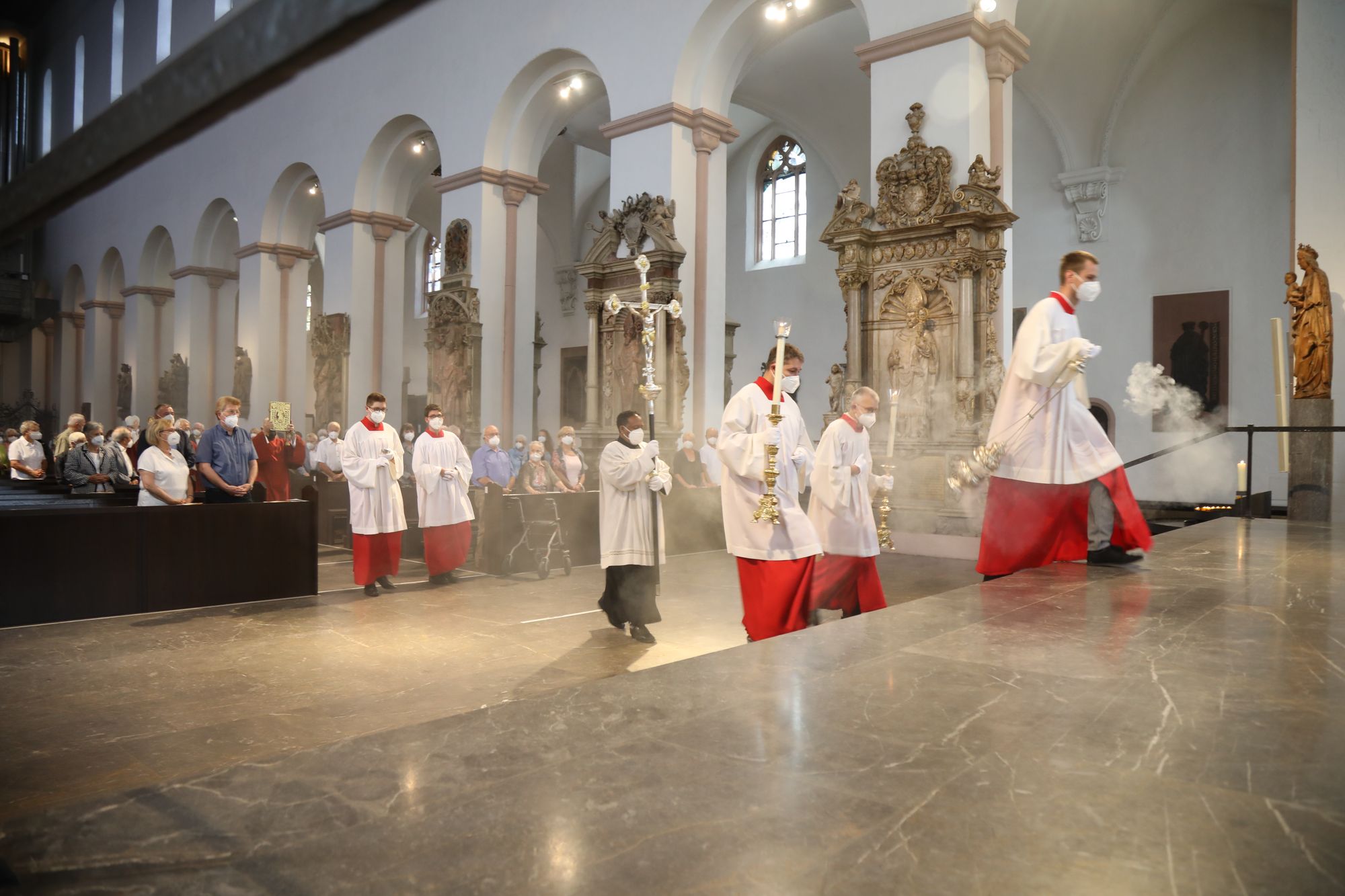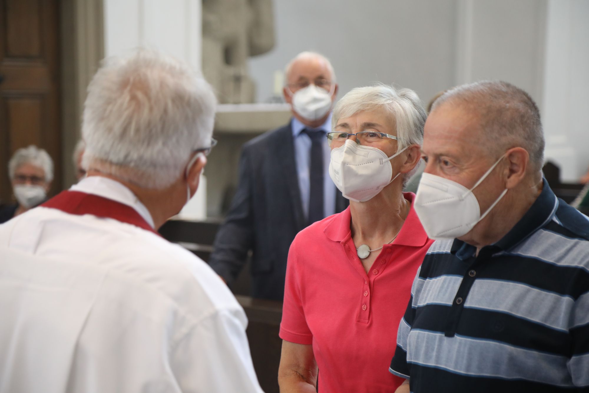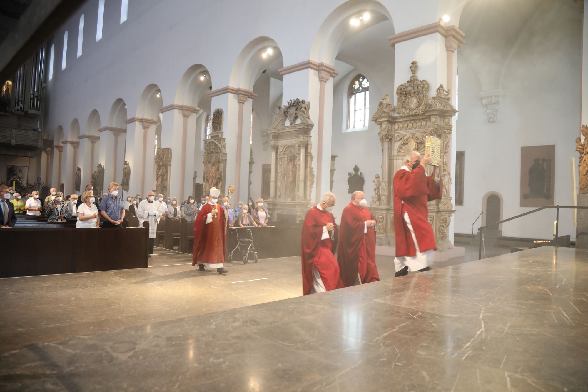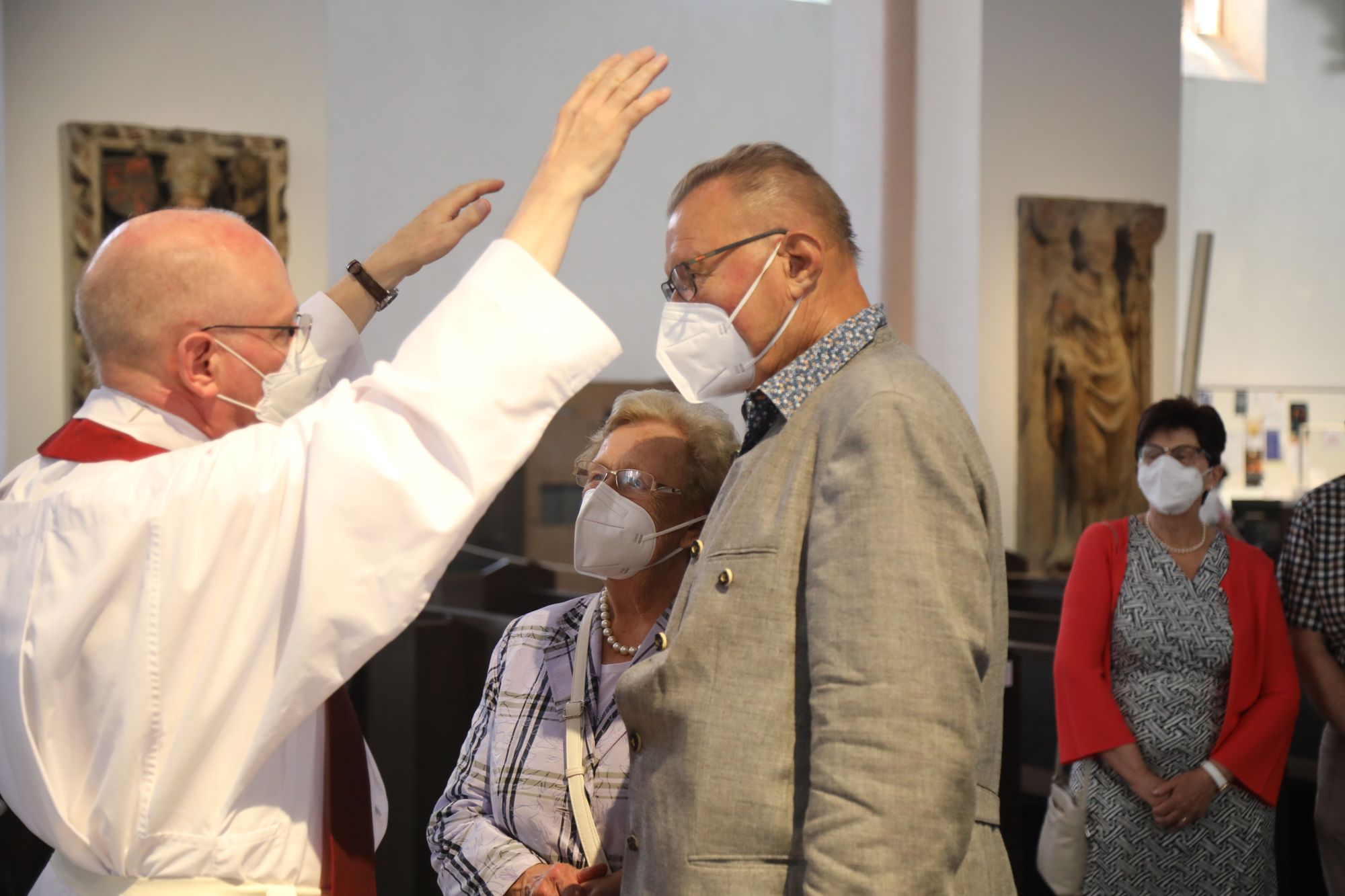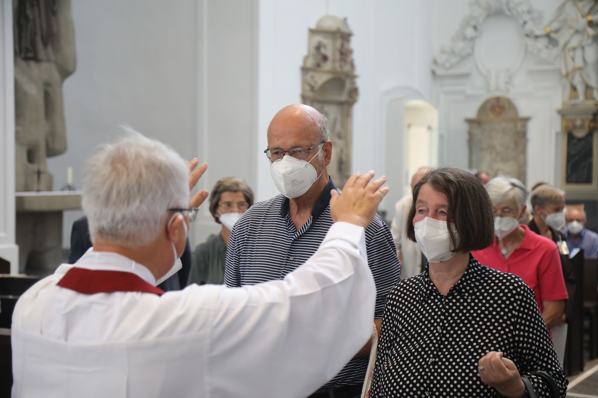 In der Predigt schuf Bischof Jung die Verbindung zwischen dem Evangelium zum Hochfest Peter und Paul und der Beziehung der Ehejubilare. Im Evangelium stelle Jesus die Vertrauensfrage: „Für wen haltet ihr mich?“ Es sei eine heikle Frage, jemanden direkt zu fragen: „Wer bin ich für dich?“ Eine oder einer von vielen oder doch etwas Besonderes? Das sei eine Frage, die sich alle Paare einmal gestellt hätten. Nach dem Gottesdienst ließen sich die Ehepartner von Bischof Jung und weiteren Priestern und Diakonen segnen. Die übliche Begegnung auf dem Kiliansplatz im Anschluss an den Gottesdienst musste aufgrund der Coronapandemie entfallen. Der Dankgottesdienst für Ehejubilare war der zehnte von insgesamt 18, die vor der diesjährigen Kiliani-Wallfahrtswoche unter den aktuellen Corona-Schutzmaßnahmen stattfinden.