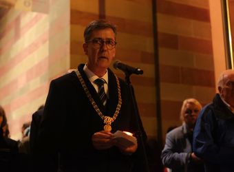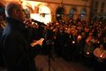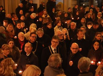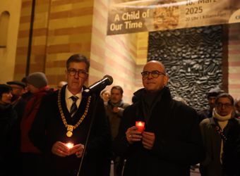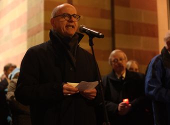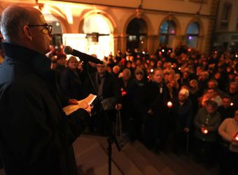 Insofern mahne das Kindergedicht, heute in exakt umgekehrter Weise zu handeln. „Es geht darum, die Nacht zu erhellen, das, was im Schutz der Dunkelheit passiert, ans Licht zu heben und das Unrecht, das geschieht, als solches zu benennen.“ Nicht die Sirenen sollten heulen, sondern der Glockenklang daran erinnern, dass Christus zu Solidarität verpflichte. „Statt in die Keller zu eilen, müssen wir auf den Straßen deutlich machen, wofür wir stehen, und uns für die Beendigung von sinnlosen Kriegen einsetzen.“ Statt sich blind einer Ordnung zu fügen, die vermeintlich einen reibungslosen Ablauf garantiere, gelte es, eine Ordnung aufzurichten, durch die die Menschenwürde gewahrt werde. „Keine trügerische Sicherheit darf uns leiten, sondern das Bewusstsein, dass wir alle in Verantwortung gerufen sind.“