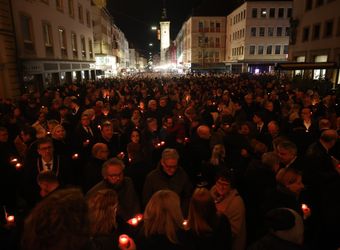 Auf dem Domvorplatz und in der Domstraße versammelten sich beim Gedenkläuten aller Würzburger Glocken Menschen mit brennenden Kerzen in den Händen.