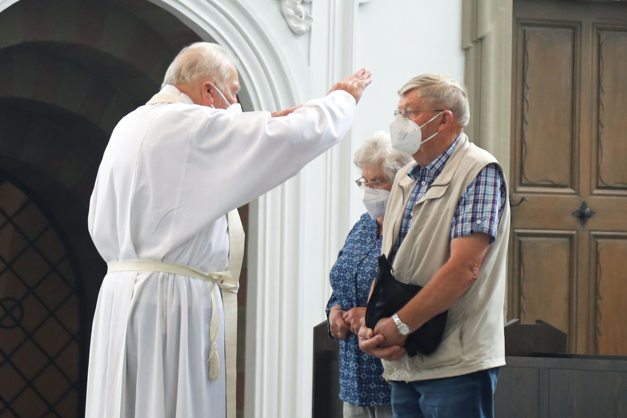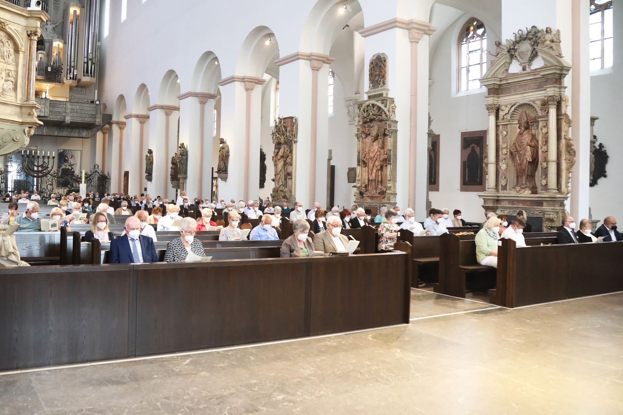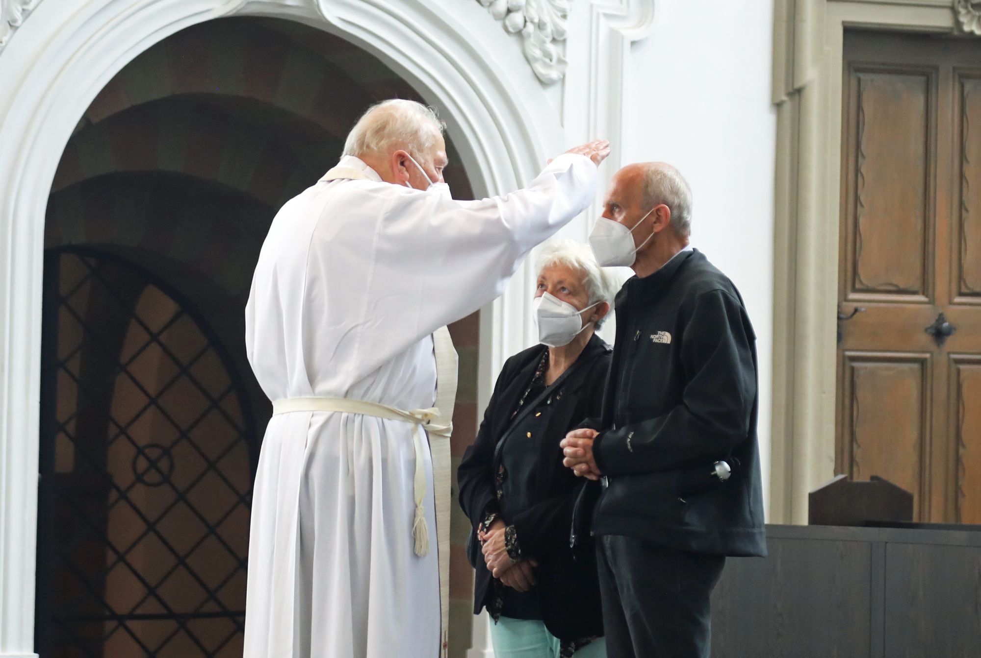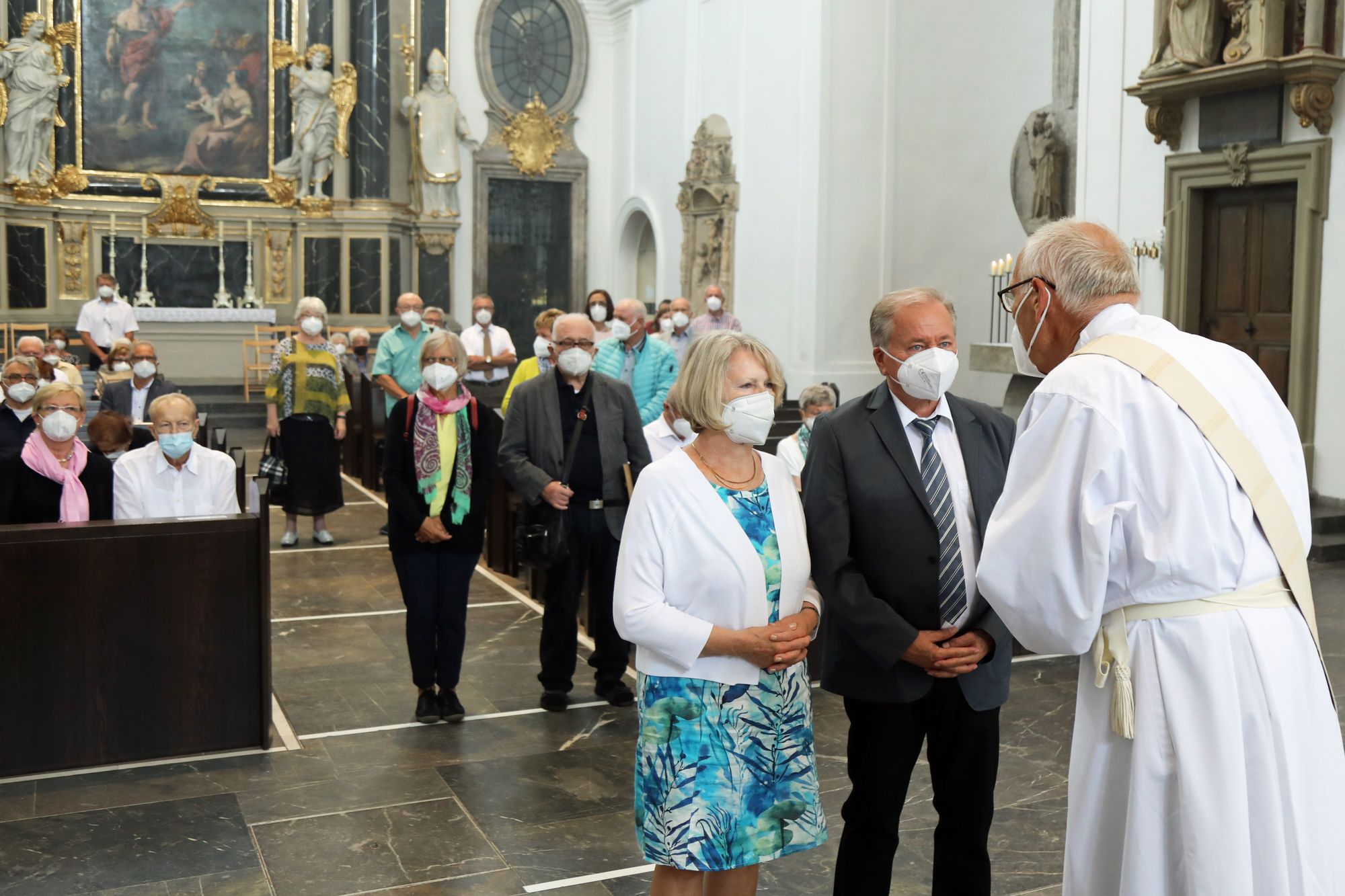 (POW) Mit rund 110 Ehepaaren aus dem ganzen Bistum hat Bischof em. Dr. Friedhelm Hofmann am Mittwochvormittag, 23. Juni, einen Pontifikalgottesdienst für Ehejubilare gefeiert, die in den Jahren 2020 und 2021 auf 50, 60 oder 65 gemeinsame Jahre zurückblicken. „Ich danke Ihnen allen für Ihr Zeugnis“, sagte Bischof Hofmann zu den Gläubigen, die den Gottesdienst im Würzburger Kiliansdom unter den aktuellen Corona-Beschränkungen feierten. „Sie zeigen deutlich, dass die Ehe kein Auslaufmodell unserer Gesellschaft, sondern im Gegenteil Grundlage eines prosperierenden Gemeinwohls ist. Ehe hat Zukunft!“ Im vergangenen Jahr mussten die Gottesdienste für die Ehejubilare aufgrund der Coronapandemie entfallen. Deshalb werden in diesem Jahr insgesamt 18 Gottesdienste für Ehejubilare gefeiert, die in den Jahren 2020 und 2021 ihr silbernes beziehungsweise goldenes, diamantenes oder eisernes Ehejubiläum begehen. Trotz der Coronakrise seien die Menschen in der Kirche beheimatet und erführen Gottes Liebe, erklärte Bischof Hofmann.