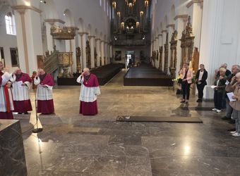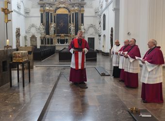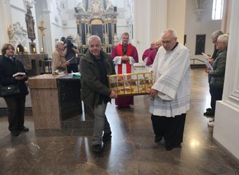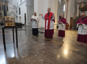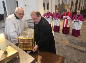 Bei einer liturgischen Feier am Donnerstag, 26. September, sind die Reliquien der Frankenapostel Kilian. Kolonat und Totnan aus dem Altar des Kiliansdom genommen und im Anschluss für den Transport in Richtung Irland verladen worden. Von Mittwoch, 2., bis Sonntag, 6. Oktober, begleiten Bischof Dr. Franz Jung und Generalvikar Dr. Jürgen Vorndran mit einer Pilgergruppe aus dem Bistum den Kilianschrein bei dessen vorübergehendem Irland-Aufenthalt.