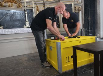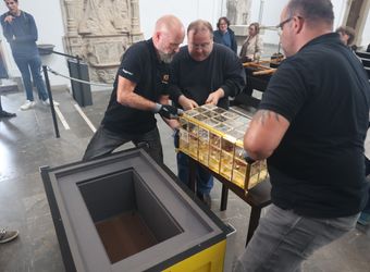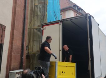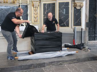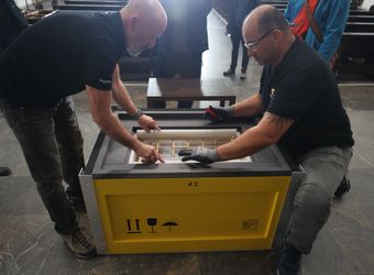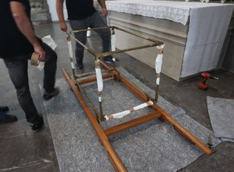 Auch das Tragegestell für den Kiliansschrein wurde für den Transport sicher verpackt.
