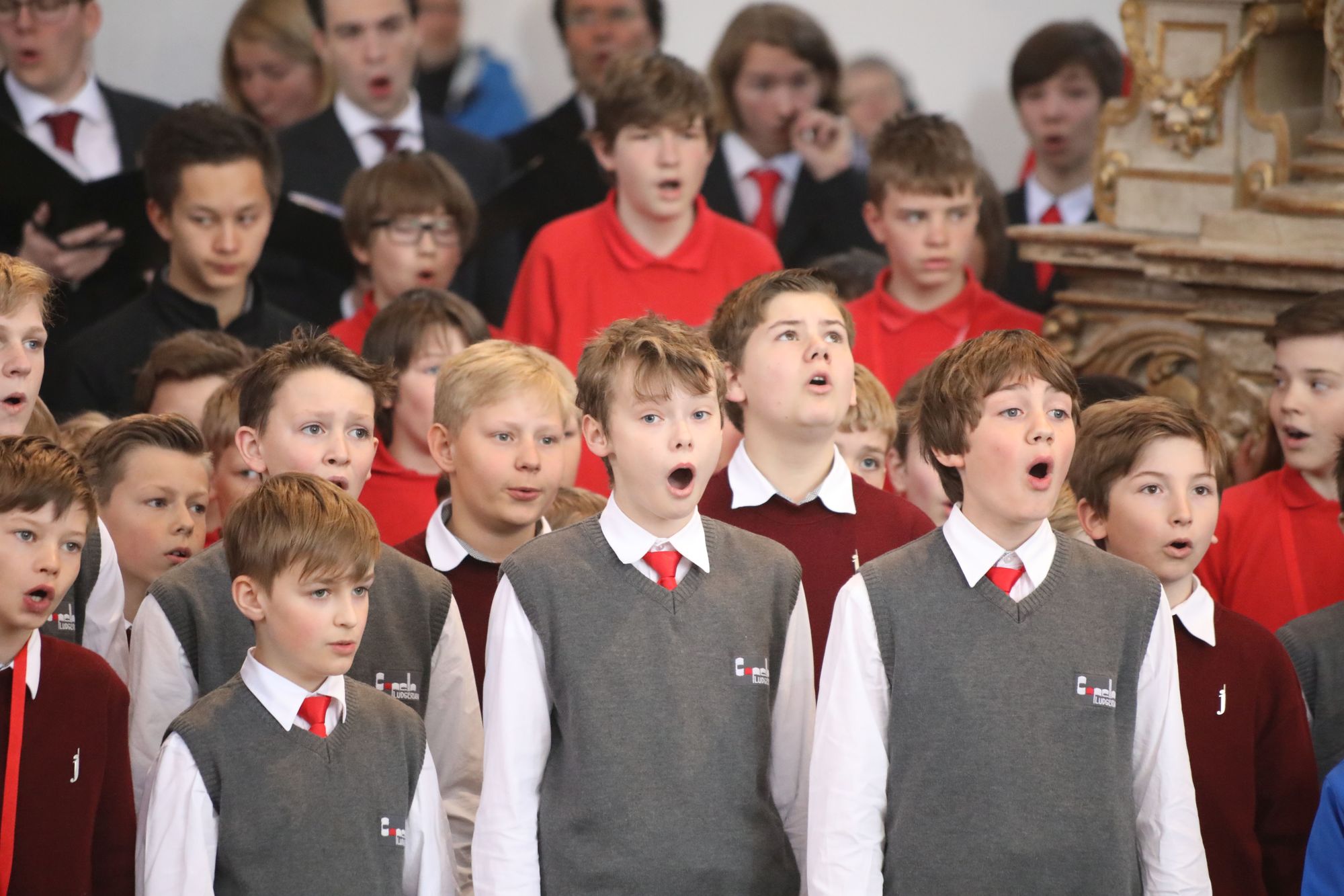 Beim Abschlussgottesdienst hob Bischof Hofmann in seiner Predigt hervor, dass beim Singen eine Wirklichkeit erkennbar werde, die nicht fassbar sei, aber Licht, Helligkeit und Wärme in die Herzen bringe. Das mache auch das Festivalmotto „Unser Licht ist Christus – Licht für die Welt“ deutlich. „Das sollt Ihr nicht nur in der Kirche sein, sondern auch außerhalb.“ Der Bischof zog Parallelen zwischen dem Evangelium der Emmausjünger und dem Alltag der Chorknaben. Die Jünger seien froh gewesen, nicht allein zu sein. Für die Jungen sei es klar, dass Singen wie Fußballspielen in der Gemeinschaft mehr Freude machten als allein. Wichtig sei es zudem, unterwegs zu sein und ein Ziel zu haben. Und nicht zuletzt brauche es Begeisterung. Die Jünger sprachen davon, dass ihnen das Herz brannte, als Jesus ihnen die Schrift deutete. „Lebt nicht Euer Gesang von der Begeisterung, und ist es nicht auch so beim Fußballspiel?“