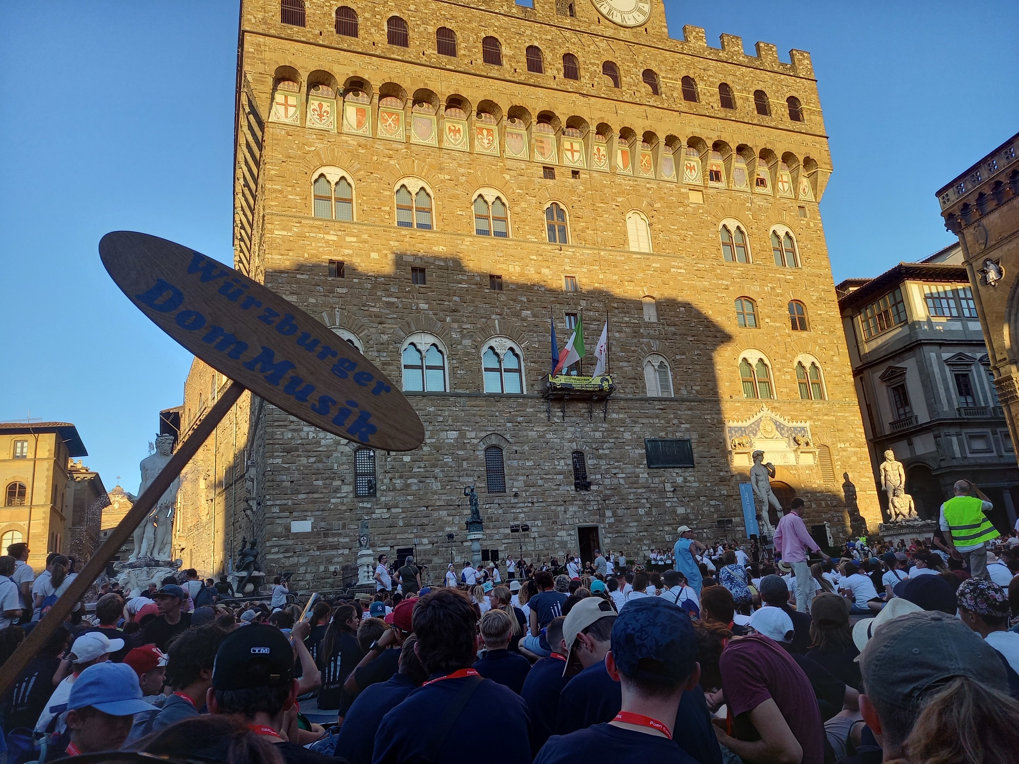 Am Abend fand das große Eröffnungsfestival auf dem Piazza della Signoria statt. Chöre aus aller Welt waren versammelt. Aus Deutschland, Spanien, Schweiz, Frankreich, Italien, Polen und sogar Mexiko… .Jeder Chor wurde mit donnerndem Applaus begrüßt, was einem nochmal zeigte, wie wichtig dieses Festival für die Chöre ist. Nach der langen Fahrt und dem aufregendem ersten Tag waren wir ziemlich erschöpft, weshalb alle zeitig ins Bett gingen.