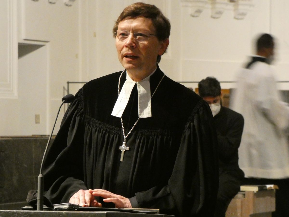 „Es vereint uns die Sorge um die Situation in der Ukraine. Zu wichtig ist der Friede für uns alle und die gesamte Welt“, sagte Leineweber. Gerade jetzt sei der ökumenische Zusammenhalt unter allen Christen gefordert. Dekan Slenczka deutete in seiner Predigt die Seligpreisungen aus der Bergpredigt. „Wo die Sonne der Gerechtigkeit scheint, sehen wir auch die eigene Ungerechtigkeit“, sagte er. Slenzcka mahnte, den eigenen Anteil an der aktuellen Situation zu betrachten. „Haben wir Putin zugehört? Haben wir mit den falschen Leuten Verträge geschlossen? Zu wenig Zeugnis für Frieden und Gerechtigkeit abgelegt? Zu wenig gebetet und geglaubt?“ In Russland werde aktuell ebenfalls für den Frieden gebetet, erklärte Slenzcka und sprach ein Gebet, das dort aktuell im Internet verbreitet werde.