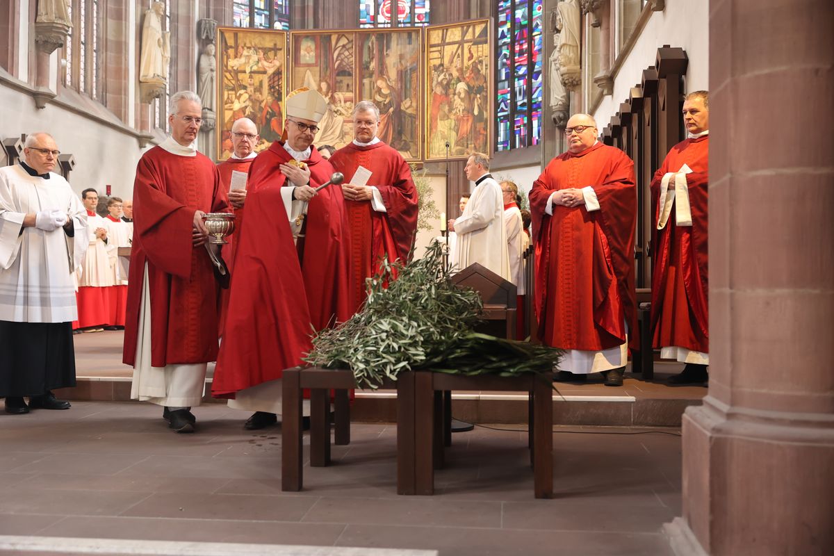 Bischof Jung feiert am Mittwoch, 16. April, um 17.30 Uhr im Kiliansdom die „Missa chrismatis“, die Weihe der heiligen Öle. Am Altar werden Bischof em. Dr. Friedhelm Hofmann, Weihbischof em. Ulrich Boom sowie das Domkapitel und die Dekane konzelebrieren. Die Choralschola unter der Leitung Domkantor Beutmiller singt die Choralmesse VIII De Angelis und ein Choralproprium. An der Klais-Orgel spielt Domorganist Schmidt unter anderem das „Praeludium f-Moll“ von Johann Sebastian Bach.