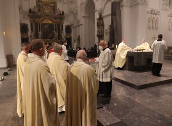 Mit der Messe vom Letzten Abendmahl am Gründonnerstag, 14. April, hat Bischof Dr. Franz Jung im Würzburger Kiliansdom die drei österlichen Tage vom Leiden und Sterben, von der Grabesruhe und der Auferstehung des Herrn eröffnet.