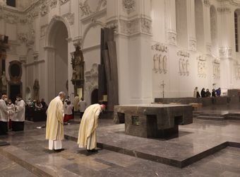 Die Karfreitagsliturgie vom Leiden und Sterben Christi feiert Bischof Jung zur Todesstunde Jesu am Karfreitag, 15. April, um 15 Uhr im Kiliansdom.