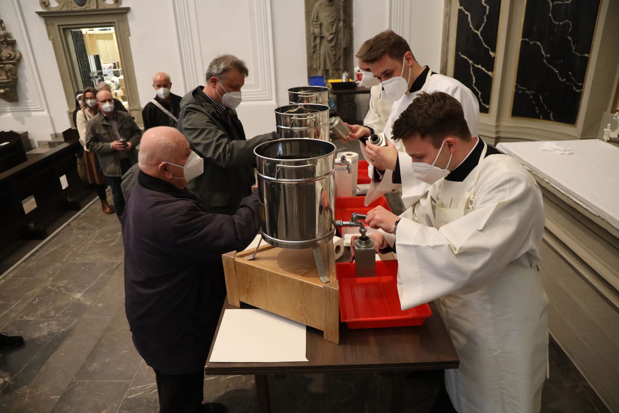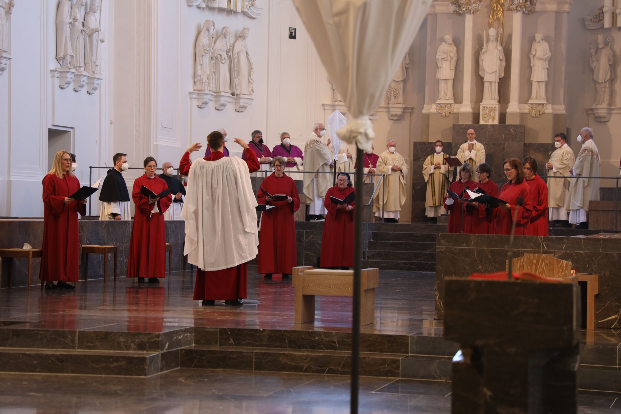 Die Frauenchoralschola „Vox anima“ sang unter der Leitung von Domkantor Alexander Rüth, Domorganist Professor Stefan Schmidt spielte die Orgel. Nach dem Gottesdienst erhielten Vertreter der 19 Dekanate und der Stadtpfarrei Schweinfurt die Öle, die in den folgenden Tagen in die Gemeinden der Diözese gebracht werden.