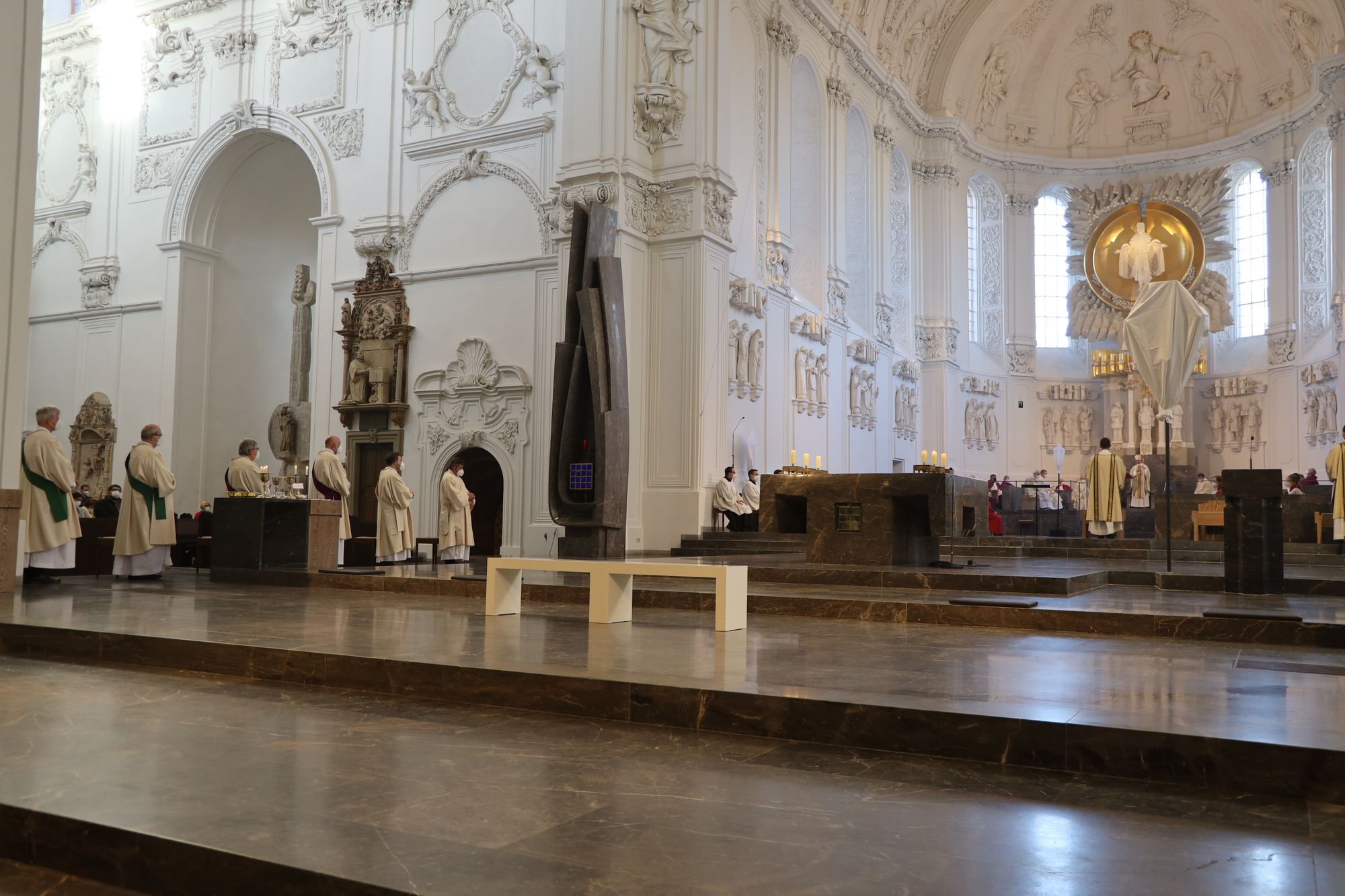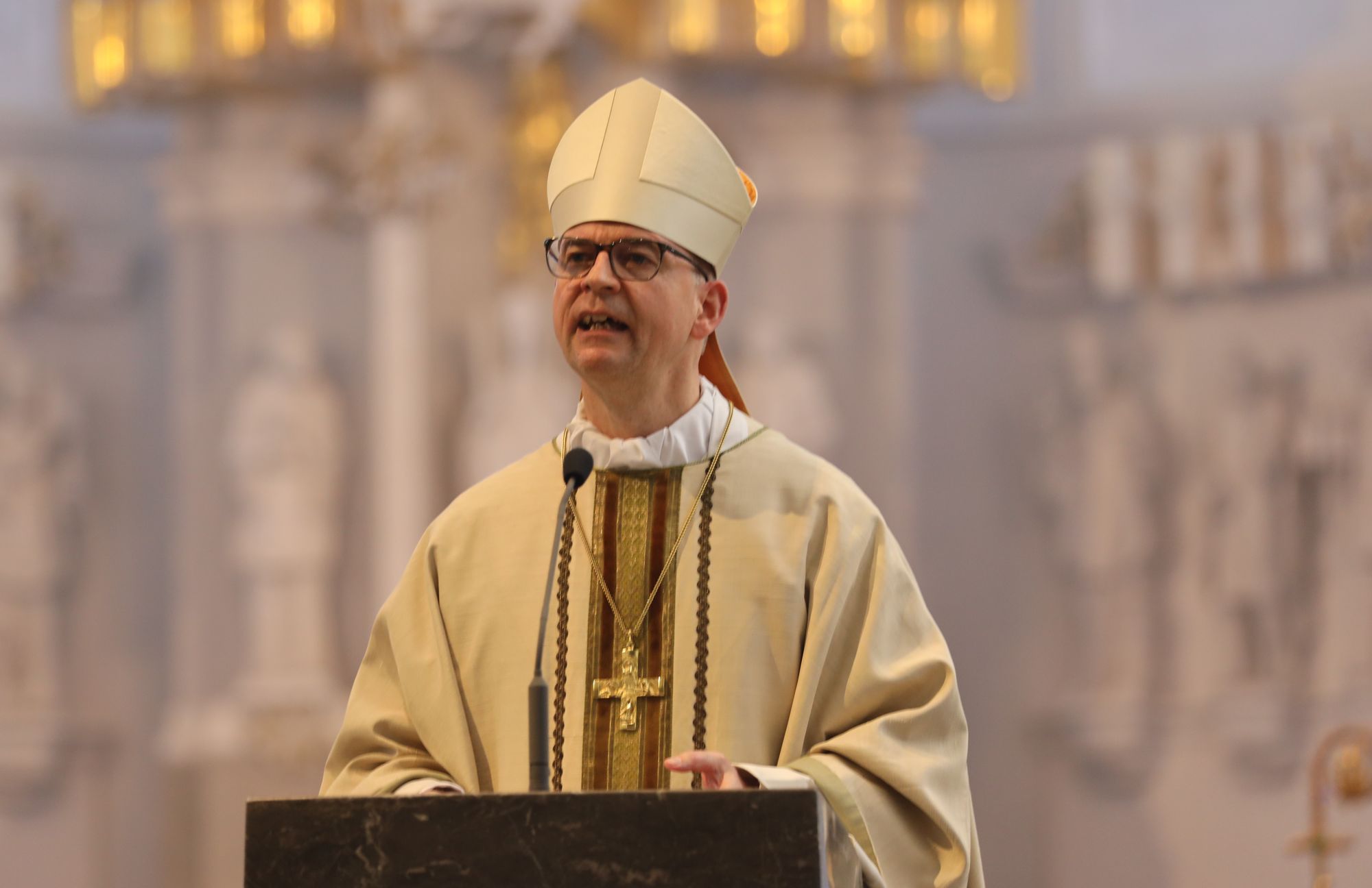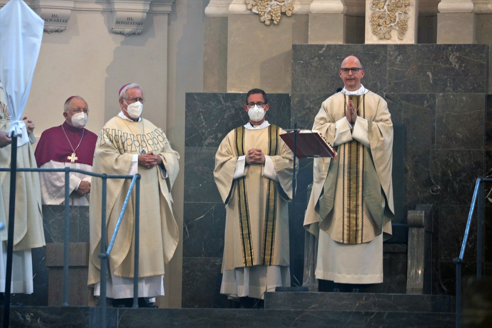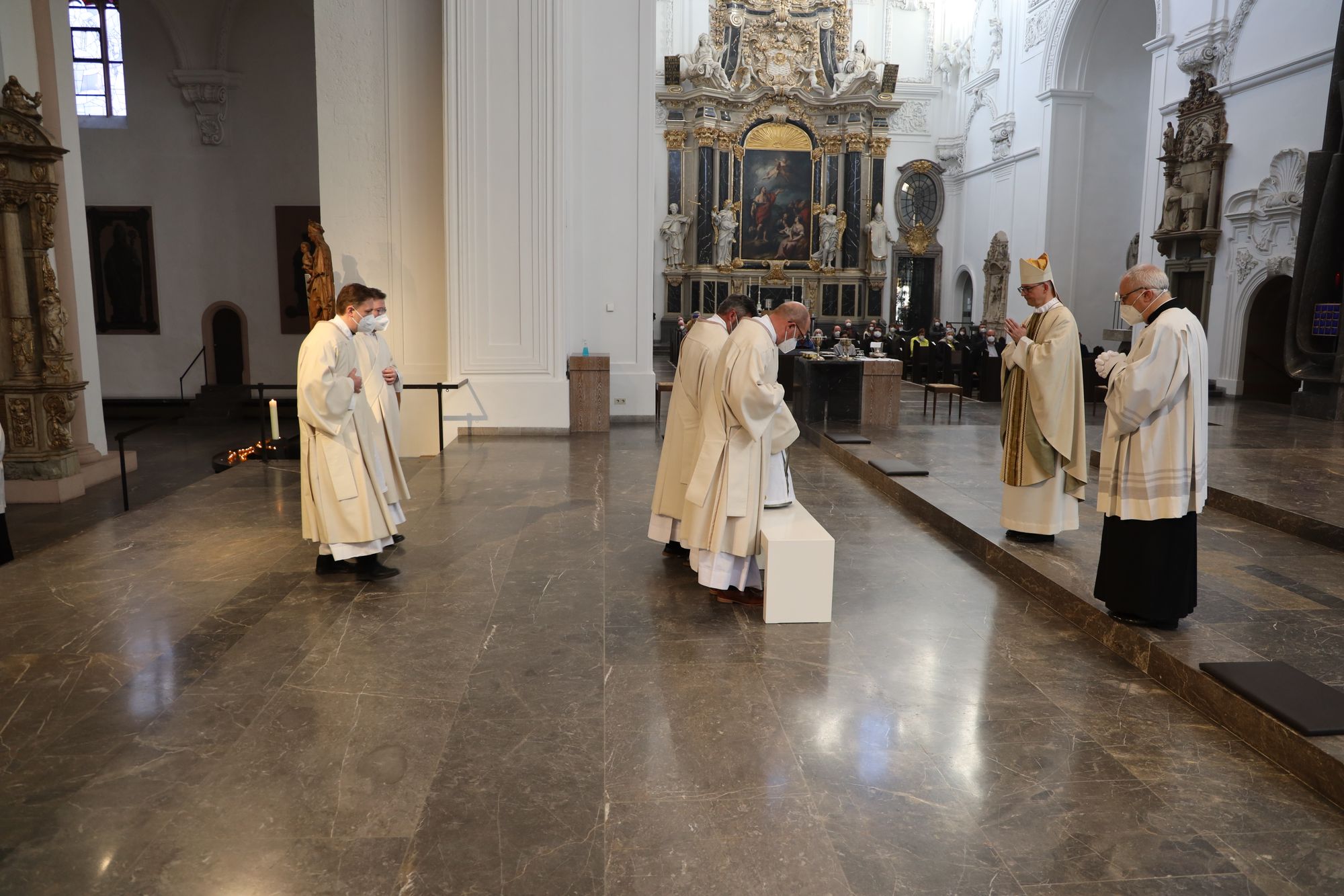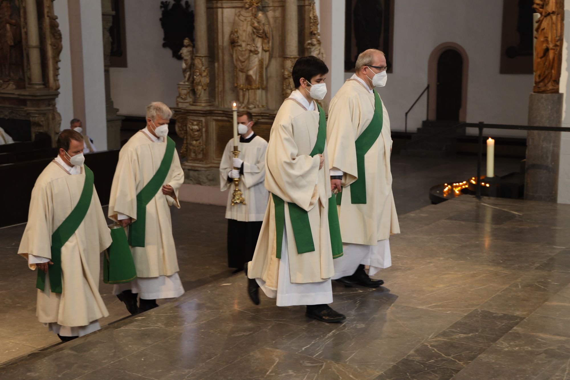In seiner Predigt blickte Bischof Jung auf das mitbrüderliche Zusammenleben und Zusammenwirken. Jedem werde durch die Leitung „in solidum“ in den Pastoralen Räumen viel abverlangt, wenn diese erfolgreich praktiziert werden solle. „Unsere Einheit gründet in dem Einen, in Jesus Christus, dem wahren und einzigen Hohepriester seiner Kirche, der im Heiligen Geist die irdische Kirche mit dem Leben des dreifaltigen Gottes verbindet“, erklärte der Bischof. Zentral sei, dass jeder auch die Einheit wolle. „Wenn man sie nicht will, wird man 100 Gründe finden, mit denen man sich der Verpflichtung zur Einheit entziehen kann.“ Ihm sei klar, dass angesichts geringer werdenden pastoralen Personals es kaum möglich sein werde, „nur ‚Dream-Teams‘ oder Wohlfühlteams“ in den Pastoralen Räumen zusammenzustellen. Nach den Worten des Bischofs sind die Hauptamtlichen – Priester, Diakone, Pastoral und Gemeindereferentinnen und -referenten – aufgerufen, als Teams das notwendige Bemühen um Einheit selbst vorzuleben. „Hier gilt der Grundsatz des Führens durch Vorbild.“ Gelinge es den Hauptamtlichen nicht, die Einheit zu praktizieren, würden auch die Gemeinden im Pastoralen Raum nicht zusammenwachsen oder überhaupt den Impuls wahrnehmen, enger zu kooperieren, sagte Bischof Jung.