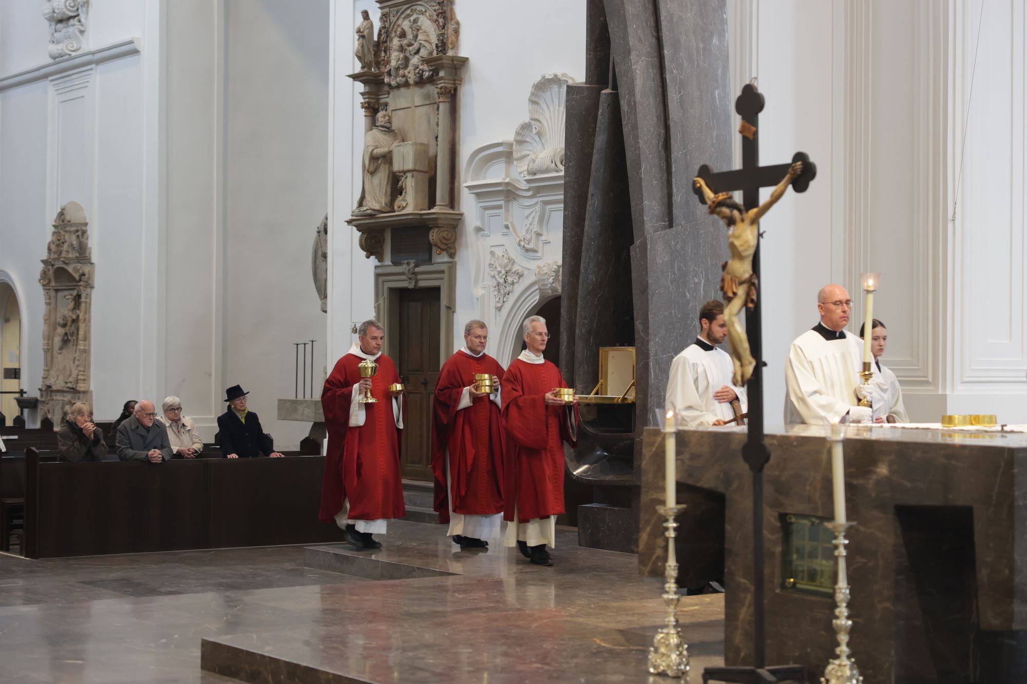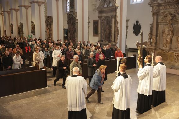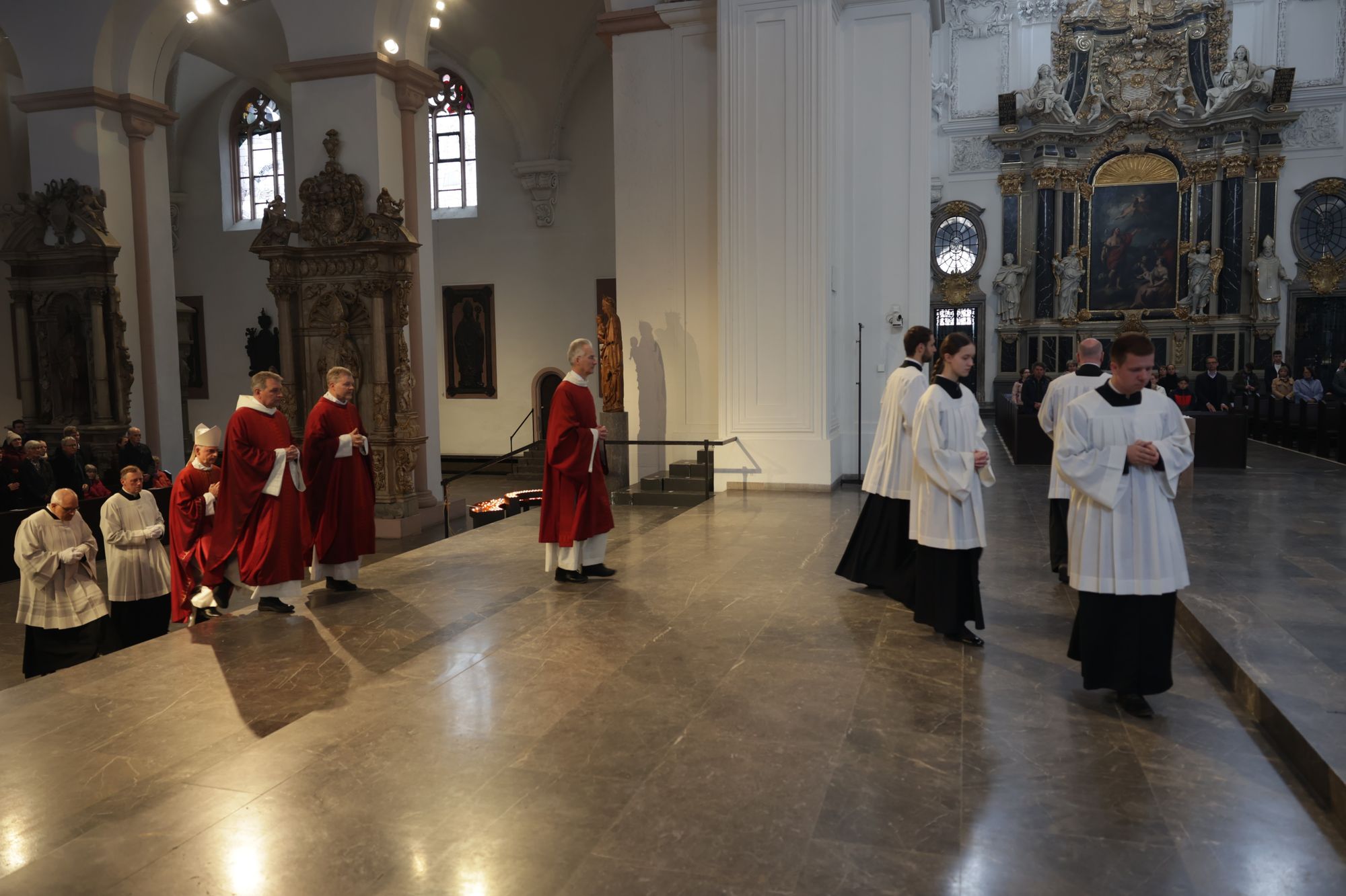 Am Abend zuvor hatte Bischof Jung die „Drei österlichen Tage vom Leiden und Sterben, von der Grabesruhe und der Auferstehung des Herrn“ mit der Feier vom Letzten Abendmahl im Kiliansdom eröffnet (siehe eigener Bericht).