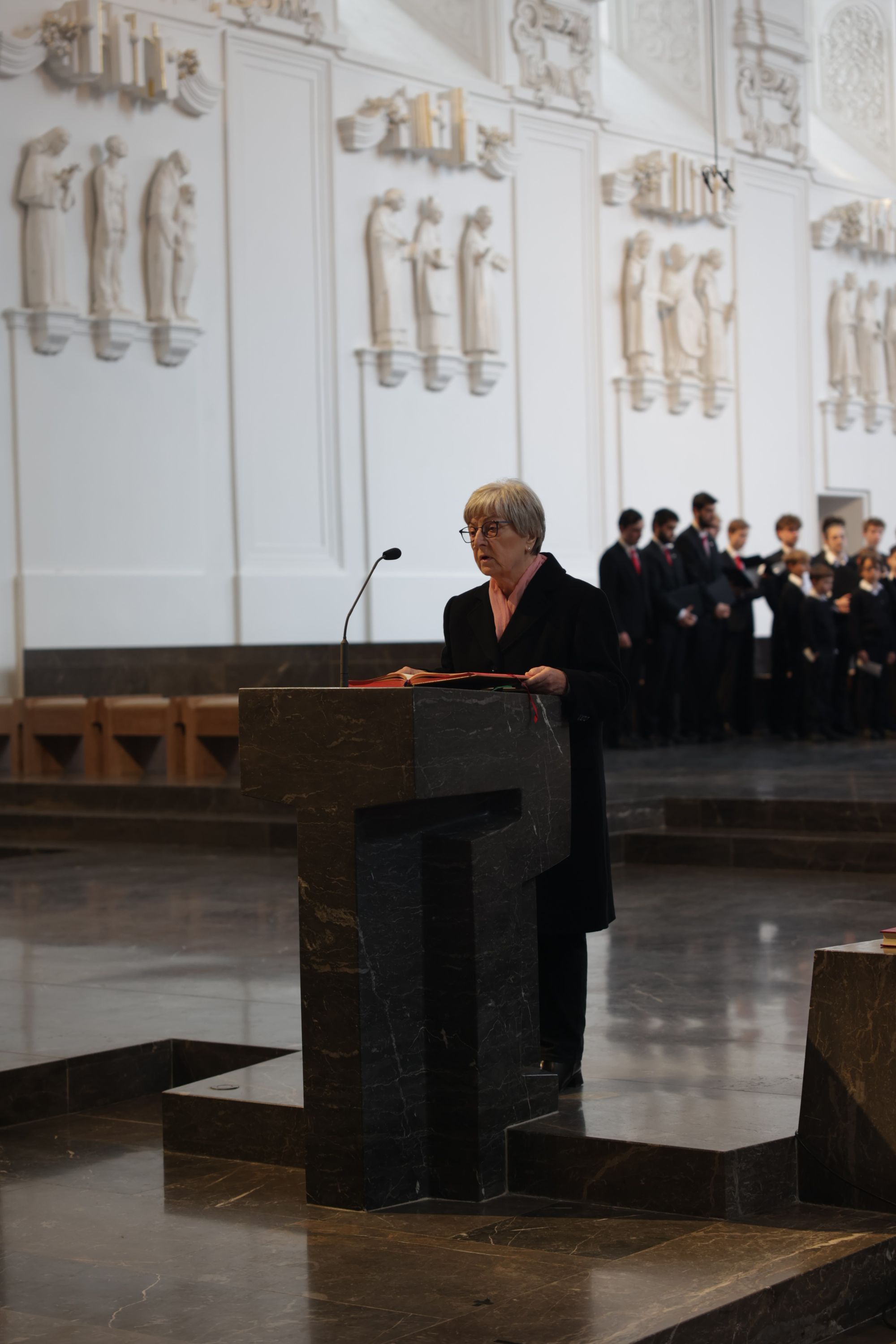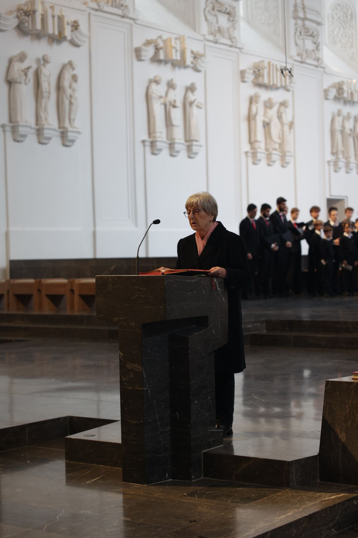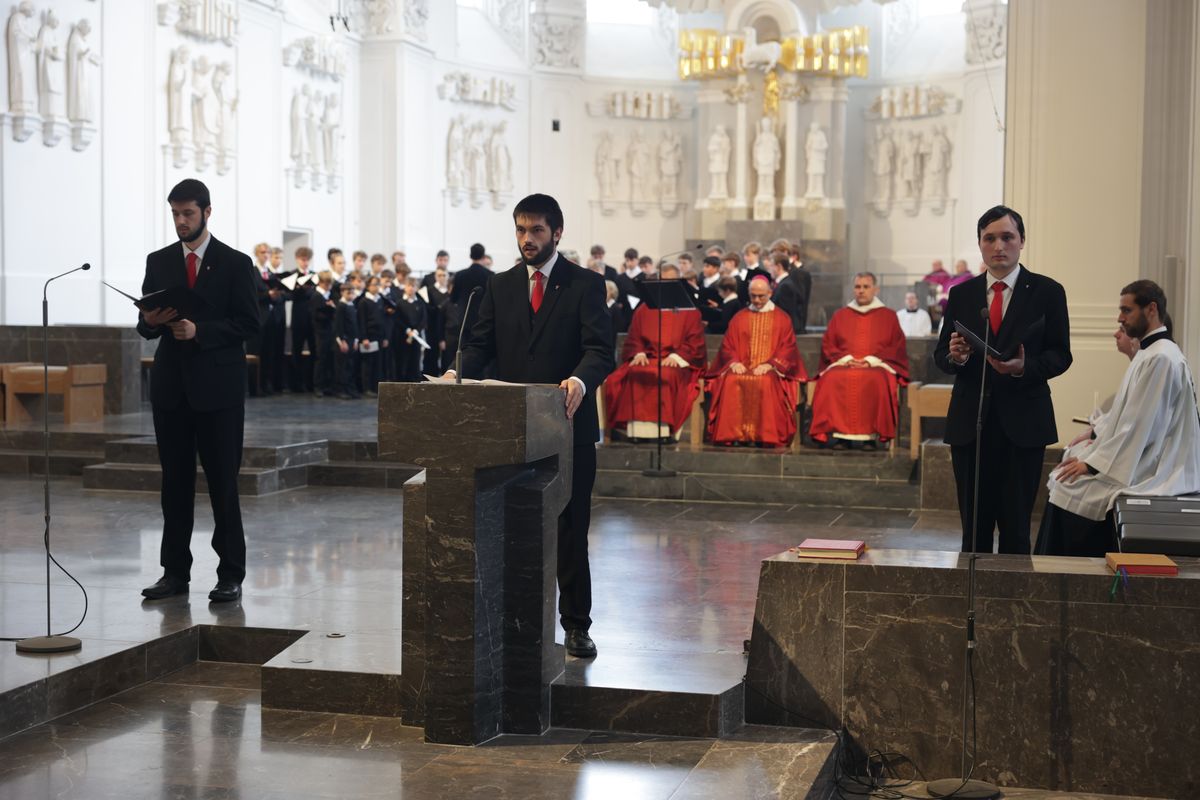 Bei den sogenannten Großen Fürbitten des Karfreitags beteten die Gläubigen für die heilige Kirche, für den Papst, für alle Stände der Kirche, für die Taufbewerber, für die Einheit der Christen, für die Juden, für alle Menschen, die nicht an Christus glauben, für alle Menschen, die nicht an Gott glauben, für die Regierenden und für alle Not leidenden Menschen. Zusätzlich wurde in diesem Jahr im Bistum Würzburg auch für die an Leib und Seele Missbrauchten gebetet. Bei der Kreuzverehrung wurde das Kreuz enthüllt, den Gläubigen gezeigt und in stillem Gebet verehrt. Die Würzburger Domsingknaben unter der Leitung von Domkantor Julian Beutmiller sangen die „Johannespassion, op. 18“ von Alois Maria Müller, „Eli, Eli!“ von Georgius Bárdos, „O crux ave“ von Rihards Dubra, „Popule meus“ von Tomás Luis de Victoria und „Also hat Gott die Welt geliebt“ von Heinrich Schütz.