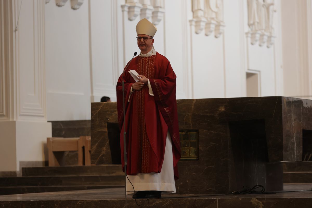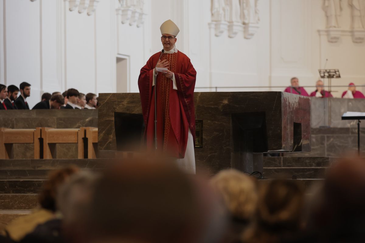 In seiner Predigt erinnerte Bischof Jung wie bereits am Gründonnerstag an die Enzyklika „Dilexit nos – Er hat uns geliebt“ von Papst Franziskus. Darin moniere der Papst: „Es fehlt das Herz.“ Diese Herzlosigkeit werde am Karfreitag in der Passion auf beklemmende Weise vor Augen geführt. Judas verzocke sich bei seinen Machtspielen. Herzlos seien die Jünger, die ihren Herrn und Meister im Stich lassen und sogar noch verleugnen. Die Folterknechte hätten Freude am Quälen. Herzlosigkeit attestierte Bischof Jung auch Pontius Pilatus. Diesem seien die ewigen Querelen und Religionsfragen nur lästig, und er frage daher nicht, was Wahrheit sei. Hoffnungszeichen seien Menschen mit Herz wie Maria und Jesu Lieblingsjünger Johannes. Sie hätten keine Furcht vor der Menge und harrten aus, auch wenn es ihnen das Herz zerreiße angesichts der eigenen Hilflosigkeit und Ohnmacht, mit der sie dem Leiden des geliebten Menschen gegenüberstünden. Das von der Lanze geöffnete Herz Jesu werde zur Quelle des Heils für die Kirche, ja für die ganze Welt.