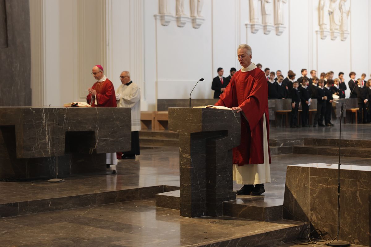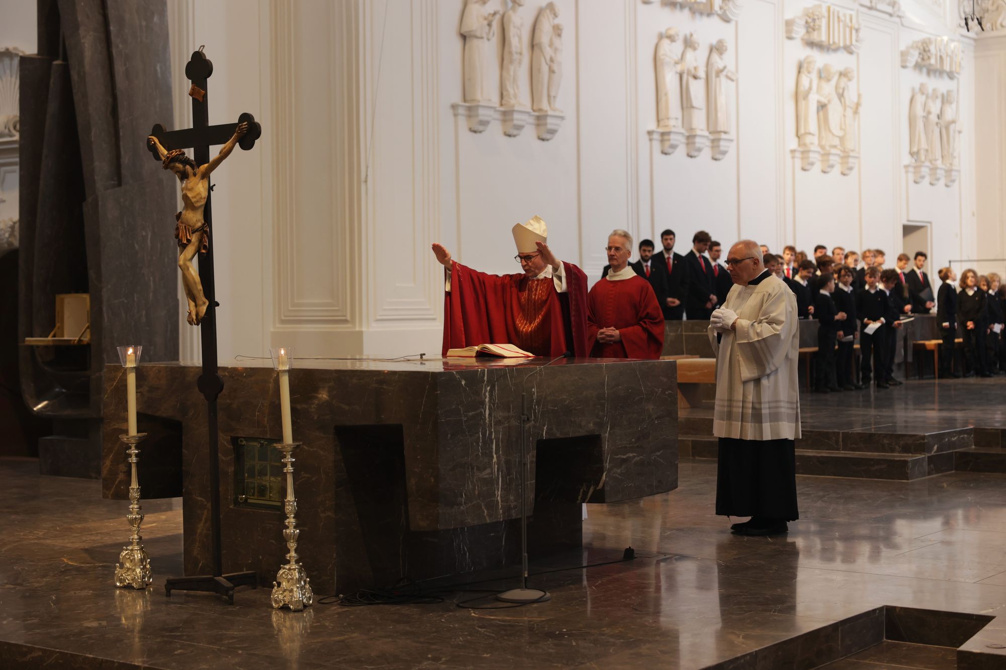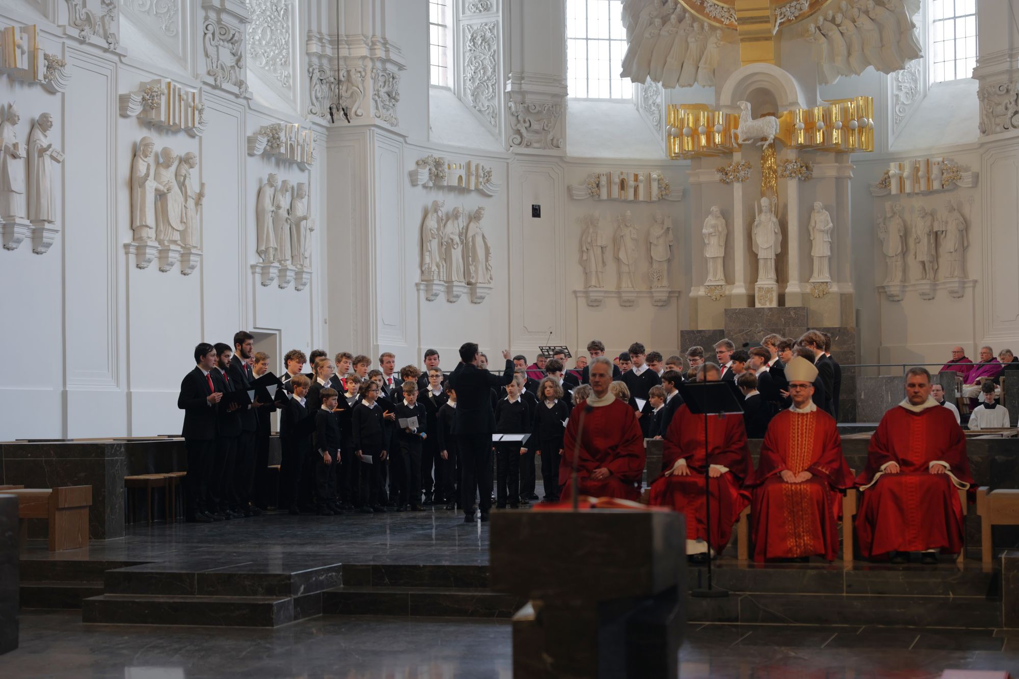 Höhepunkt der Feier der drei österlichen Tage und des gesamten Kirchenjahrs ist die Osternacht. Bischof Jung feiert sie am Samstag, 19. April, um 21.30 Uhr im Dom. Die Osterkerze wird am Osterfeuer im Innenhof des Domkreuzgangs entzündet. Danach singt ein Diakon das sogenannte Exsultet, das Lob auf die Osterkerze. Bei den Lesungen wird an die Heilstaten Gottes seit Erschaffung der Welt erinnert. Im Zentrum der alttestamentlichen Texte steht der Durchzug durch das Rote Meer. Beim Gloria erklingen wieder die Glocken, und Orgelmusik setzt ein. Die neutestamentliche Lesung aus dem Römerbrief weist auf das neue Leben der Getauften durch die Auferstehung Jesu hin. Im Evangelium mit dem Halleluja-Ruf wird die Botschaft vom leeren Grab verkündet – in diesem Jahr, wie sie der Evangelist Lukas berichtet. Tauf- und Eucharistiefeier sind weitere Teile dieser Nachtfeier, der „Mutter aller Vigilien“. Die Mädchenkantorei am Würzburger Dom unter der Leitung von Domkapellmeister Alexander Rüth gestaltet die Feier mit „Antwortgesängen zur Osternacht“ von Alexander Rüth und Otmar Faulstich, „Surrexit pastor bonus“ von Felix Mendelssohn Bartholdy, „O filii et filiae“ (Oratorium Christus) von Franz Liszt, „Messe pour deux voix égales“ von Cecile Chaminade und „Incantation pour un jour saint“ (Lumen Christi) von Jean Langlais. Domorganist Professor Stefan Schmidt spielt die Klais-Orgel.
