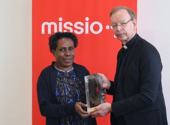 missio-Präsident Monsignore Wolfgang Huber übergab den diesjährigen Pauline-Jaricot-Preis an die Umweltaktivistin Rosa Koian.