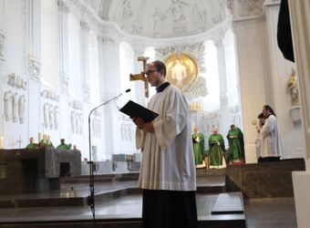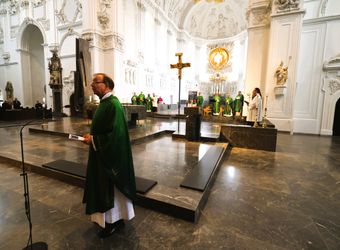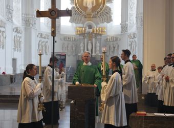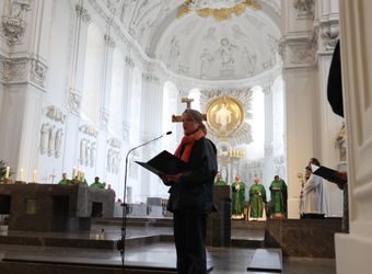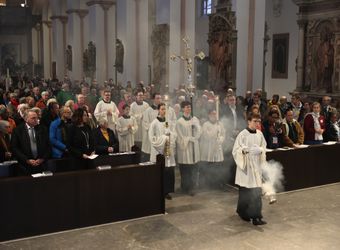 Den Gottesdienst im Dom gestalteten neben dem Domorganist Professor Stefan Schmidt ein Vokalensemble der Dommusik sowie die Camerata Würzburg unter der Leitung von Domkapellmeister Alexander Rüth unter anderem mit Joseph Haydns "Missa brevis Sancti Joannis de Deo".