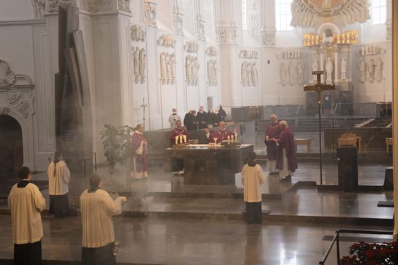 Würzburg (POW) Als „kirchliches Multitalent“ mit breit gefächertem haupt- und ehrenamtlichem Engagement hat Generalvikar Dr. Jürgen Vorndran Karl-Peter Büttner gewürdigt. In Vertretung für Bischof Dr. Franz Jung feierte er gemeinsam mit Krankenhauspfarrer Bernhard Stühler, der Büttner auf dem letzten Weg im Würzburger Juliusspital begleitete, am Mittwoch, 10. Februar, ein Requiem für den am 21. Januar verstorbenen früheren Diözesanratsvorsitzenden und Leiter des Bereichs Medien der Diözese Würzburg. An dem Gottesdienst unter den Corona-Schutzvorgaben nahmen im Kiliansdom neben Büttners Familie zahlreiche Mitglieder des Diözesanrats, Mitarbeiter des Bischöflichen Ordinariats und viele Mitglieder des Domkapitels teil.