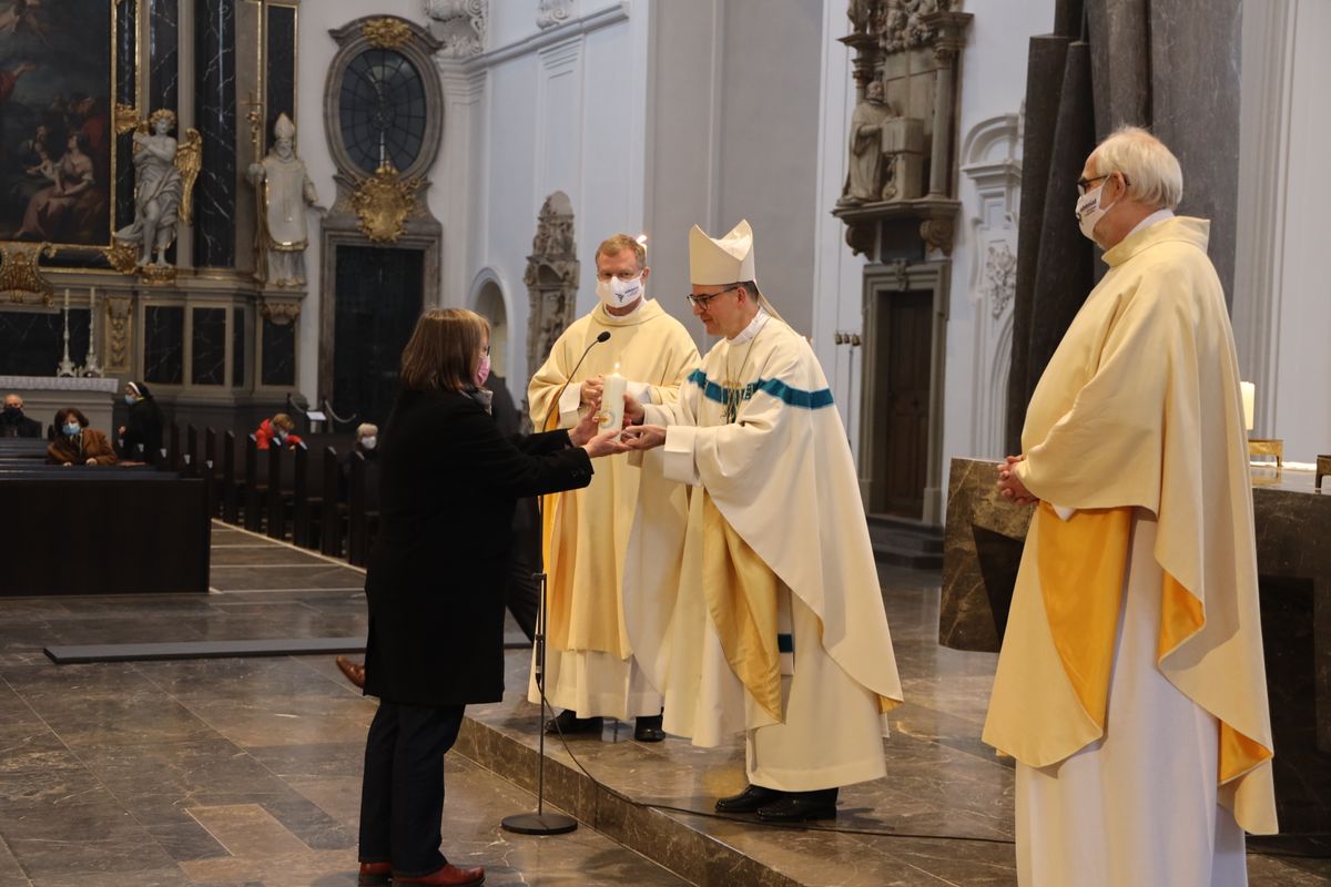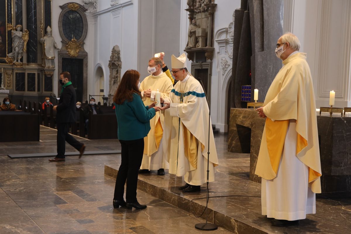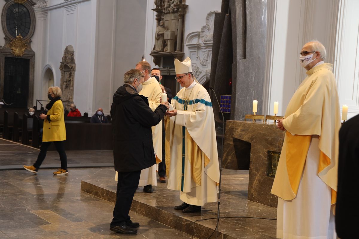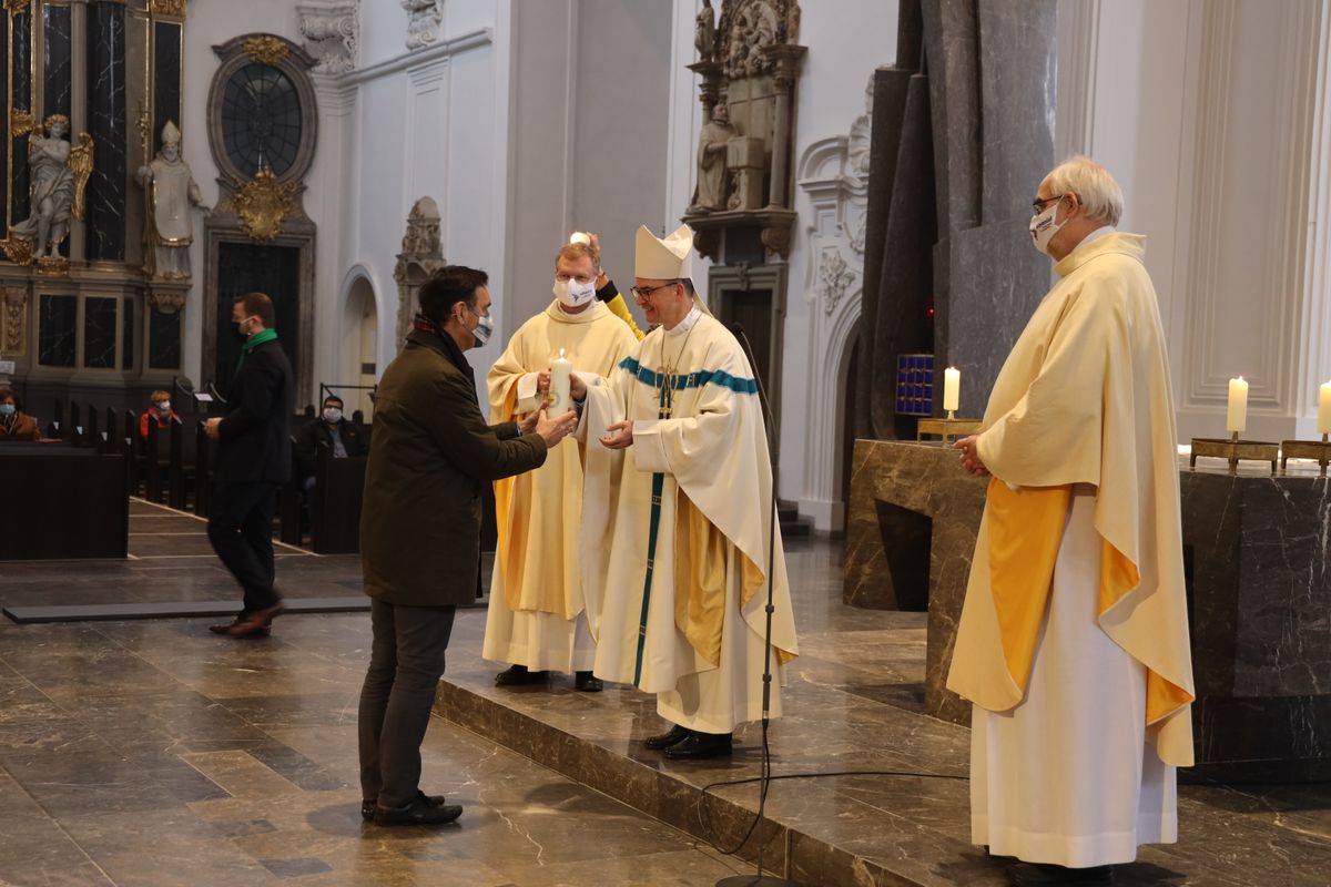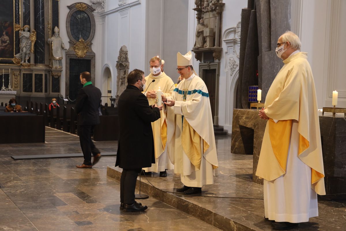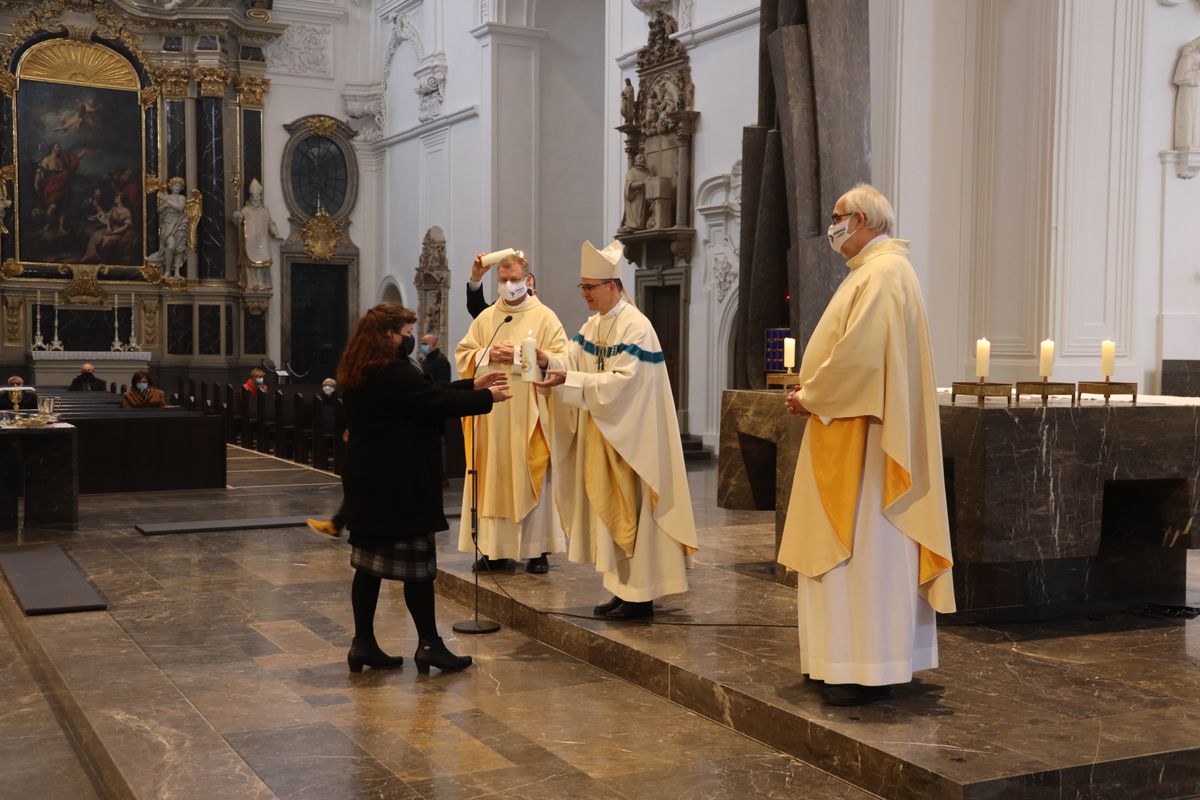 Bischof Dr. Franz Jung hat bei einem Pontifikalgottesdienst am 8. Dezember 2020 im Kiliansdom die Steuerungsgruppen in die 40 Pastoralen Räume des Bistums Würzburg ausgesandt. Als Symbol gab es jeweils eine brennende Kerze mit auf den Weg.