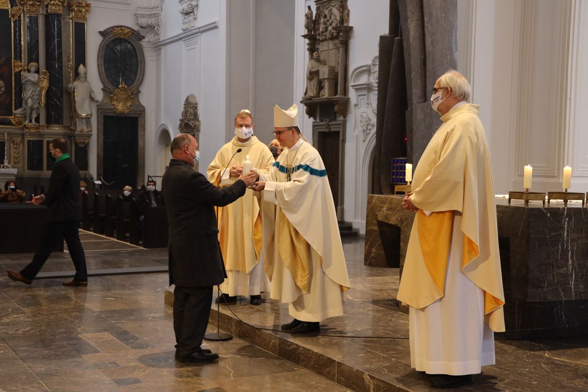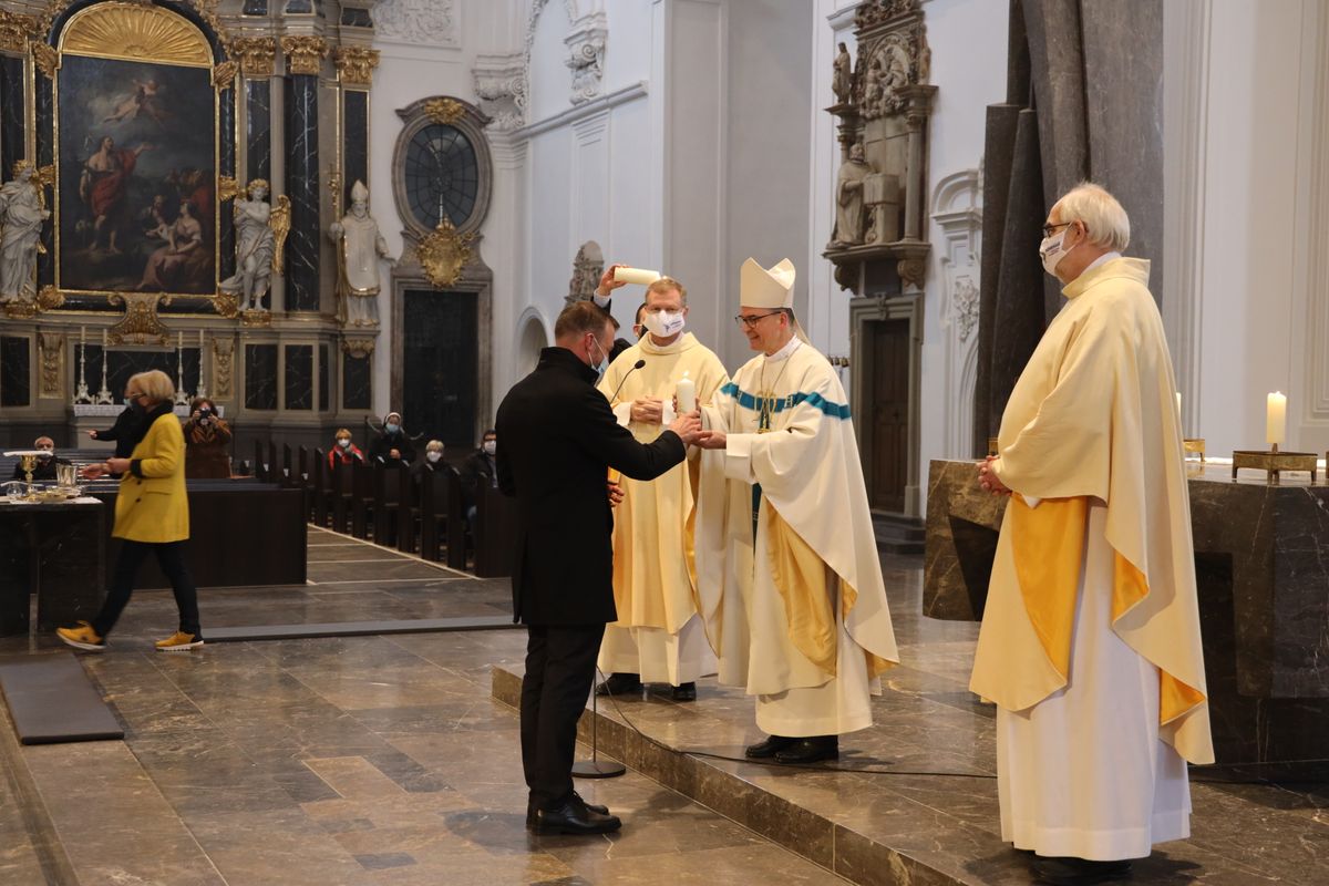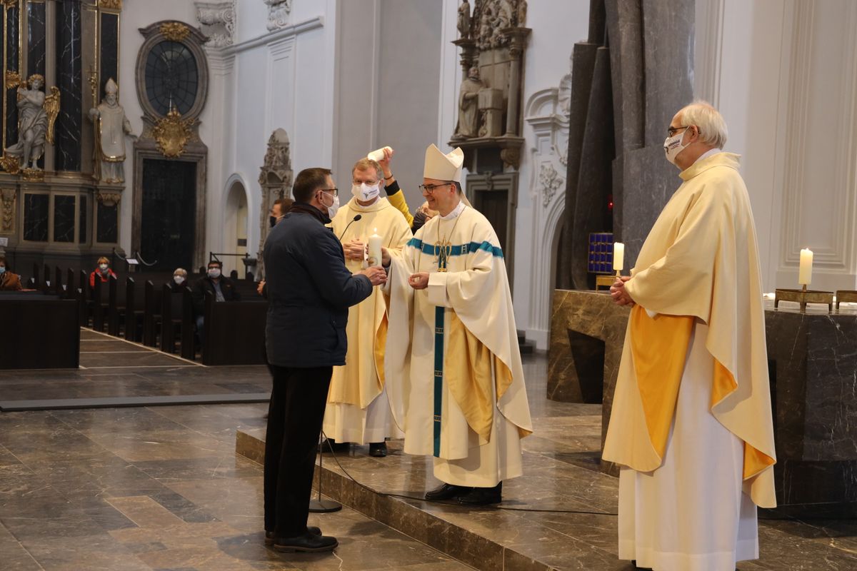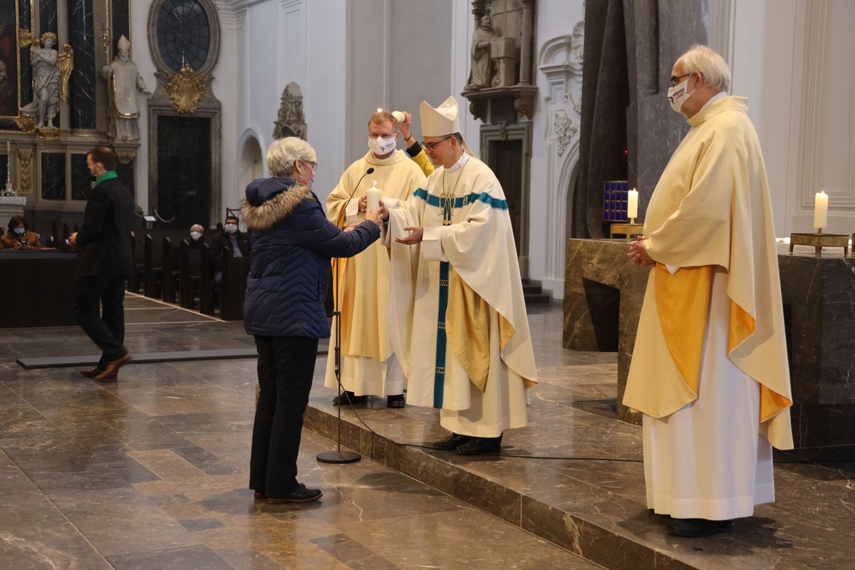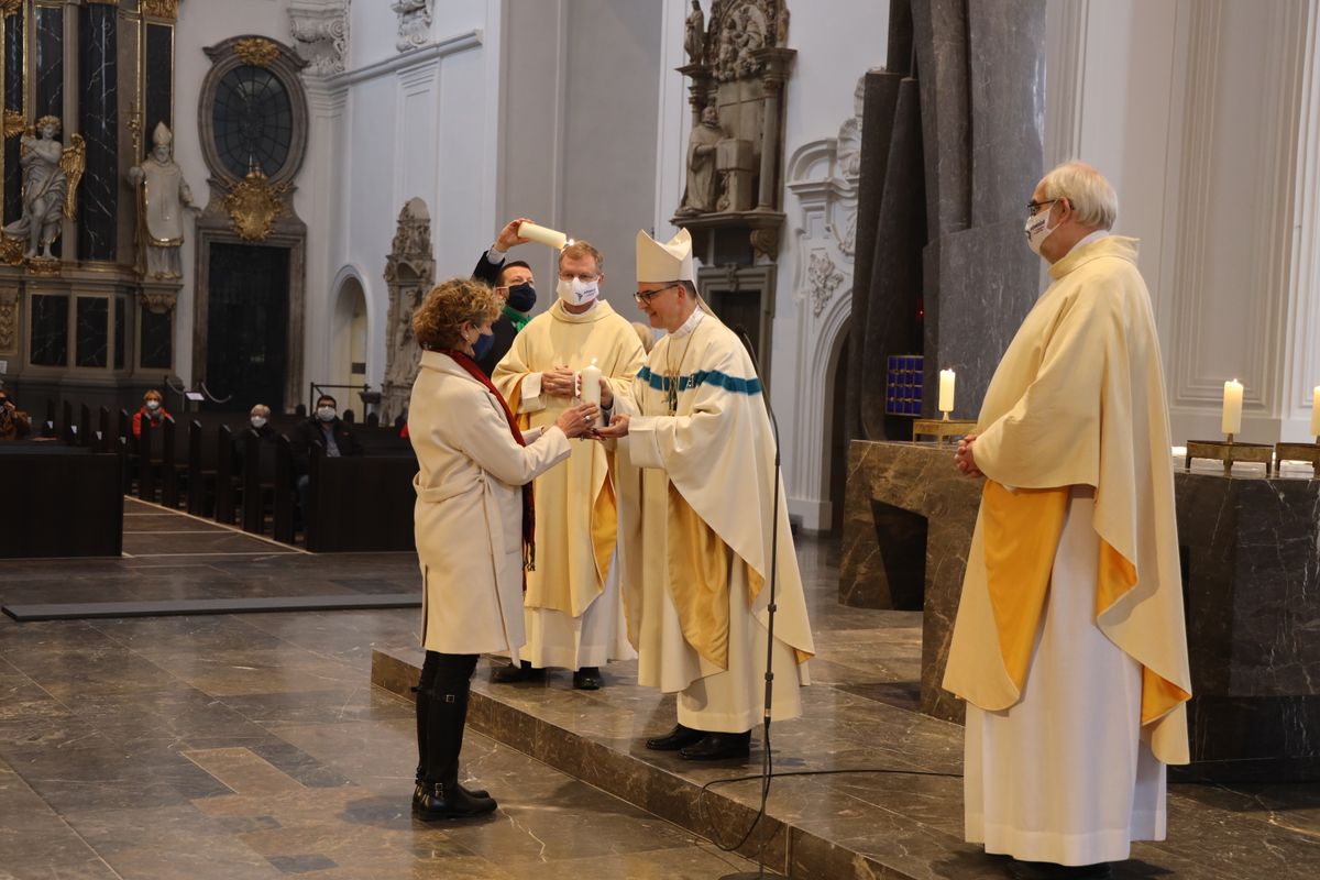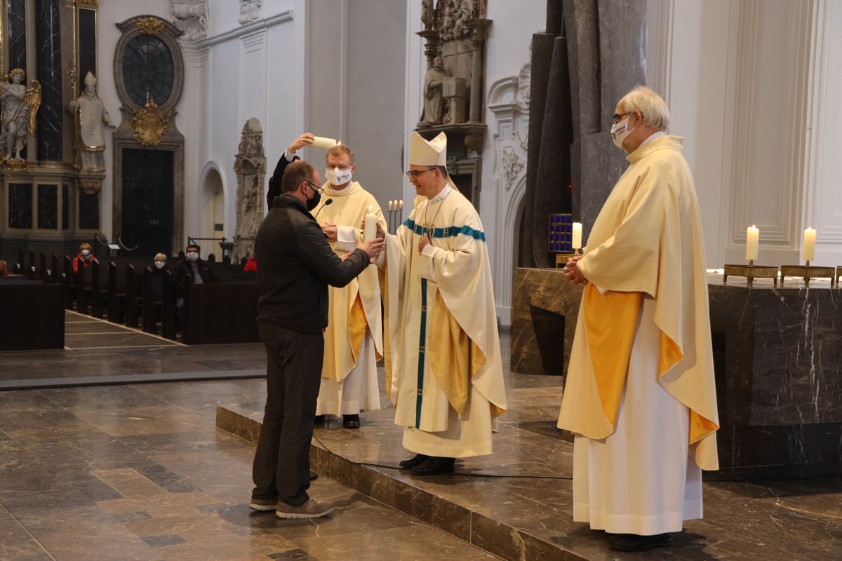 Bischof Dr. Franz Jung hat bei einem Pontifikalgottesdienst am 8. Dezember 2020 im Kiliansdom die Steuerungsgruppen in die 40 Pastoralen Räume des Bistums Würzburg ausgesandt. Als Symbol gab es jeweils eine brennende Kerze mit auf den Weg.