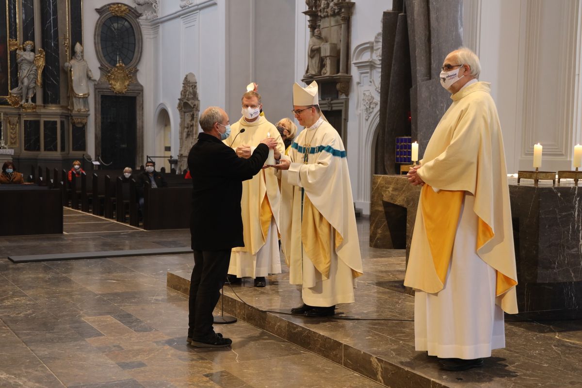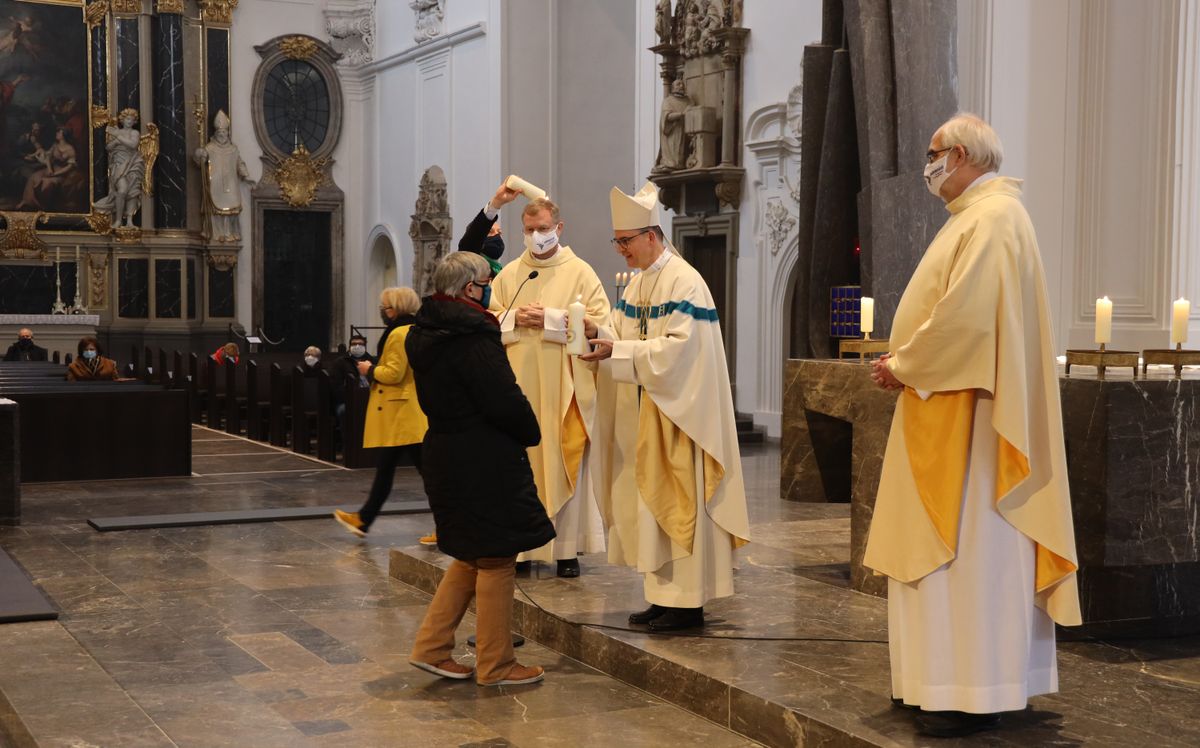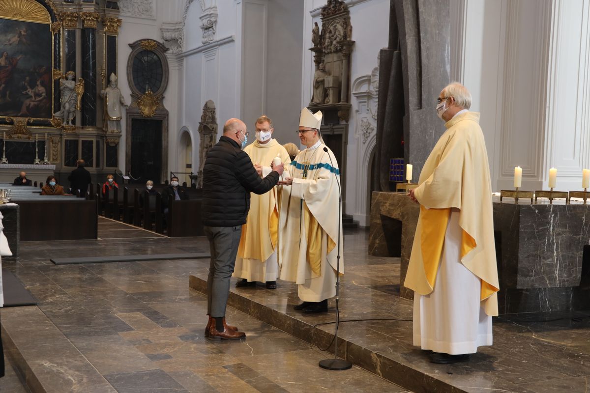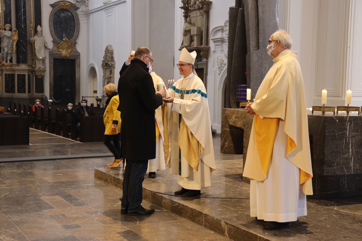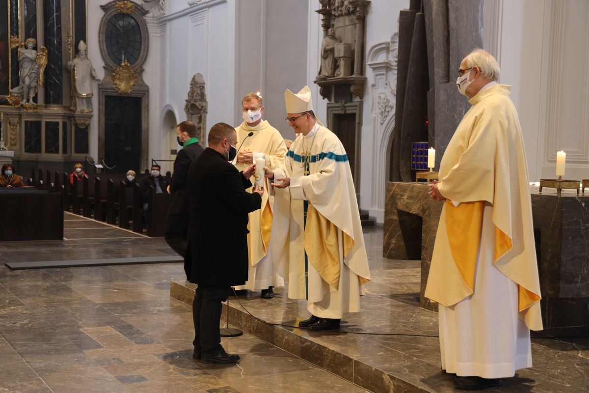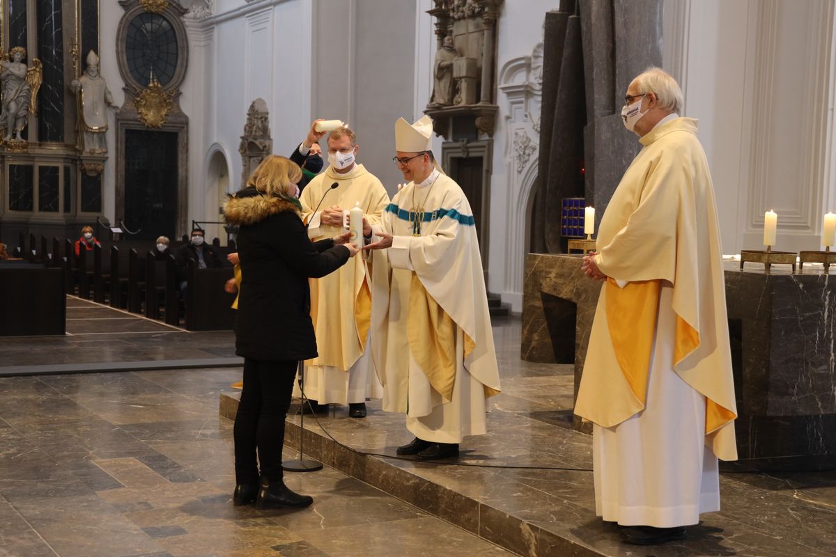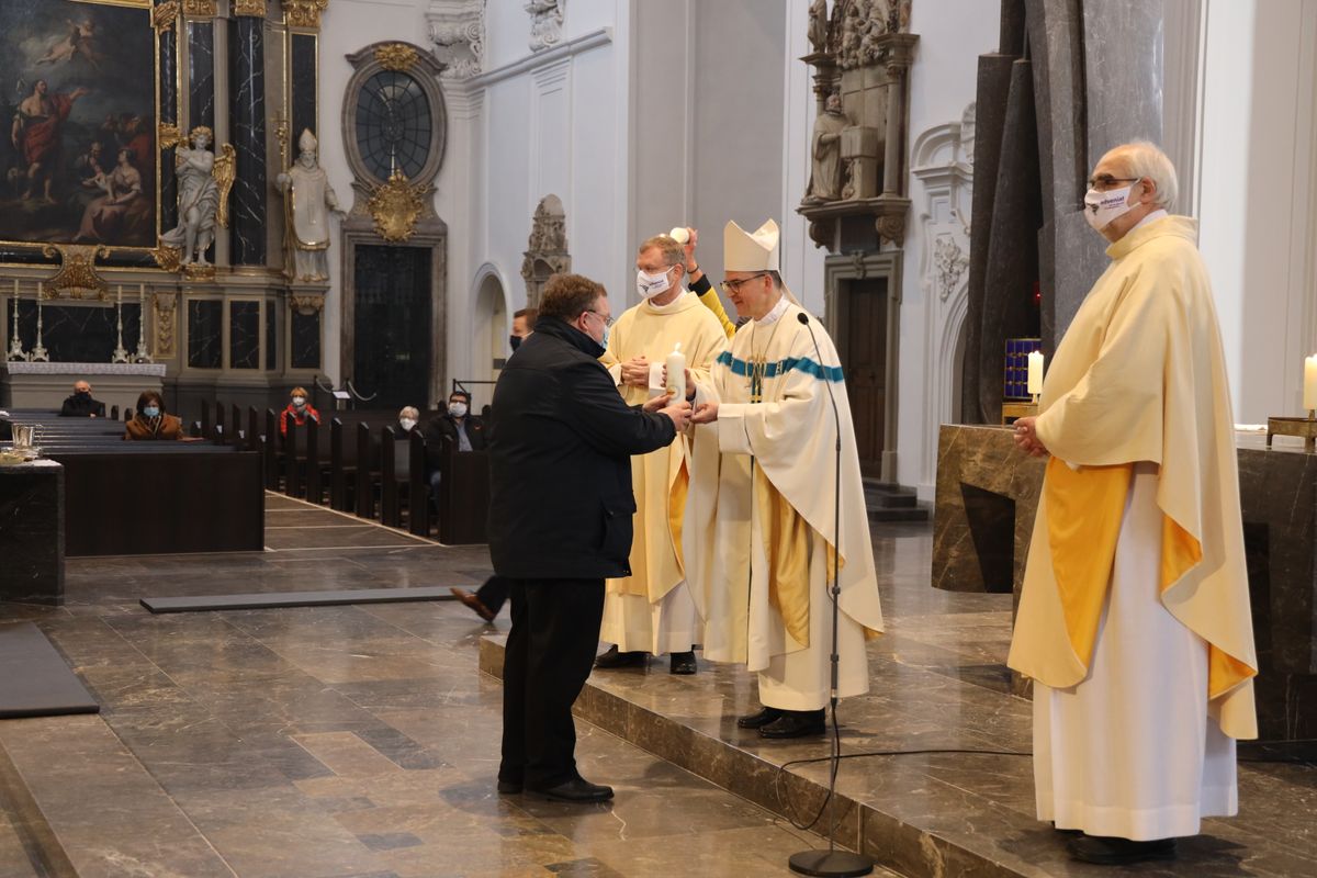 Bischof Dr. Franz Jung hat bei einem Pontifikalgottesdienst am 8. Dezember 2020 im Kiliansdom die Steuerungsgruppen in die 40 Pastoralen Räume des Bistums Würzburg ausgesandt. Als Symbol gab es jeweils eine brennende Kerze mit auf den Weg.