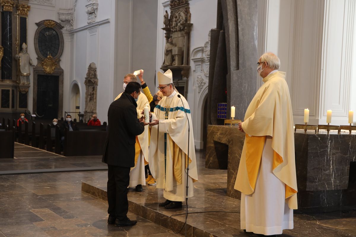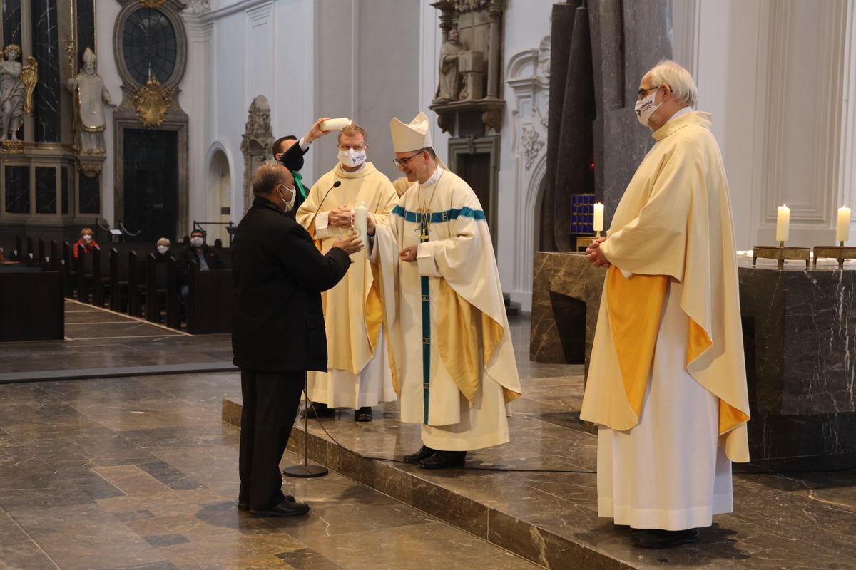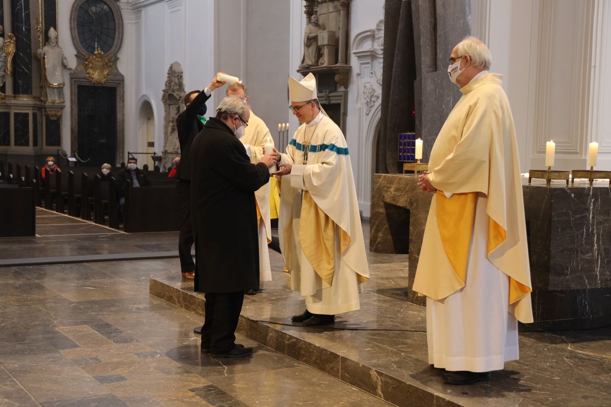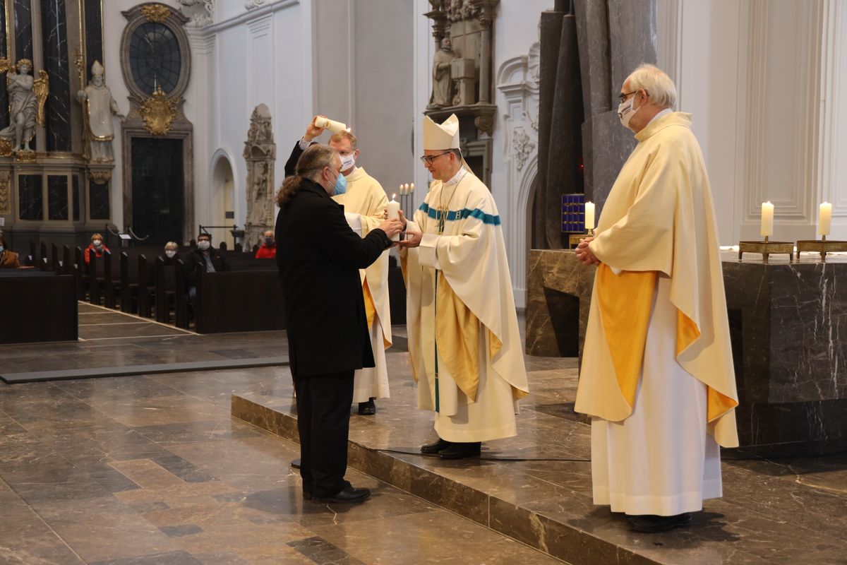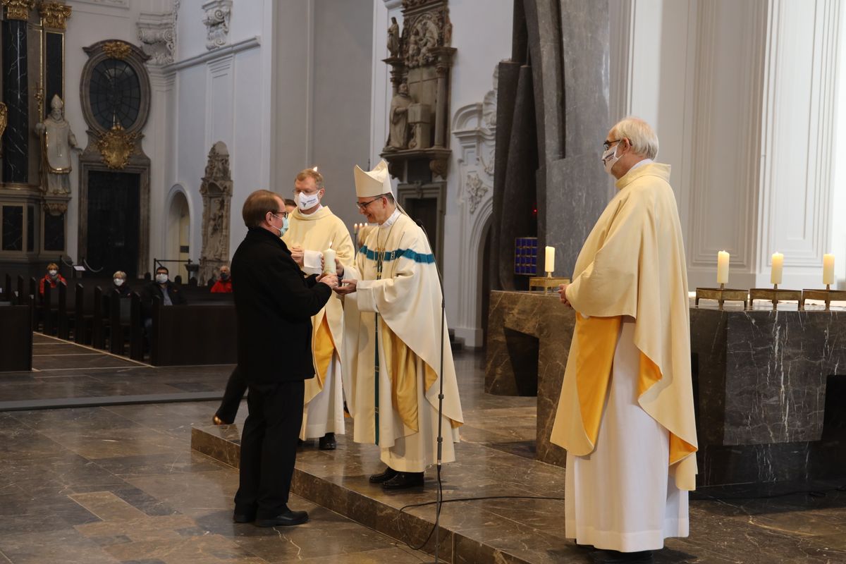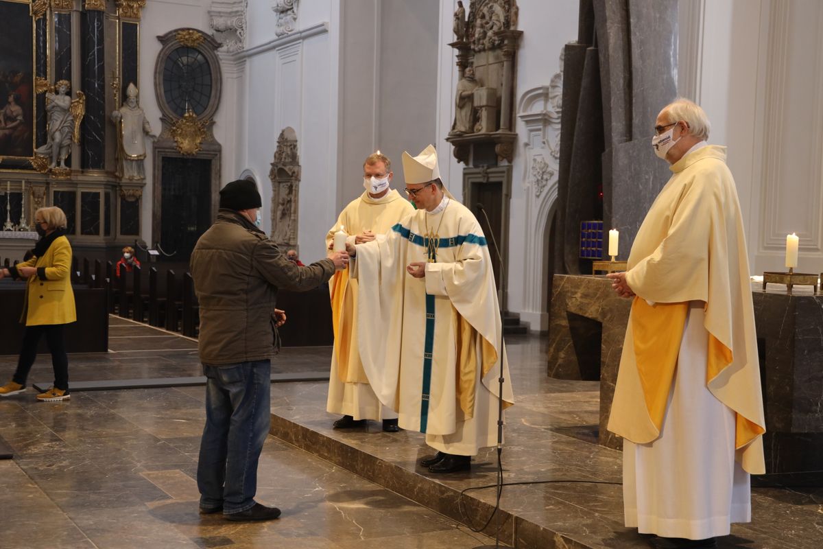 Bischof Dr. Franz Jung hat bei einem Pontifikalgottesdienst am 8. Dezember 2020 im Kiliansdom die Steuerungsgruppen in die 40 Pastoralen Räume des Bistums Würzburg ausgesandt. Als Symbol gab es jeweils eine brennende Kerze mit auf den Weg.