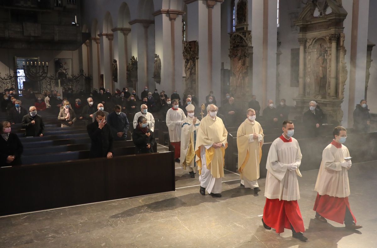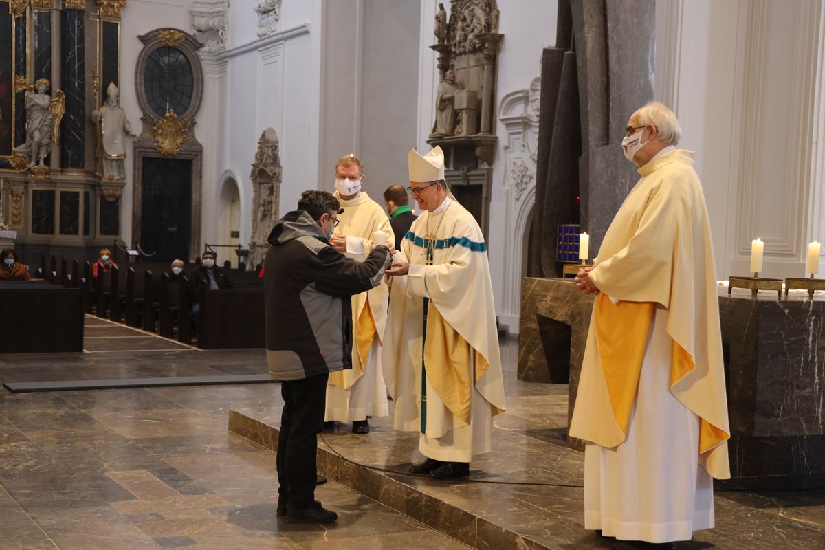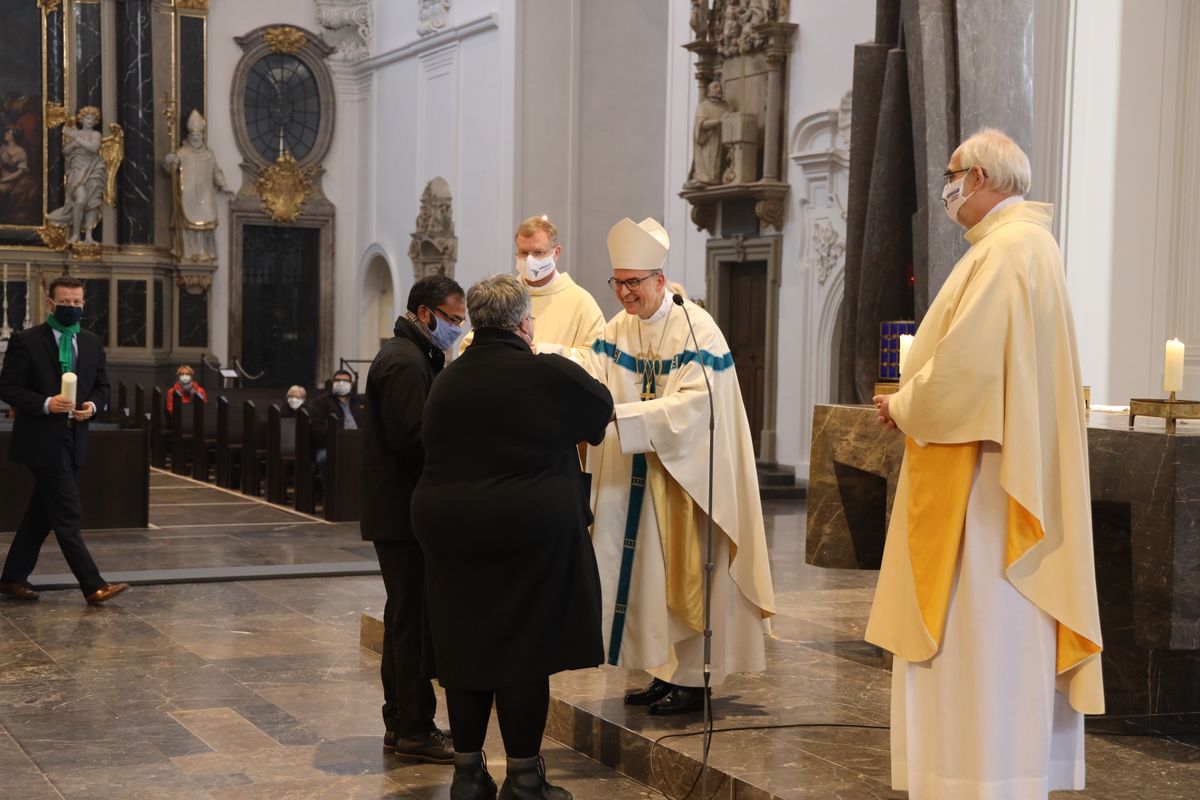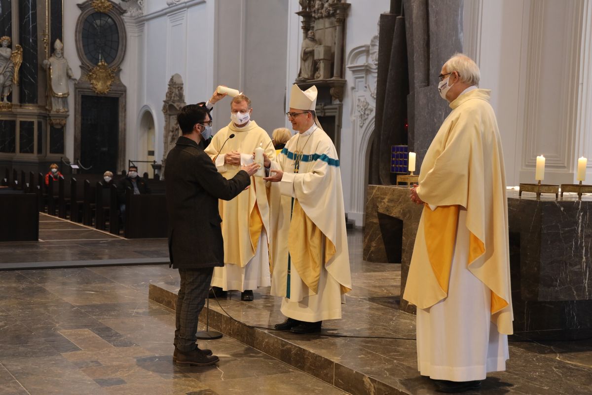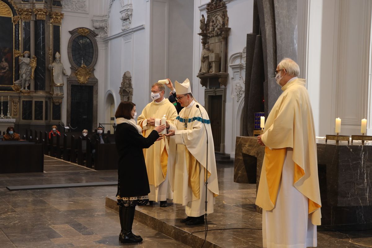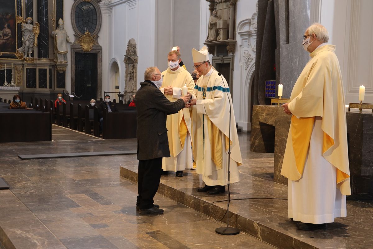Bischof Dr. Franz Jung hat bei einem Pontifikalgottesdienst am 8. Dezember 2020 im Kiliansdom die Steuerungsgruppen in die 40 Pastoralen Räume des Bistums Würzburg ausgesandt. Als Symbol gab es jeweils eine brennende Kerze mit auf den Weg.