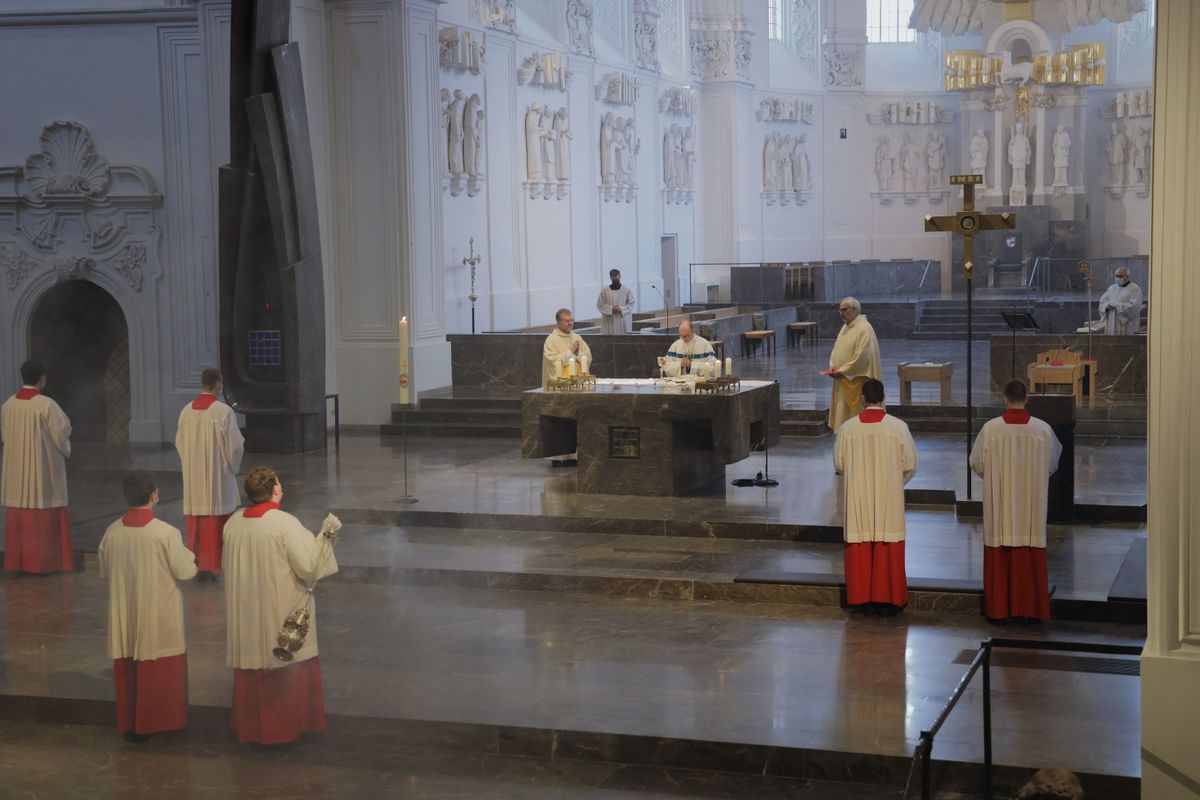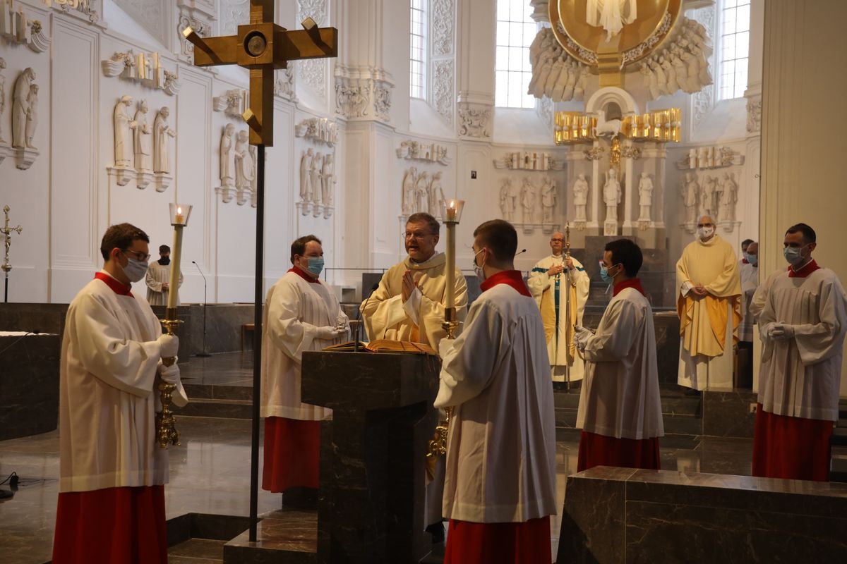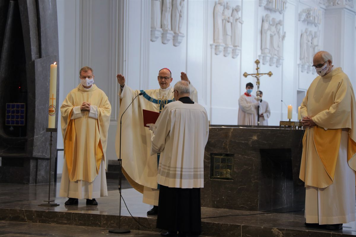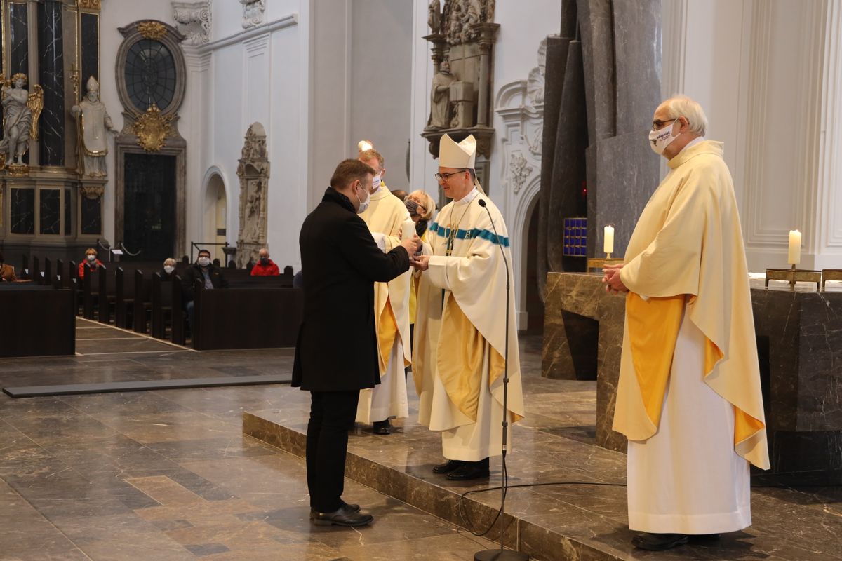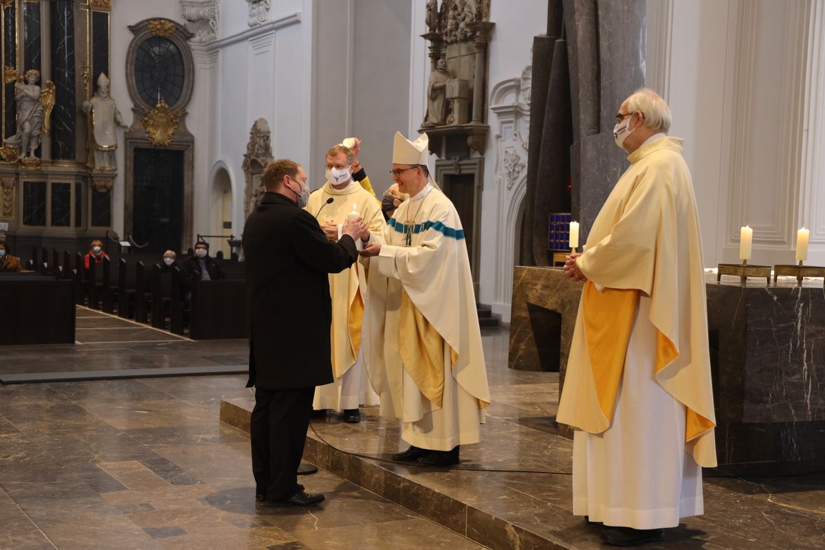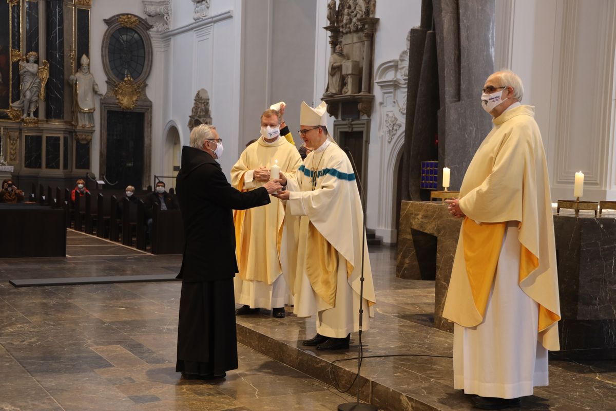 Bischof Dr. Franz Jung hat bei einem Pontifikalgottesdienst am 8. Dezember 2020 im Kiliansdom die Steuerungsgruppen in die 40 Pastoralen Räume des Bistums Würzburg ausgesandt. Als Symbol gab es jeweils eine brennende Kerze mit auf den Weg.