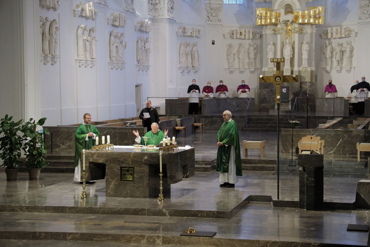 Würzburg (POW) Bei einem Mitarbeitergottesdienst im Würzburger Kiliansdom ist am Donnerstag, 14. Januar, Weihbischof Ulrich Boom als Leiter der Hauptabteilung Seelsorge verabschiedet worden. „Ulrich Boom versteht sich als Pilger, als ein Mensch, der nie stehen bleibt, um stets vorwärtszukommen auf dem Weg zu Gott“, attestierte ihm Generalvikar Dr. Jürgen Vorndran.