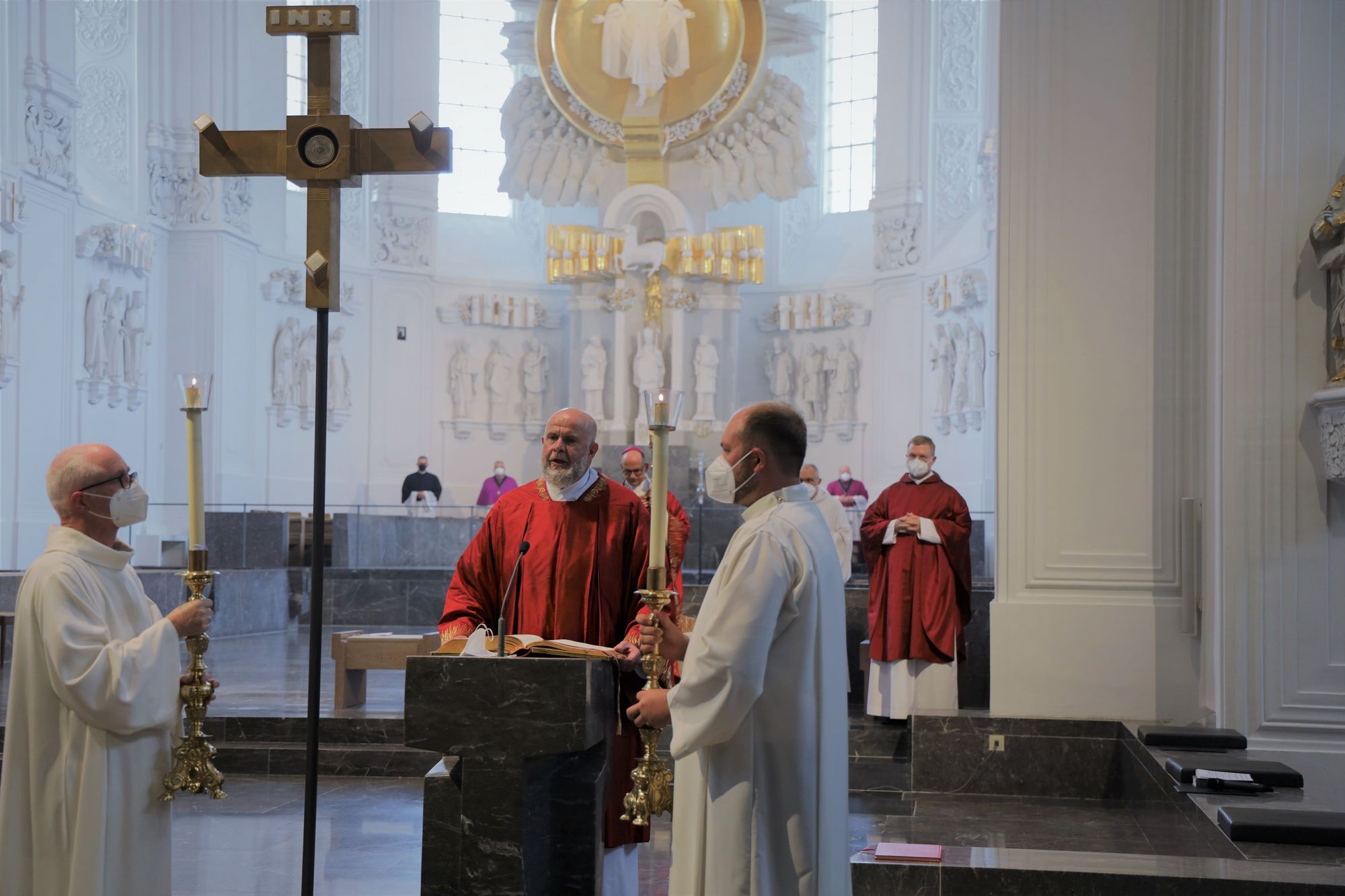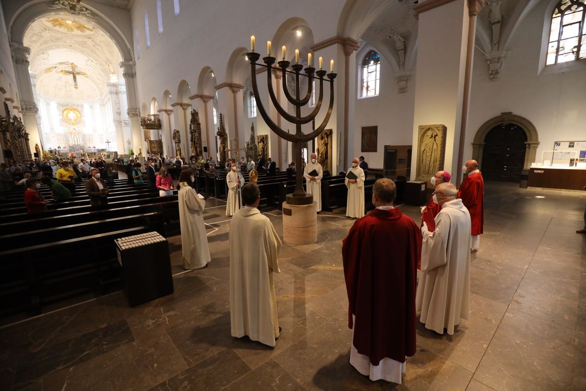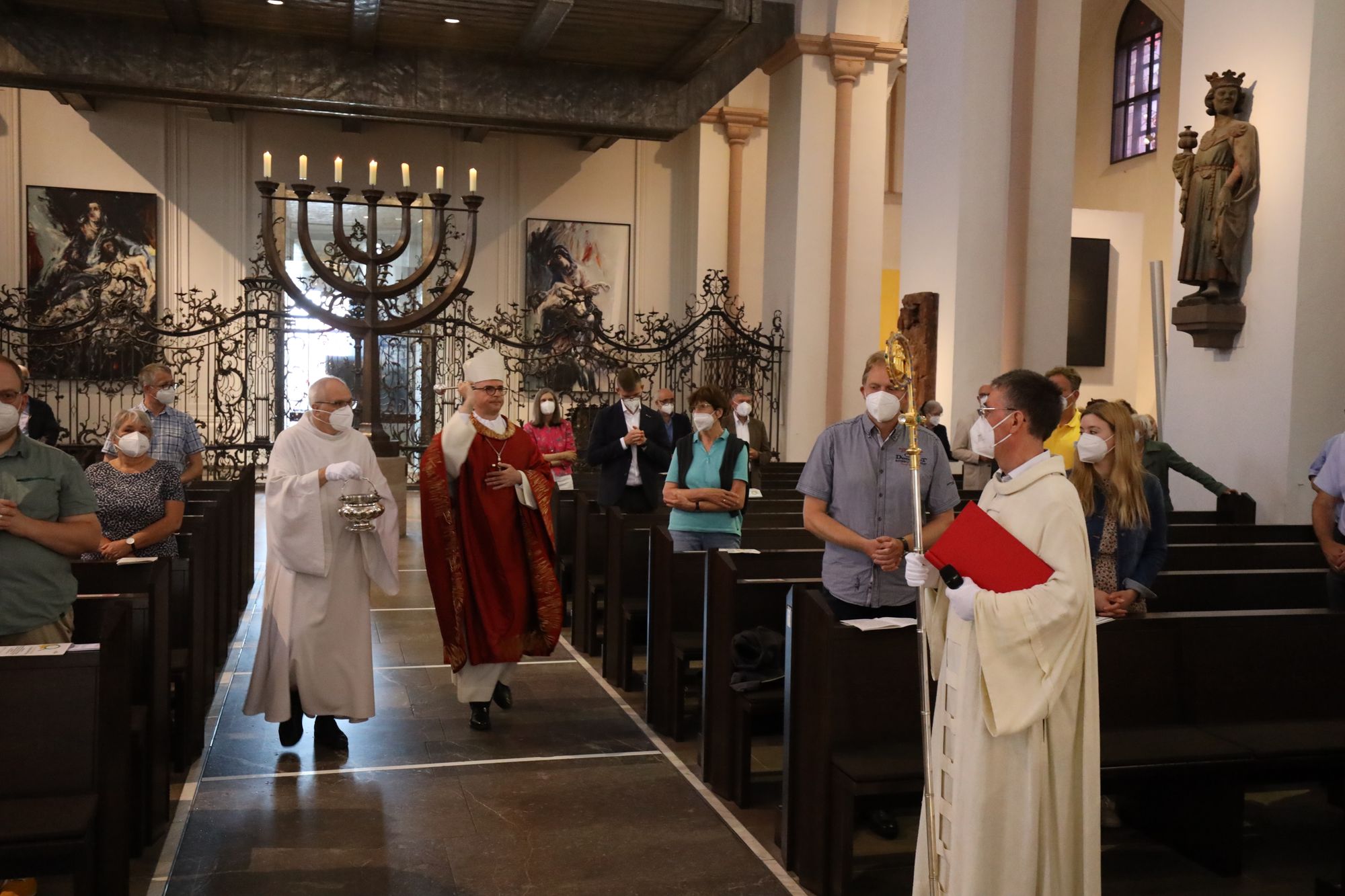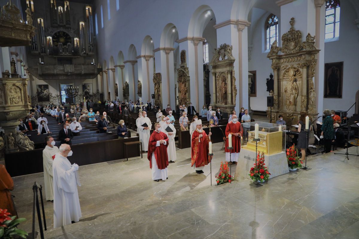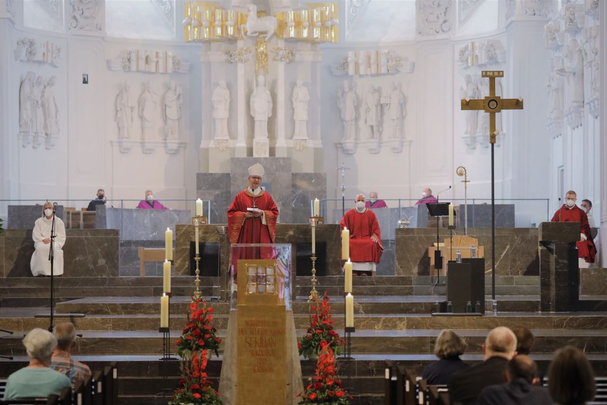Würzburg (POW) Zum 50. Jubiläum der Berufsgruppe im Bistum Würzburg hat Bischof Dr. Franz Jung am Dienstagabend, 6. Juli, den Pastoralreferentinnen und -referenten gratuliert. „Was 50 Jahre lang währt, hat sich offenbar bewährt. Das darf man mit Fug und Recht feiern“, sagte er beim Kiliani-Pontifikalgottesdienst zum Jubiläum im Kiliansdom. An der Feier unter den aktuellen Coronaschutzvorschriften, die zudem über das Internet gestreamt wurde, nahmen rund 130 Personen im Dom teil.