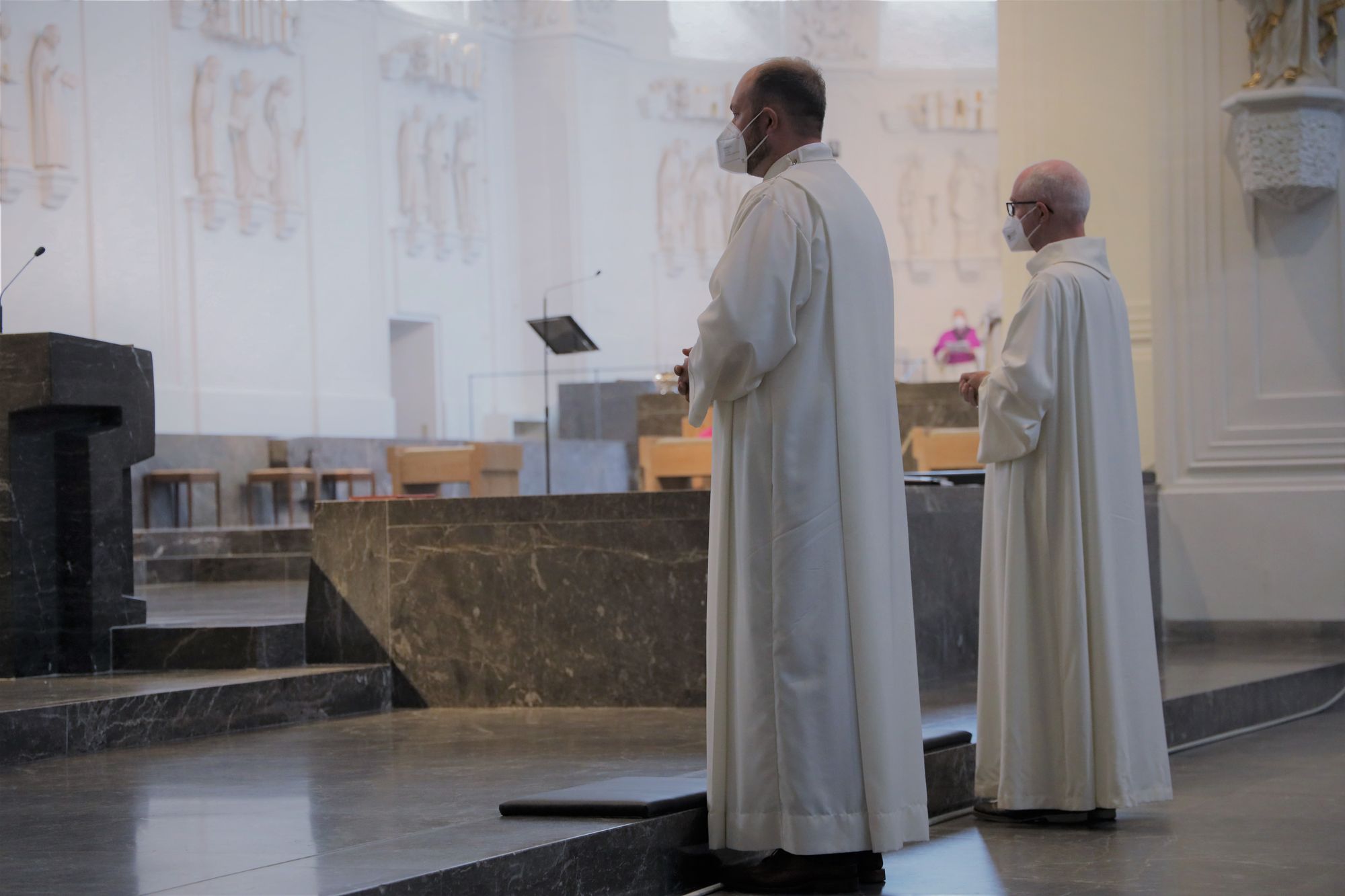 Den Gottesdienst gestalteten Frauen und Männer der Berufsgruppe liturgisch wie musikalisch mit. Eigens gedacht wurde der verstorbenen Kolleginnen und Kollegen: Erika Büchler, Christiane Blum-Barth, Daniela Schott, Erich Geißler, Maria Gumpert, Petra Wombacher und Norbert Bug. Gesamtsprecher Sebastian Volk dankte vor dem Schlusssegen Bischof Jung und allen im Hintergrund Beteiligten für den Gottesdienst. Pandemiebedingt konnte keine Begegnung nach der Messe stattfinden. „Ich freue mich, wenn wir uns begegnen und weiterfeiern, sofern das wieder möglich ist.“ Die im Dom Mitfeiernden erhielten am Ausgang jedoch jeweils eine Flasche Wein, um im Kreis der Kolleginnen und Kollegen auf das Jubiläum anzustoßen. „Gott sei Dank, dass es uns, dass es Euch gibt.“