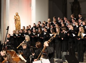 Unter der Leitung von Domkapellmeister Alexander Rüth musizierten die Junge Domkantorei Würzburg, das Barockensemble Concerto München sowie die Solisten Marie-Sophie Pollak (Sopran), Charlotte Wilhelm (Echo-Sopran), Ulrike Malotta (Alt), Tilman Lichdi (Tenor) und Krešimir Stražanac (Bass).