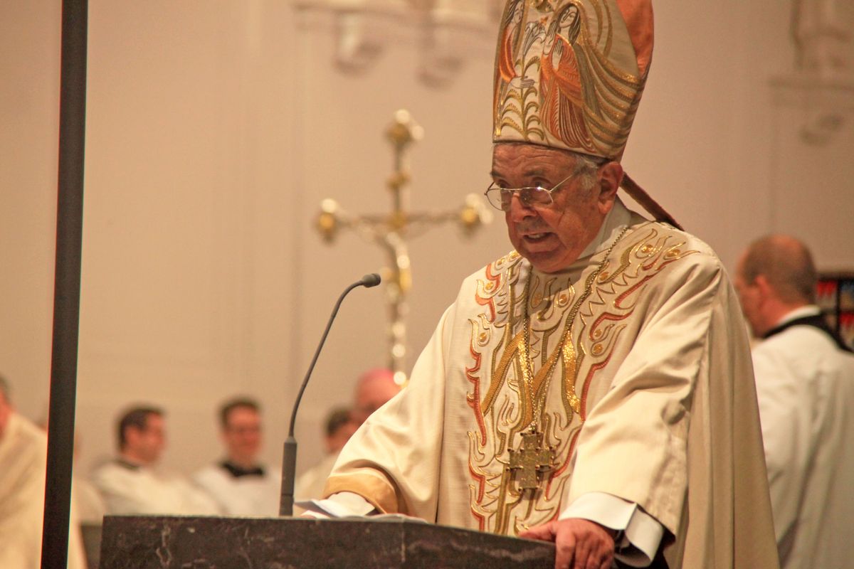 Würzburg (POW) Mit einem Pontifikalgottesdienst im Kiliansdom hat Weihbischof em. Helmut Bauer am Montagabend, 14. Oktober, sein 25. Weihejubiläum begangen. Rund 900 Gläubige feierten die heilige Messe am Festtag des ersten Würzburger Bischofs, des heiligen Burkard, mit. Hauptzelebrant war Bischof Dr. Friedhelm Hofmann, es konzelebrierten Bischof em. Dr. Paul-Werner Scheele sowie die Weihbischöfe Ulrich Boom, Reinhard Pappenberger (Regensburg) und Hans-Reinhard Koch (Erfurt). Unter anderem feierten auch Regierungsdirektor Dr. Paul Beinhofer, Würzburgs Bürgermeister Dr. Adolf Bauer, Felix Wissel, Bürgermeister von Weihbischof Bauers Heimatgemeinde Mömbris, sowie Vertreter von Studentenverbindungen, Grabesrittern und Deutschem Orden mit.