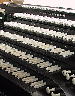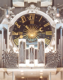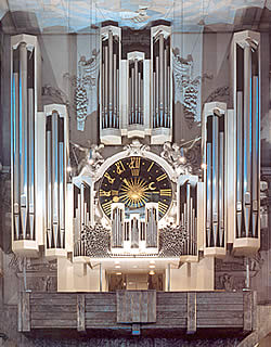 Die 87 Register der Orgel verteilen sich auf Pedal und fünf Werke, darunter eines mit waagerecht in den Raum strahlenden, sogenannten „Spanischen Trompeten". Im einzelnen umfassen Rückpositiv, Positiv und Schwellwerk je 16, das Hauptwerk 15, die Trompeteria 5 und das Pedal 18 Stimmen. Hinzu kommen insgesamt 15 Koppeln. 6652 Pfeifen und Zungen sind für die Klangerzeugung zuständig.